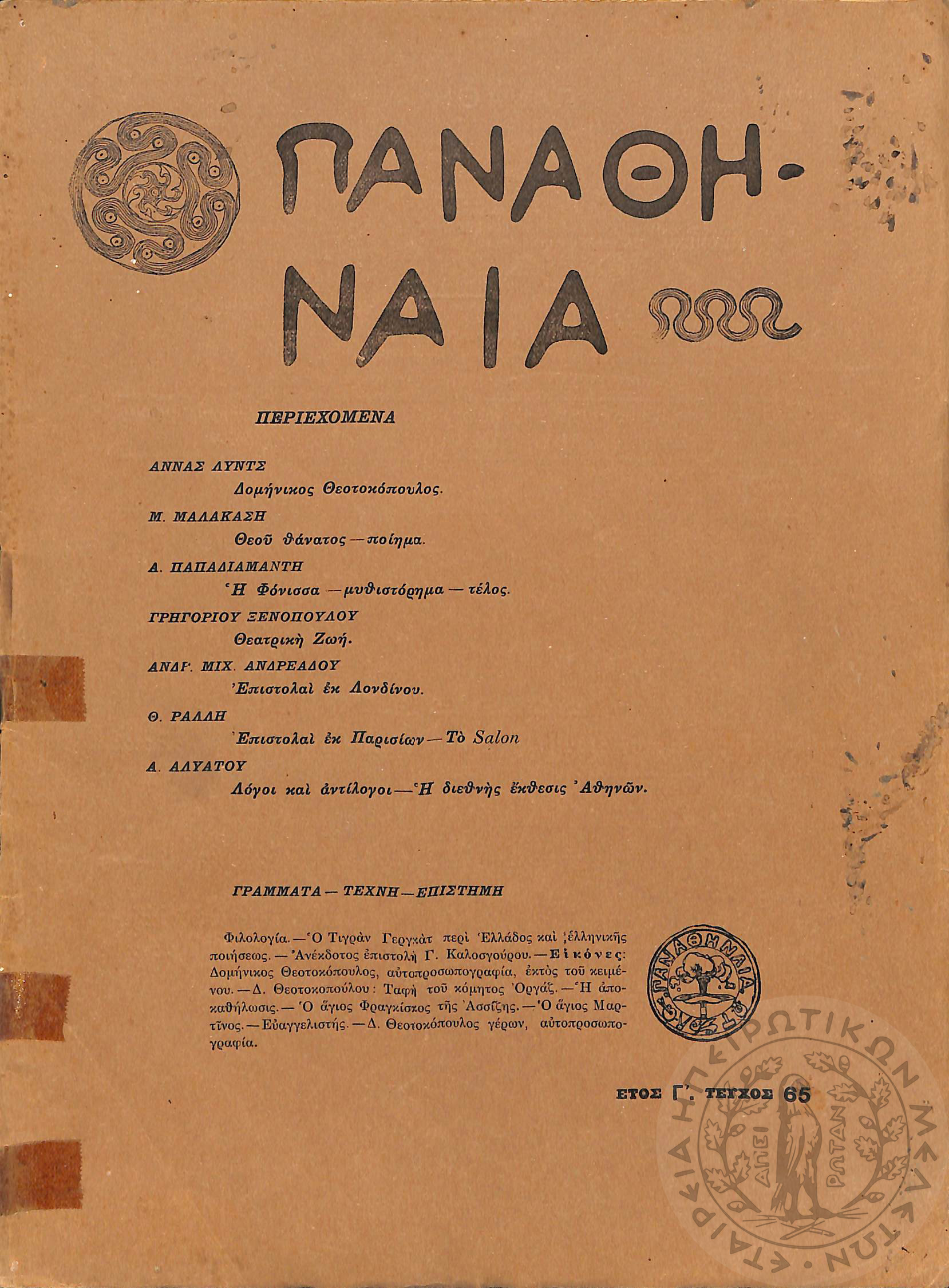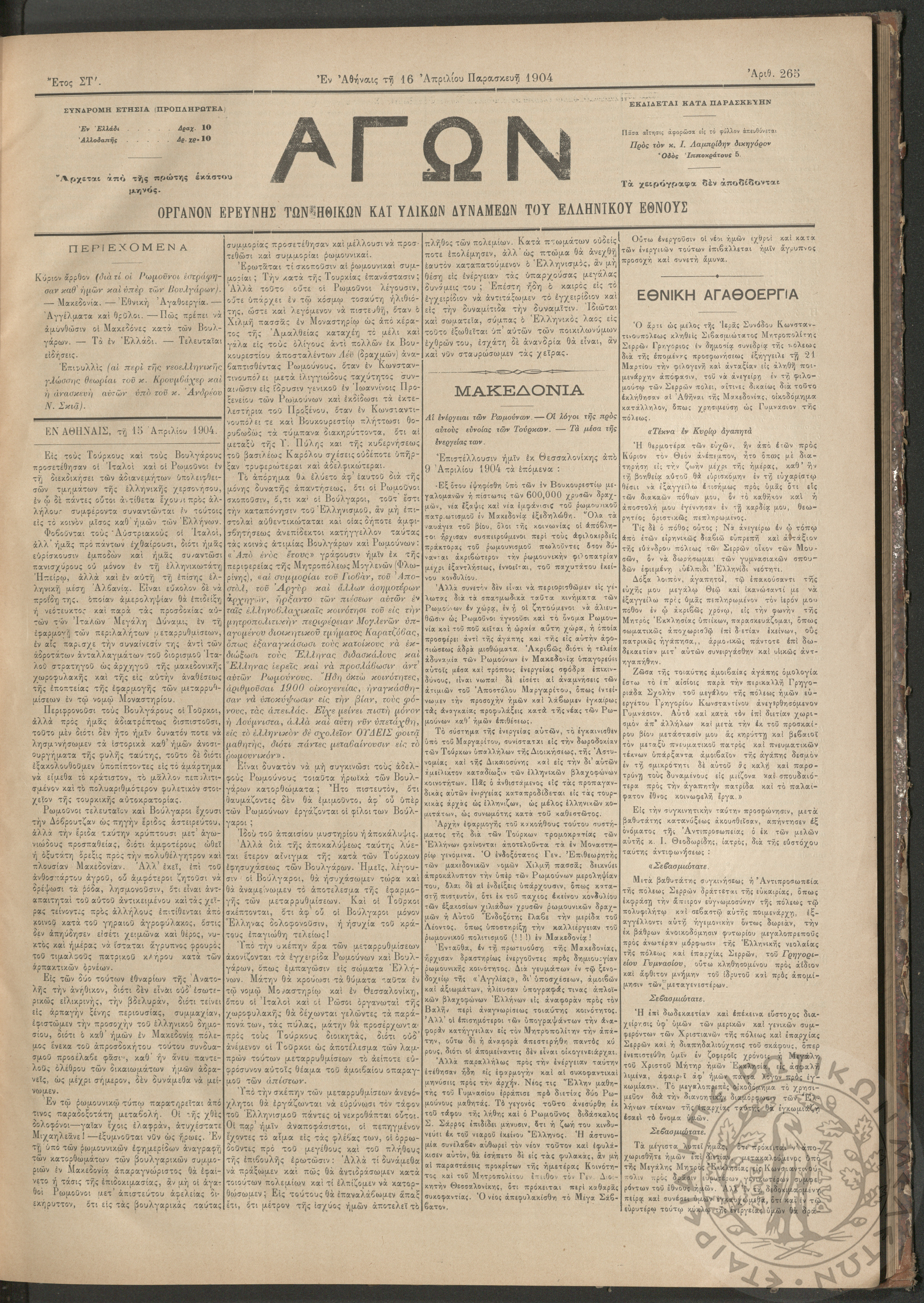 Αγών: Όργανον ερεύνης των ηθικών και υλικών δυνάμεων του Ελληνικού Έθνους, 1904 (Φ. 265)Έτος ΣΤ΄, Φ. 265...