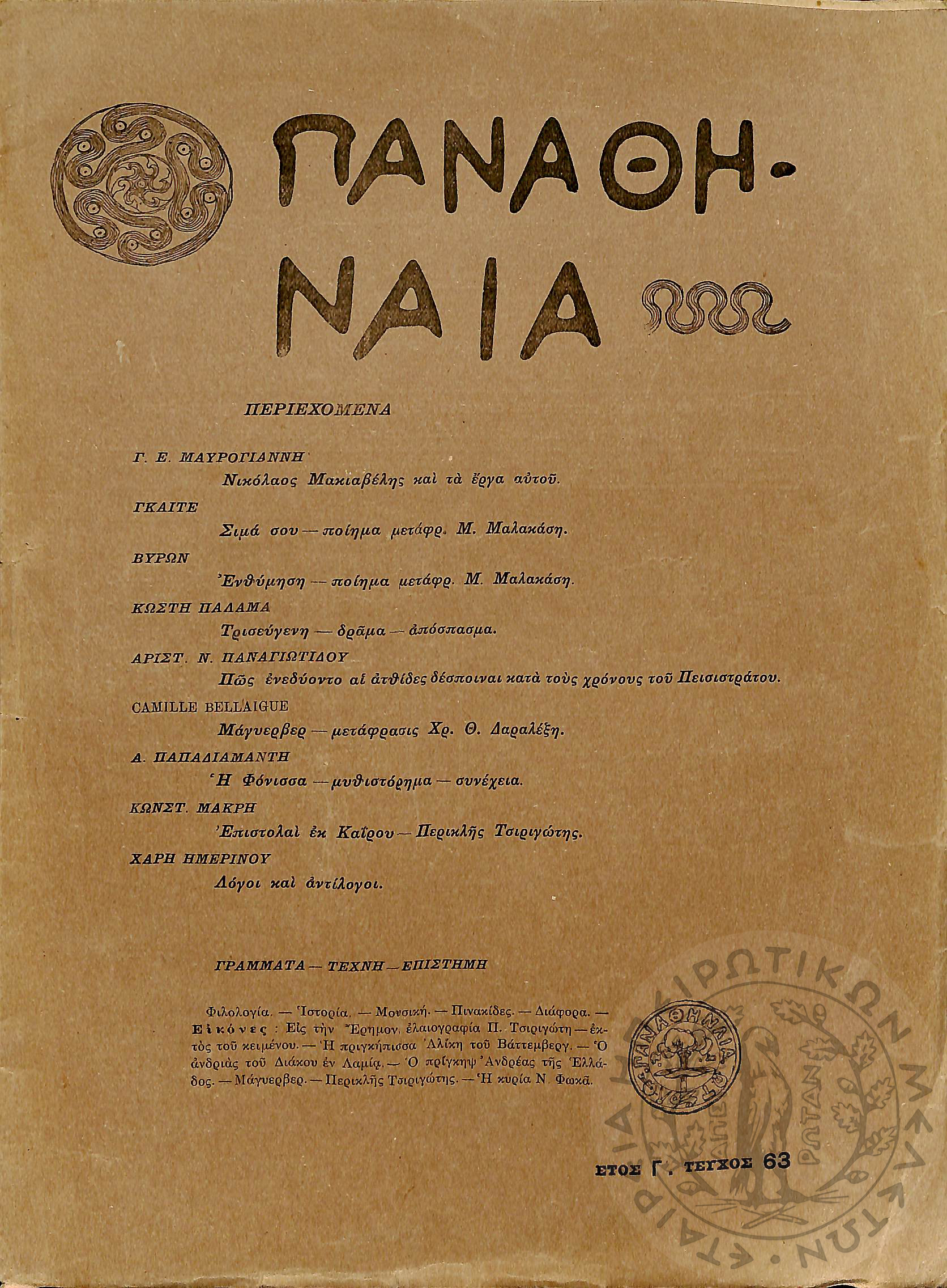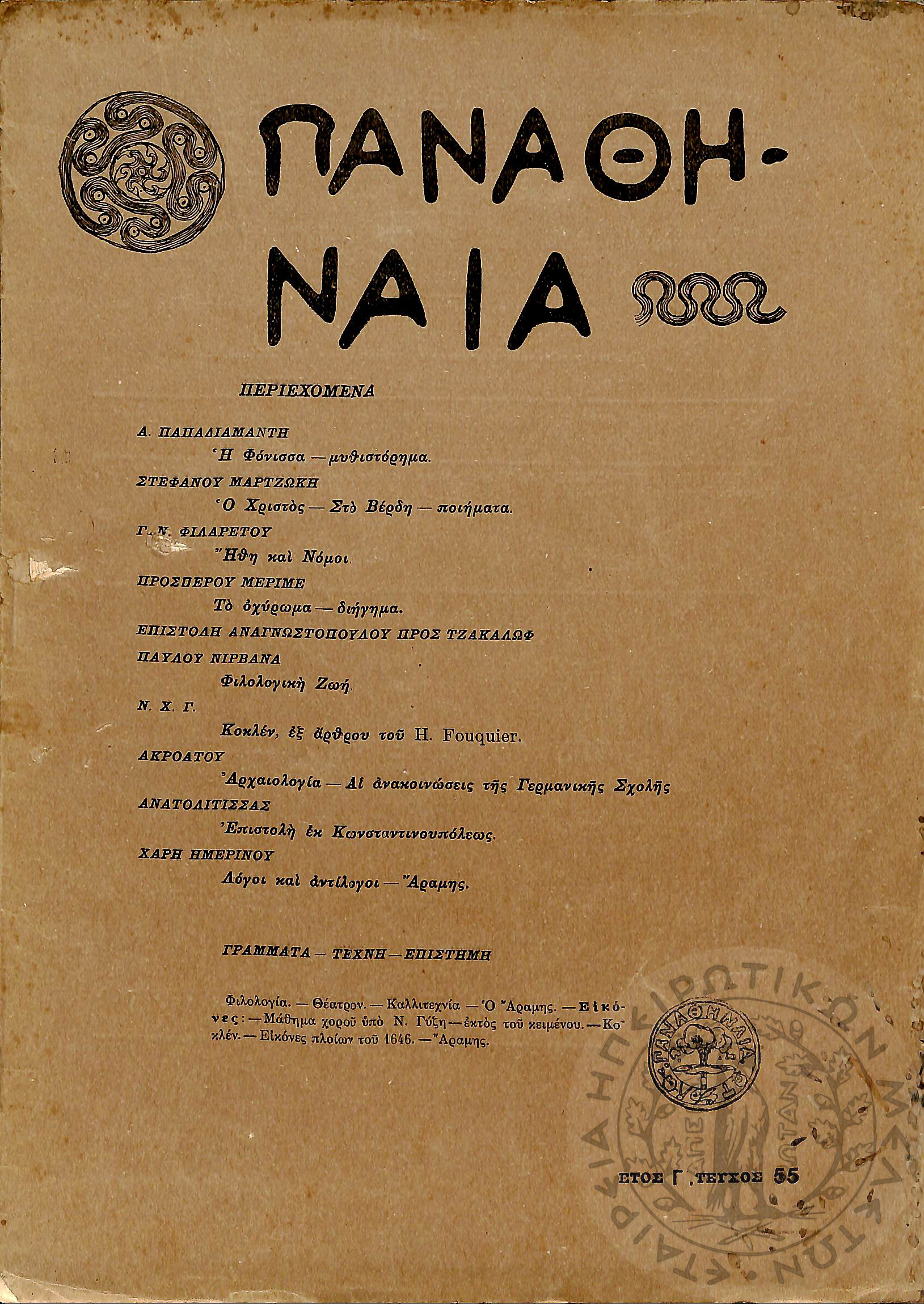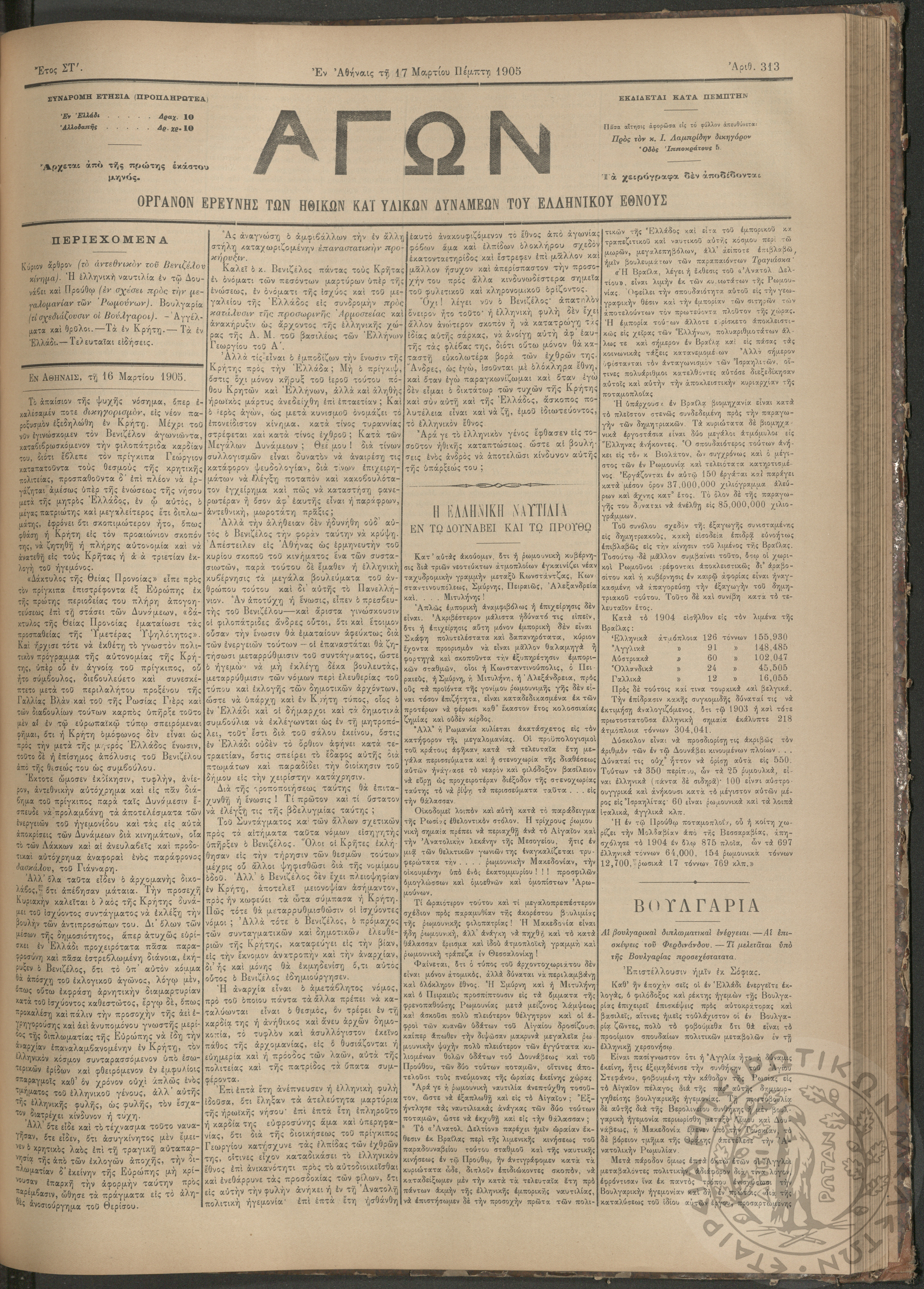 Αγών: Όργανον ερεύνης των ηθικών και υλικών δυνάμεων του Ελληνικού Έθνους, 1905 (Φ. 313)Έτος ΣΤ΄, Φ. 313...
