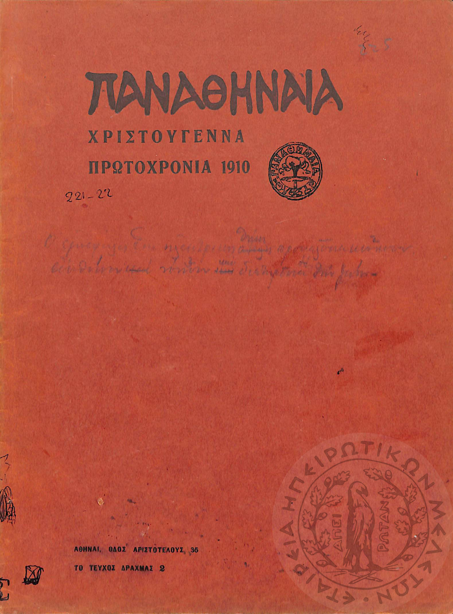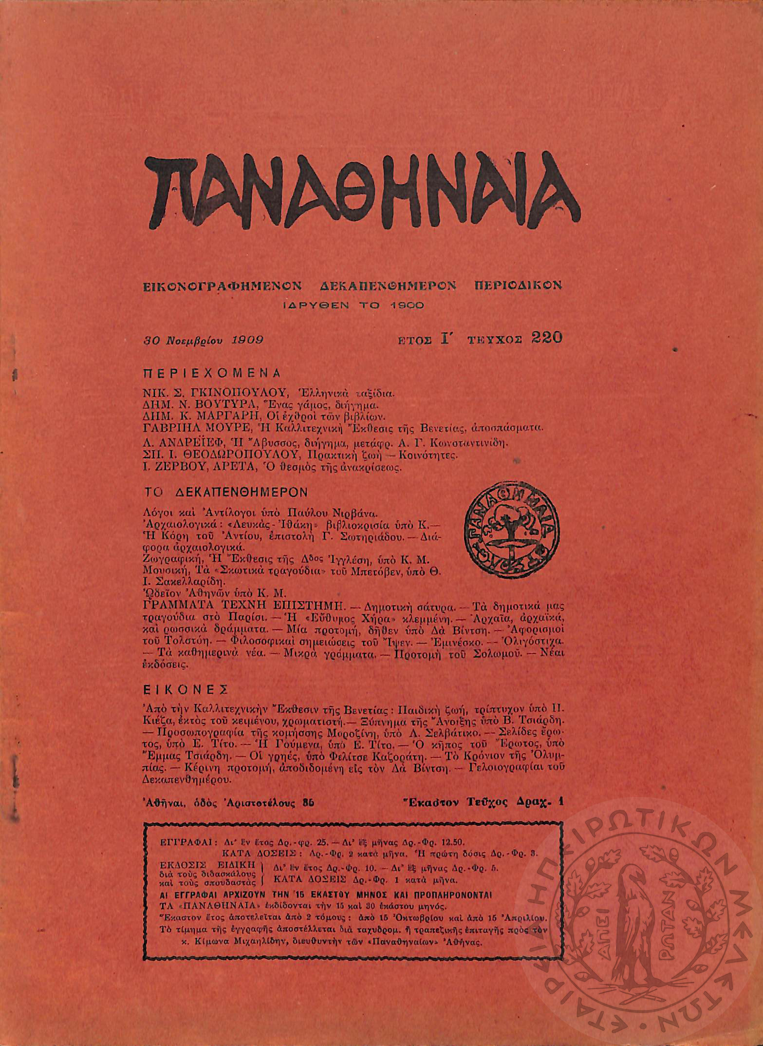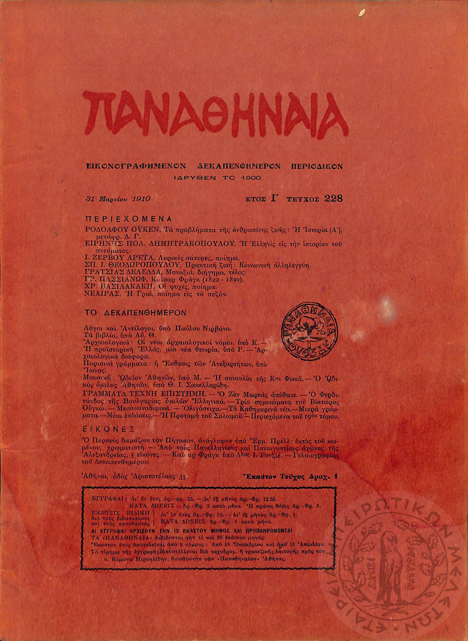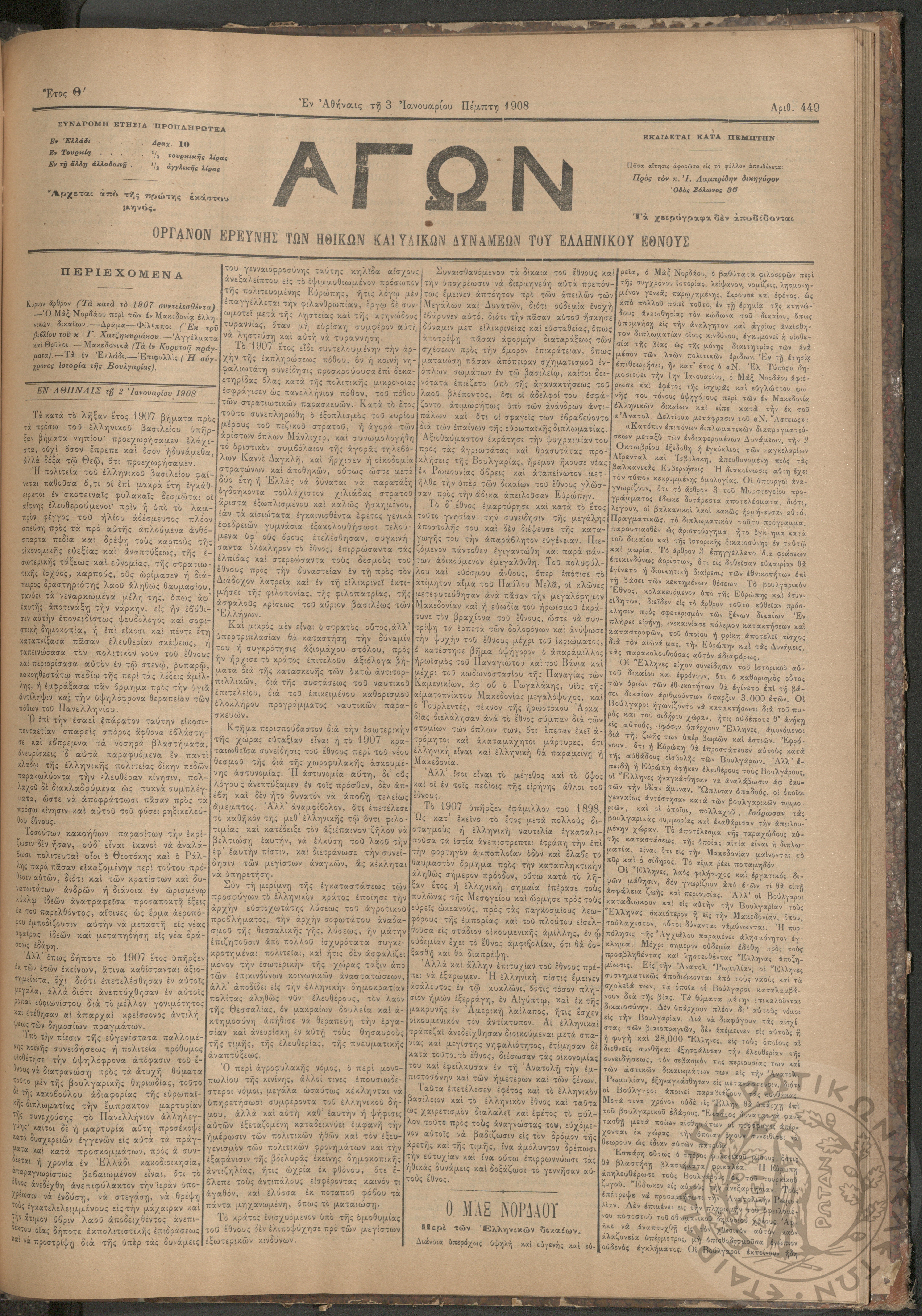 Αγών: Όργανον ερεύνης των ηθικών και υλικών δυνάμεων του Ελληνικού Έθνους, 1908 (Φ. 449)Έτος Θ΄, Φ. 449...