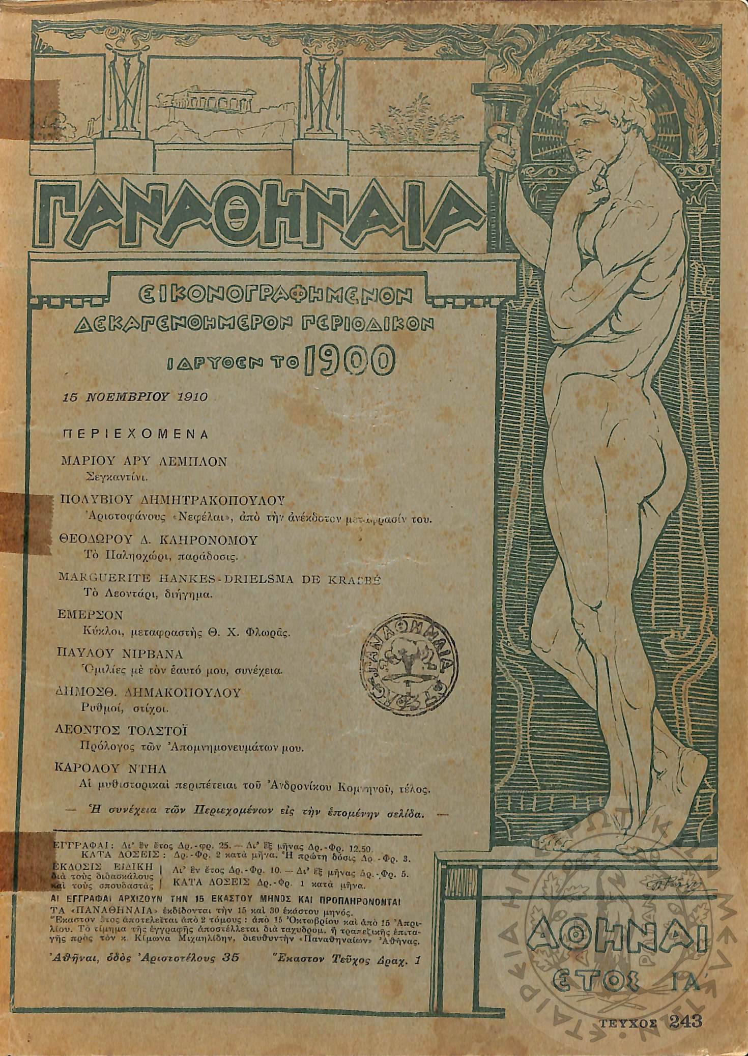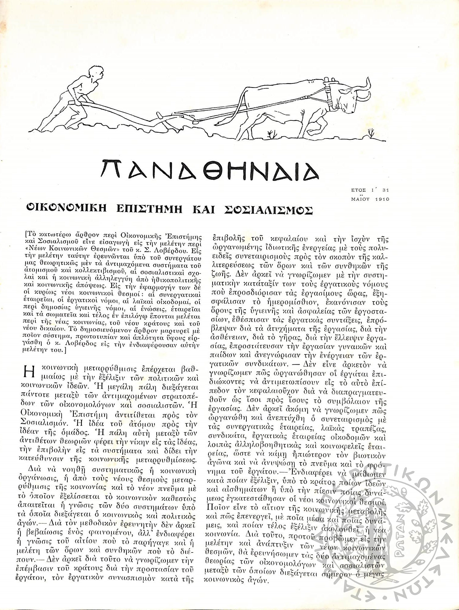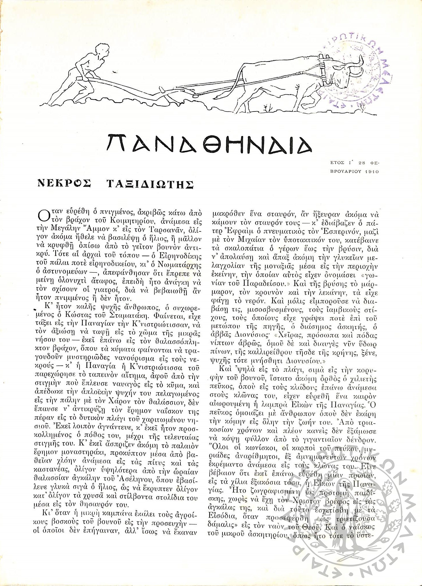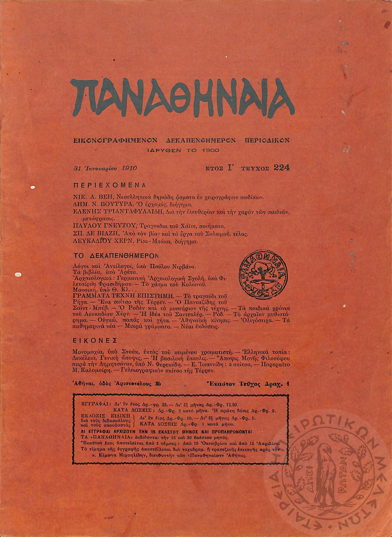 Αγών: Όργανον ερεύνης των ηθικών και υλικών δυνάμεων του Ελληνικού Έθνους, 1908 (Φ. 449)Έτος Θ΄, Φ. 449...