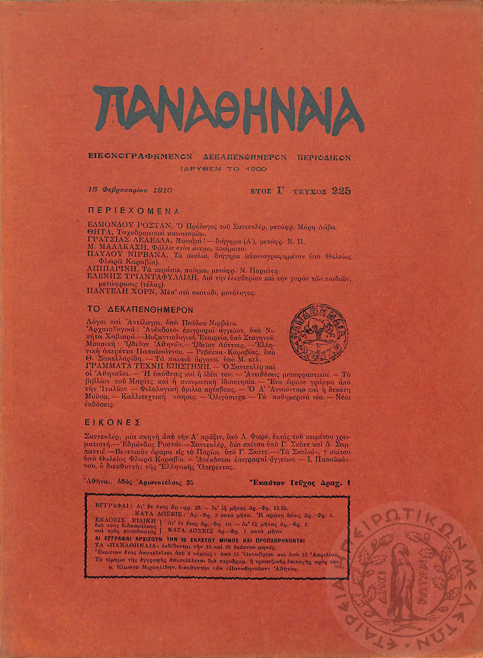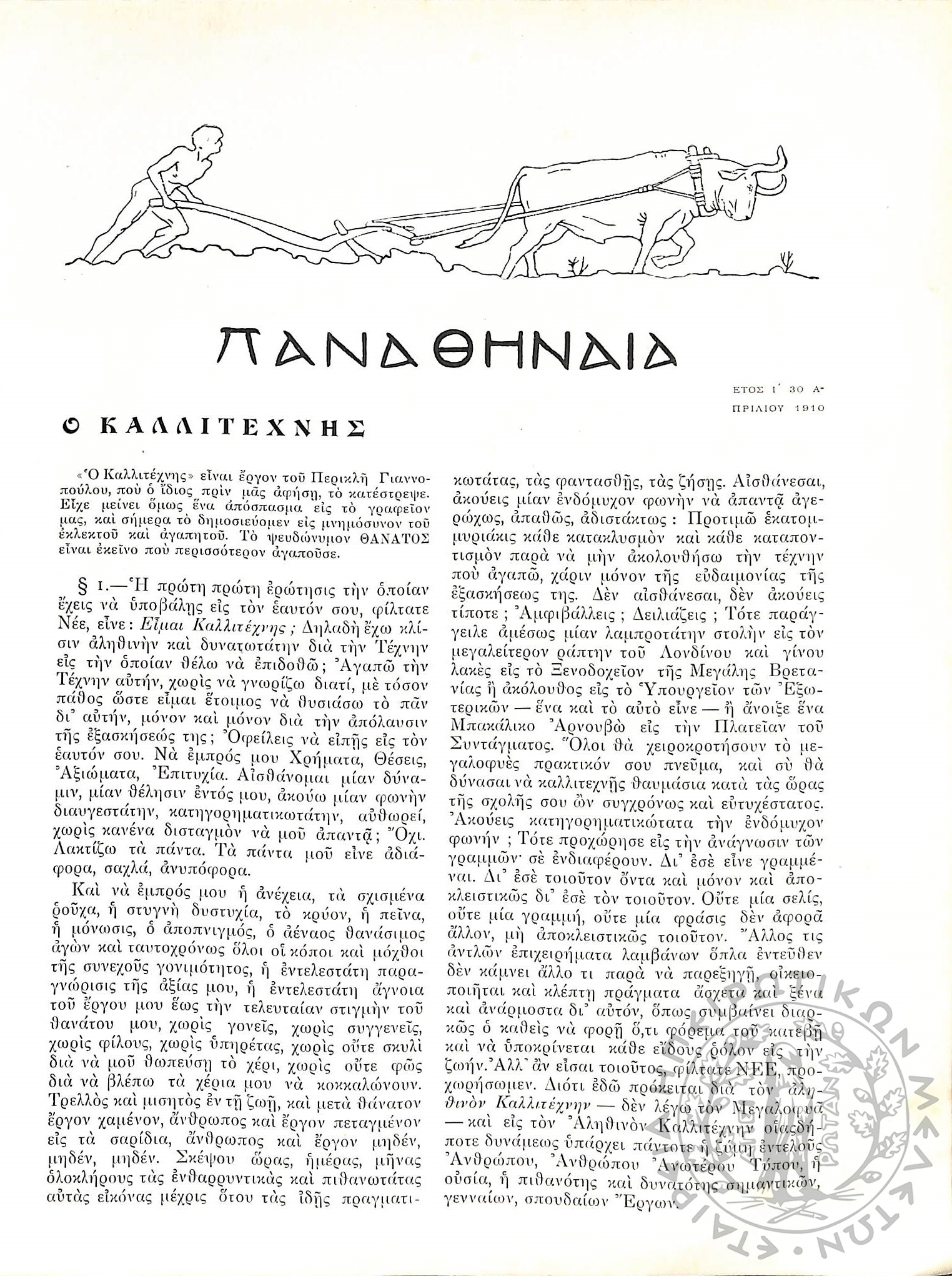 Αγών: Όργανον ερεύνης των ηθικών και υλικών δυνάμεων του Ελληνικού Έθνους, 1907 (Φ. 419)Έτος Θ΄, Φ. 419...
