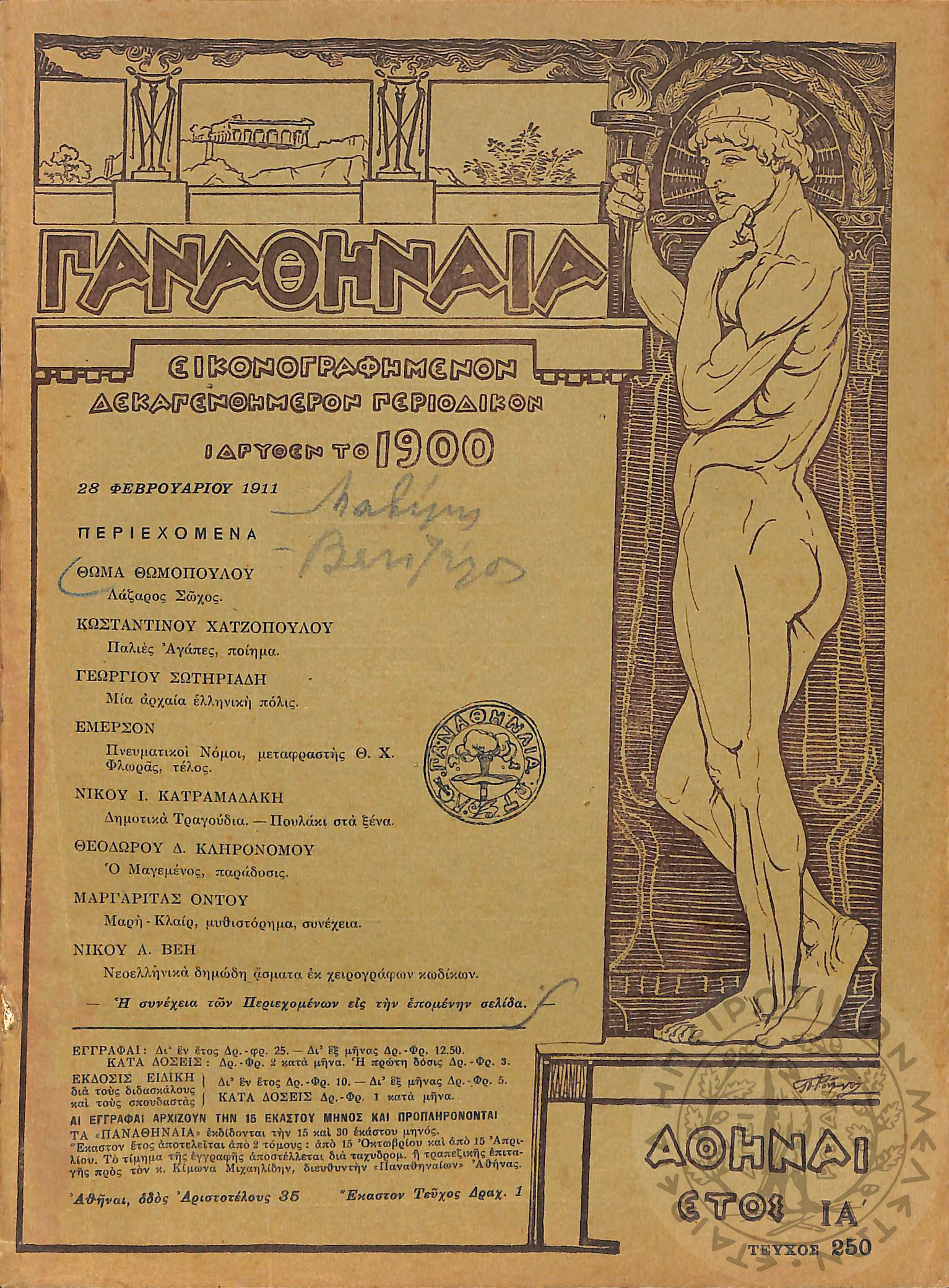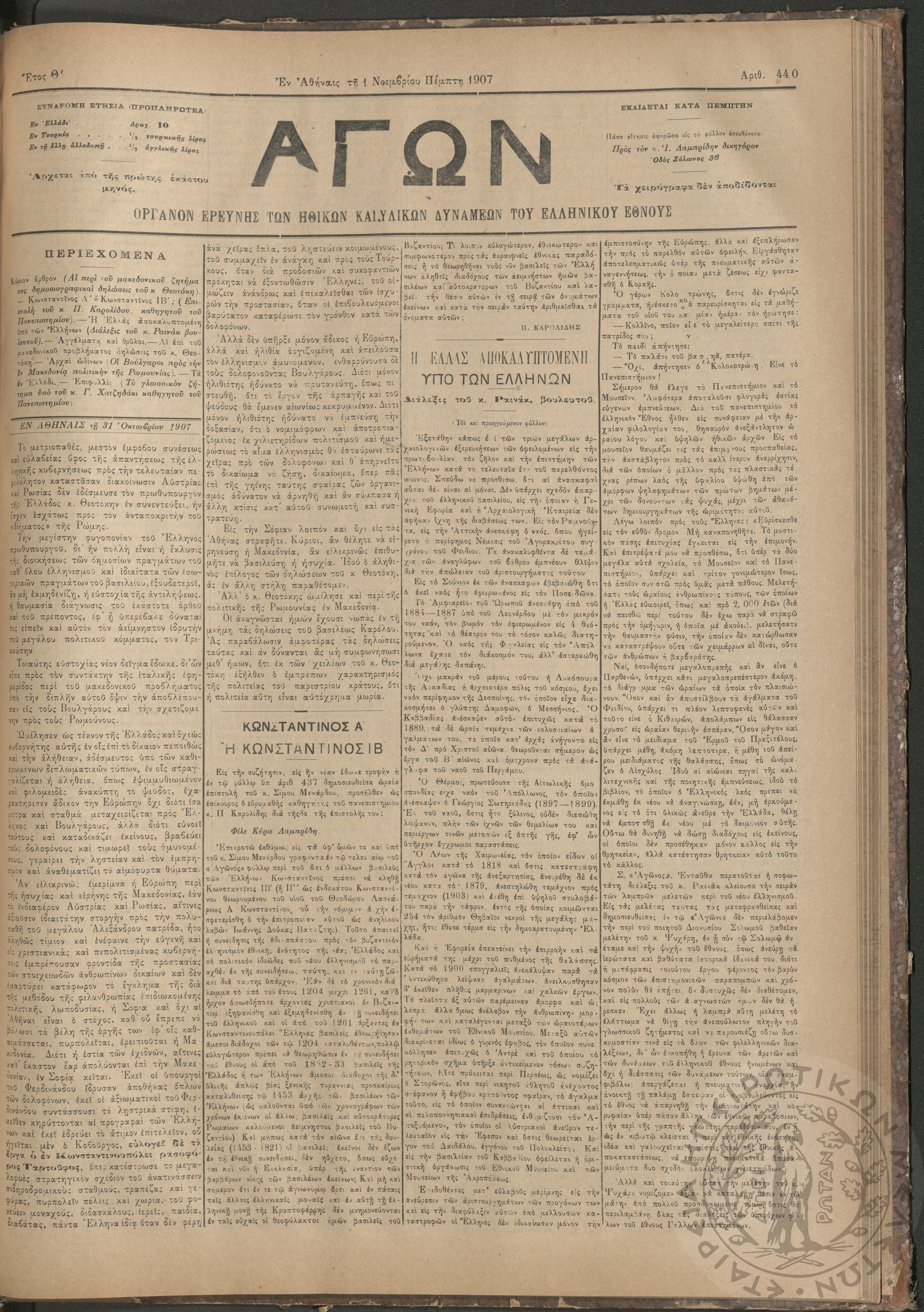 Αγών: Όργανον ερεύνης των ηθικών και υλικών δυνάμεων του Ελληνικού Έθνους, 1907 (Φ. 440)Έτος Θ΄, Φ. 440...