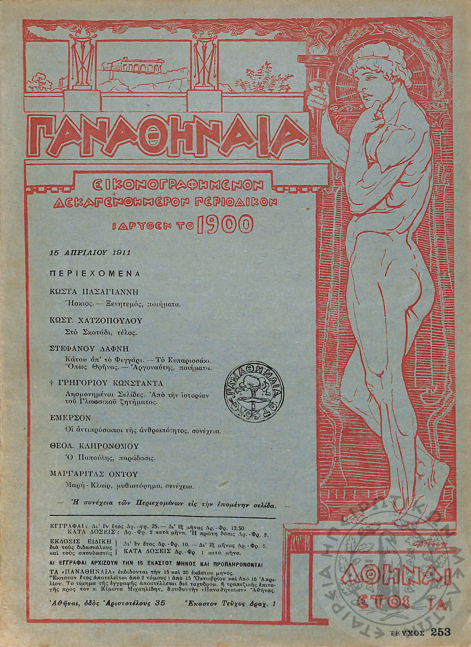 Αγών: Όργανον ερεύνης των ηθικών και υλικών δυνάμεων του Ελληνικού Έθνους, 1908 (Φ. 454)Έτος Θ΄, Φ. 454...