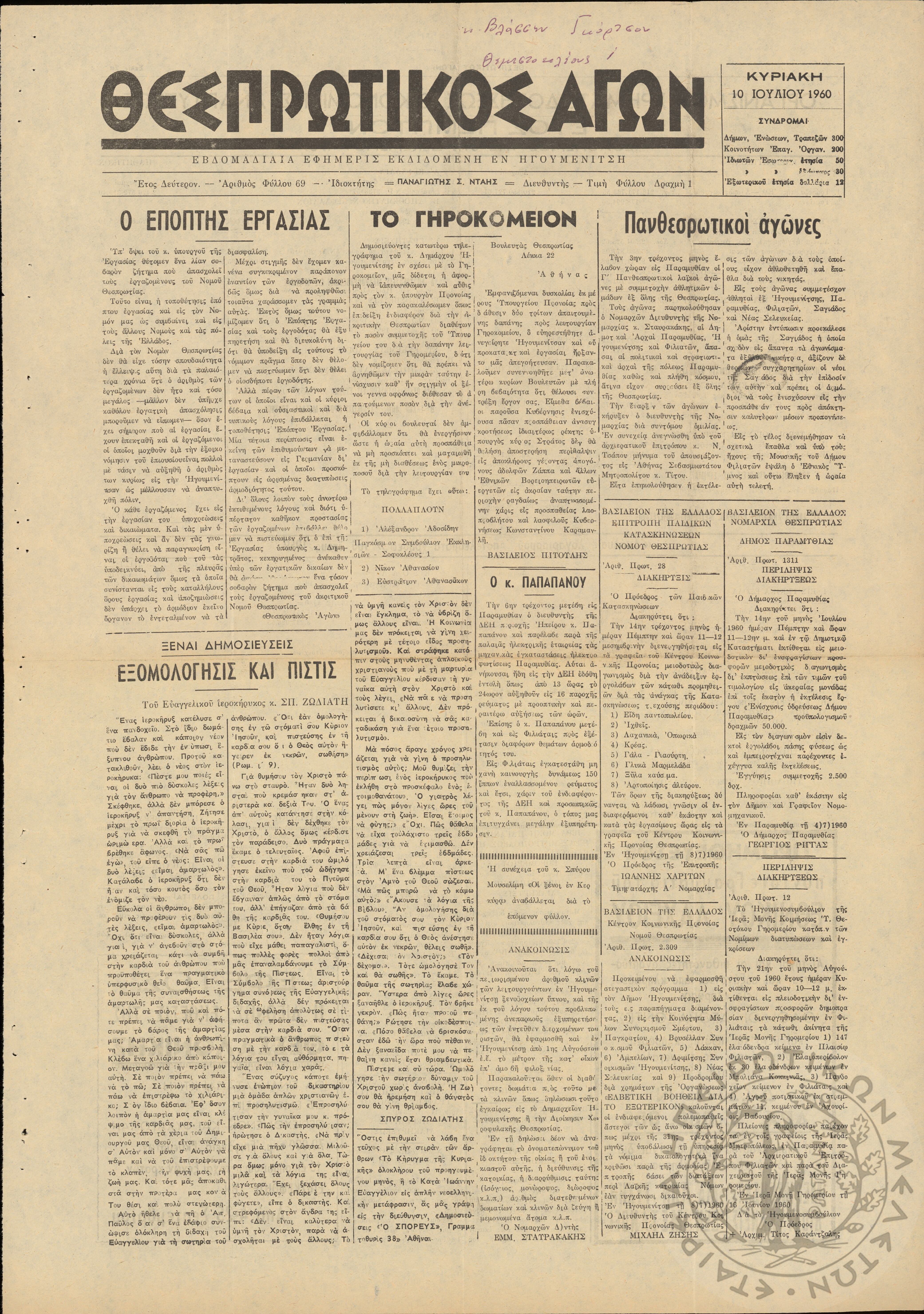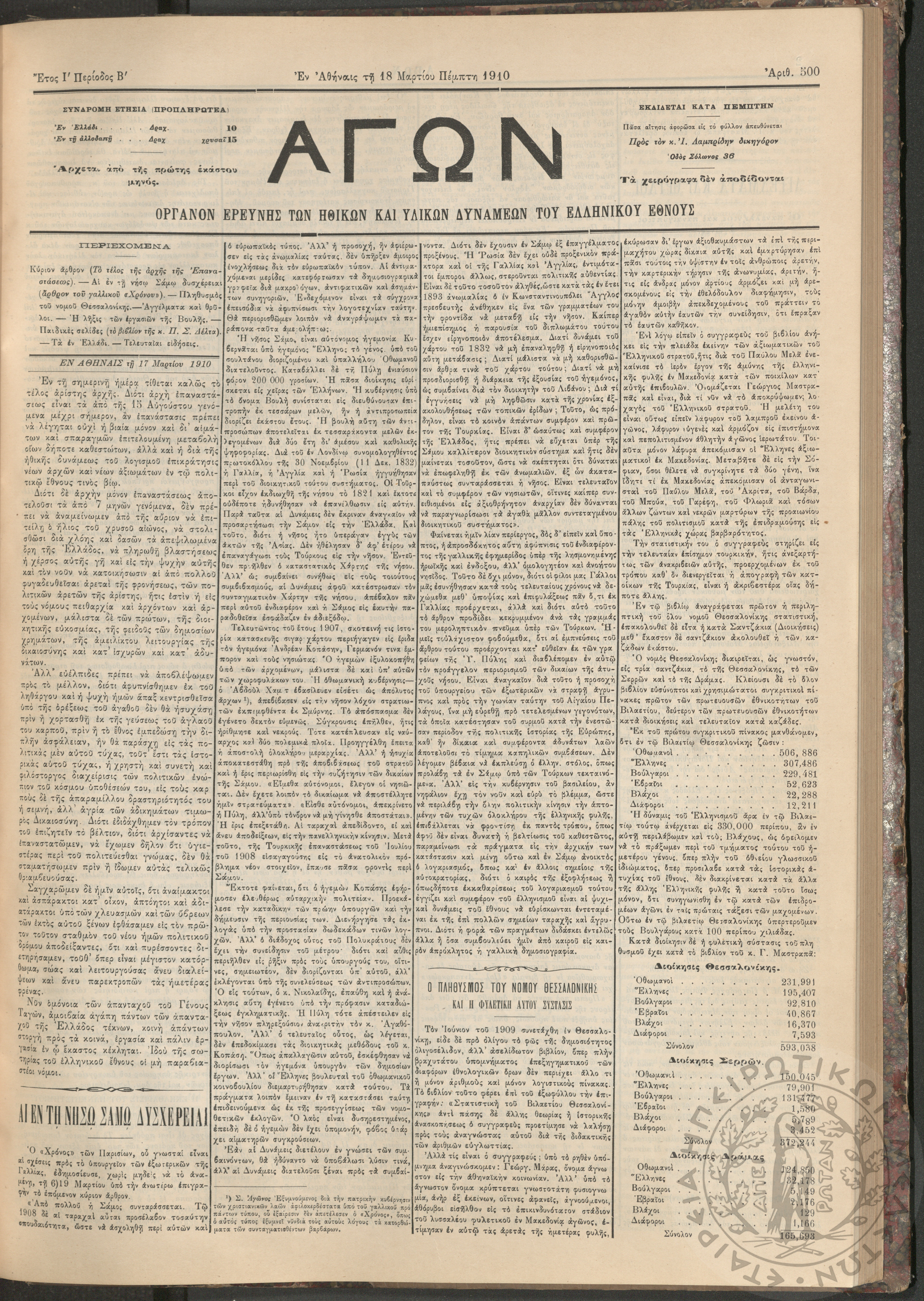 Αγών: Όργανον ερεύνης των ηθικών και υλικών δυνάμεων του Ελληνικού Έθνους, 1910 (Φ. 500)Έτος Ι΄, Φ. 500...