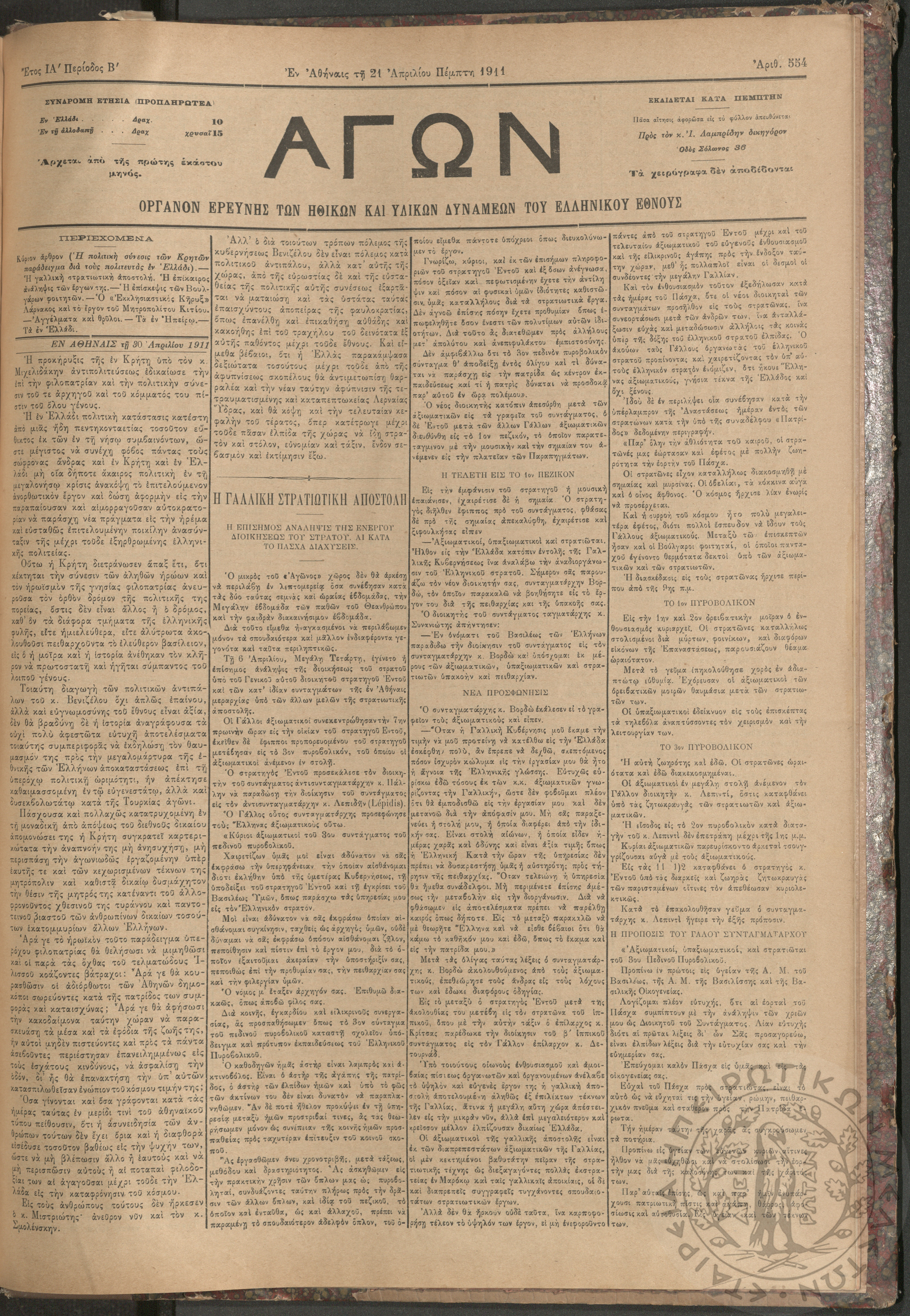 Αγών: Όργανον ερεύνης των ηθικών και υλικών δυνάμεων του Ελληνικού Έθνους, 1911 (Φ. 554)Έτος ΙΑ΄, Περίοδος Β', Φ.554...