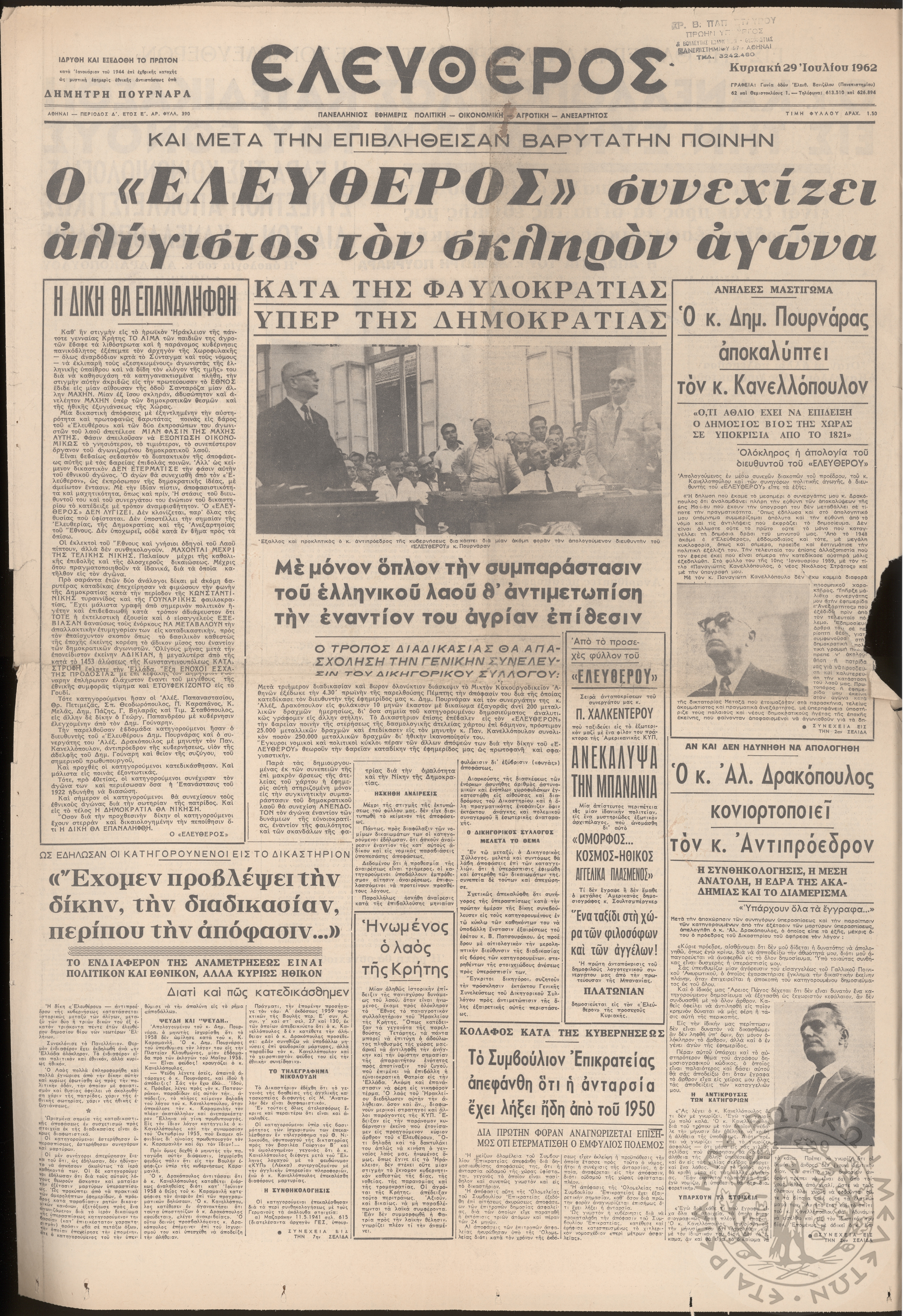 Ελεύθερος: πανελλήνιος εφημερίς - πολιτική - οικονομική - αγροτική - ανεξάρτητος, 1962, φ. 390Έτος 5, φ. 390...