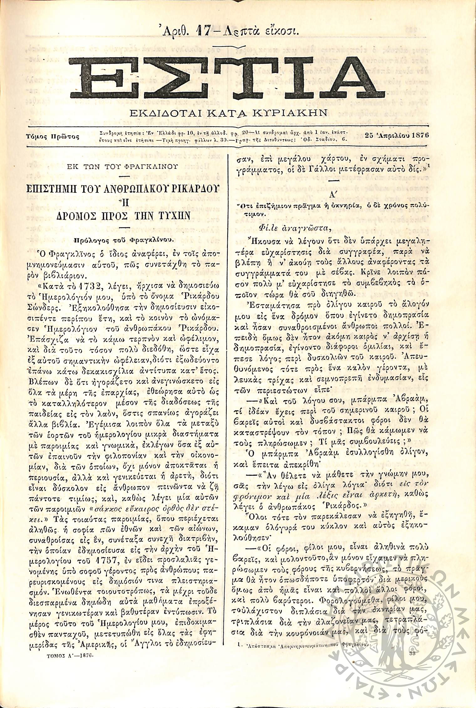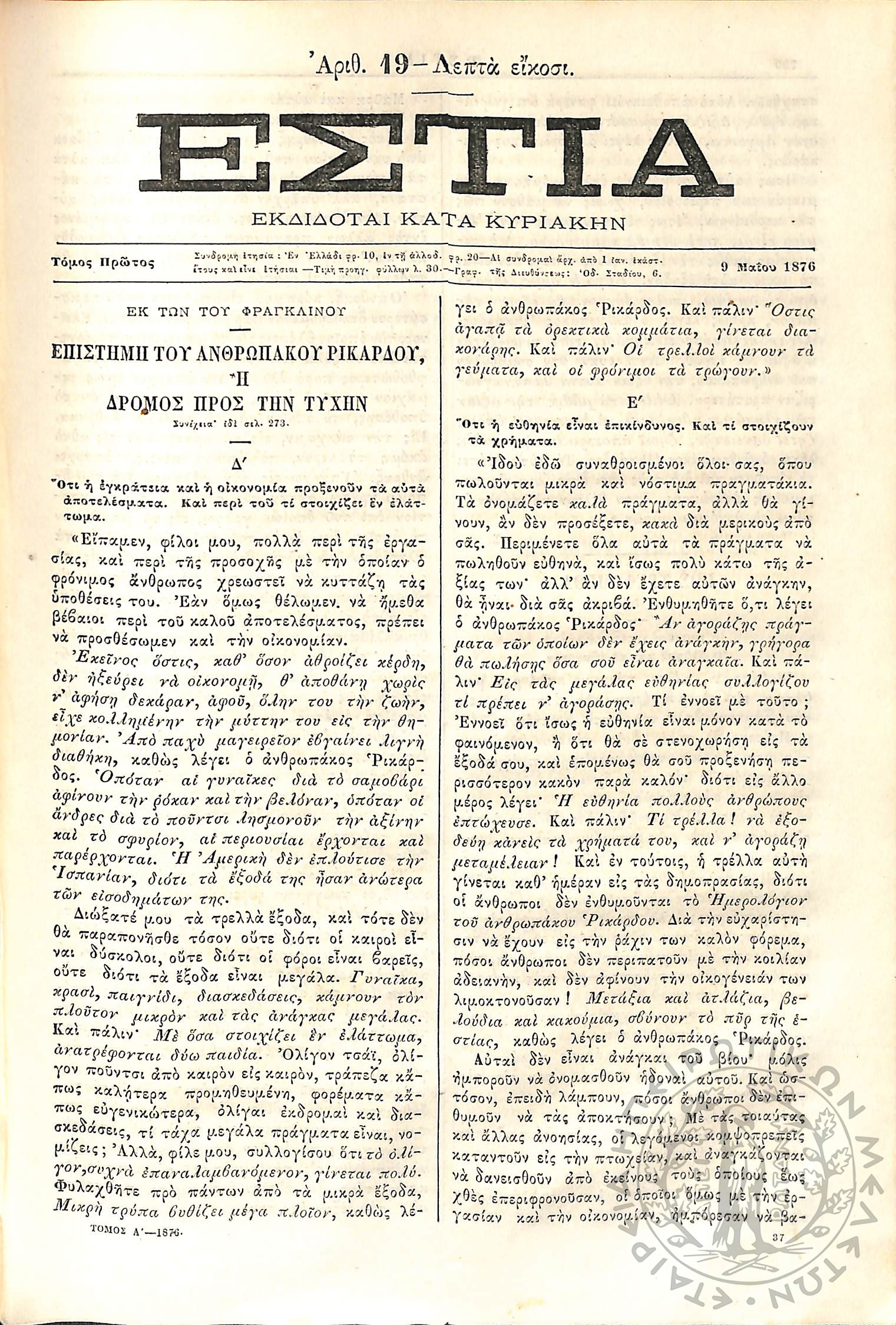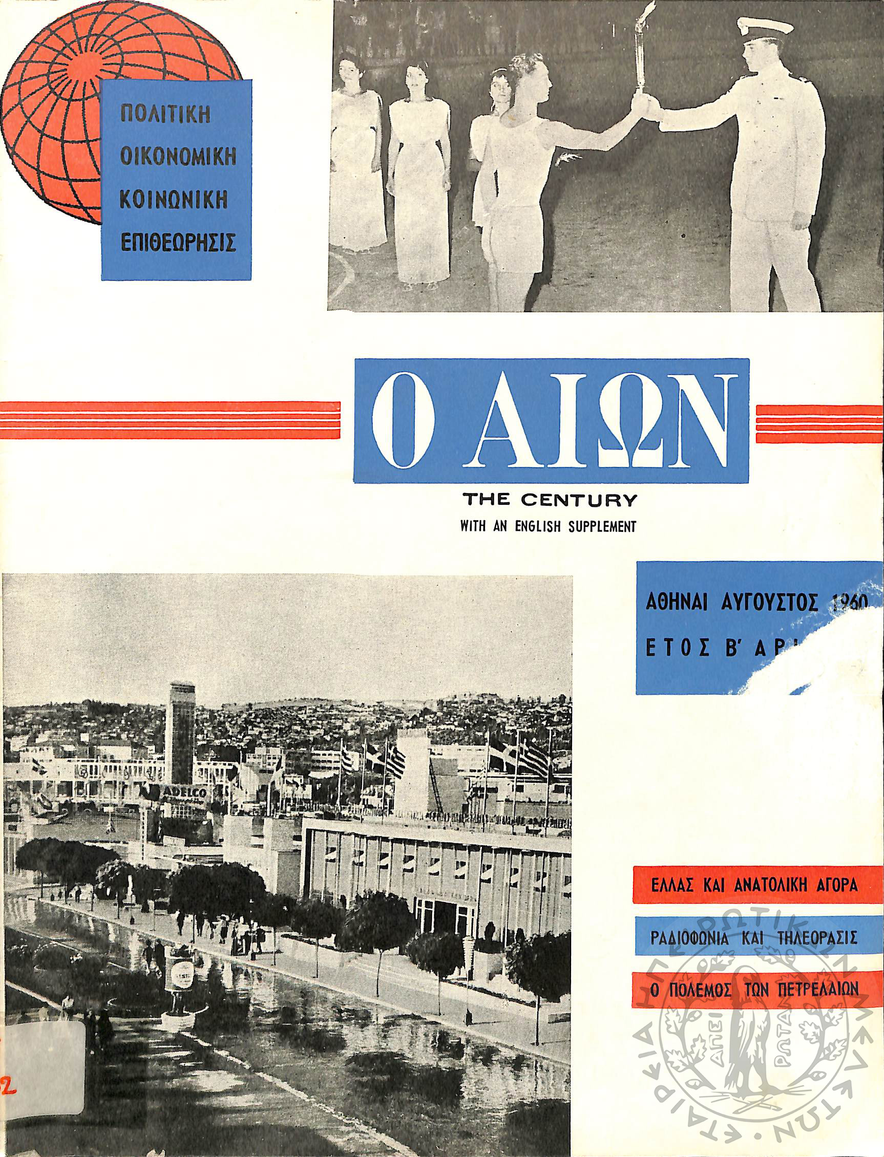 Ο Αιών: μηνιαίον περιοδικόν πολιτικής οικονομικής και κοινωνικής έρευνης (τεύχ. 17) / The Century: with an English supplement (vol. 17)Έτος Β', τεύχ. 17 ...