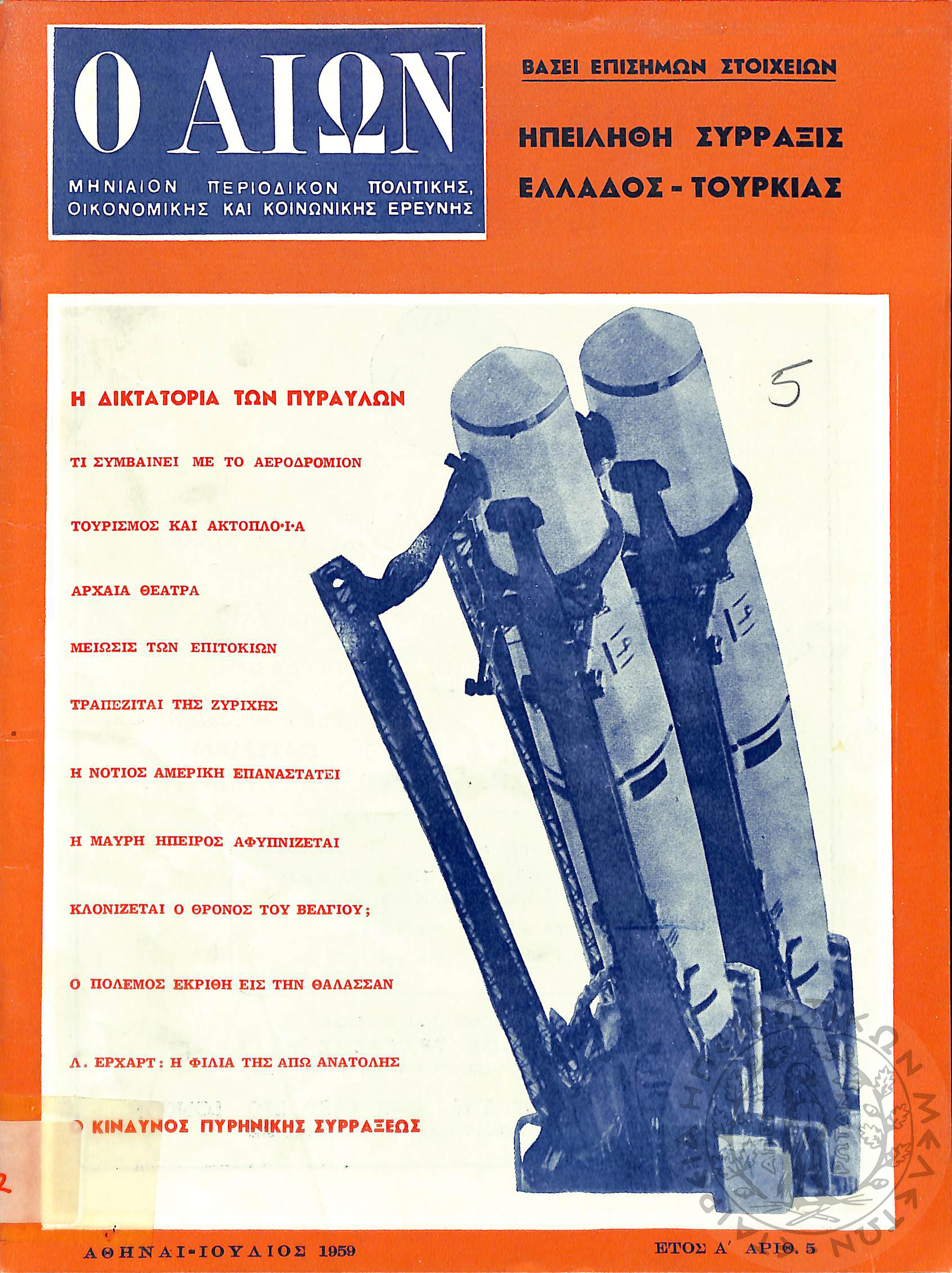 Ο Αιών: μηνιαίον περιοδικόν πολιτικής οικονομικής και κοινωνικής έρευνης (τεύχ. 5)Έτος Α', τεύχ. 5 ...