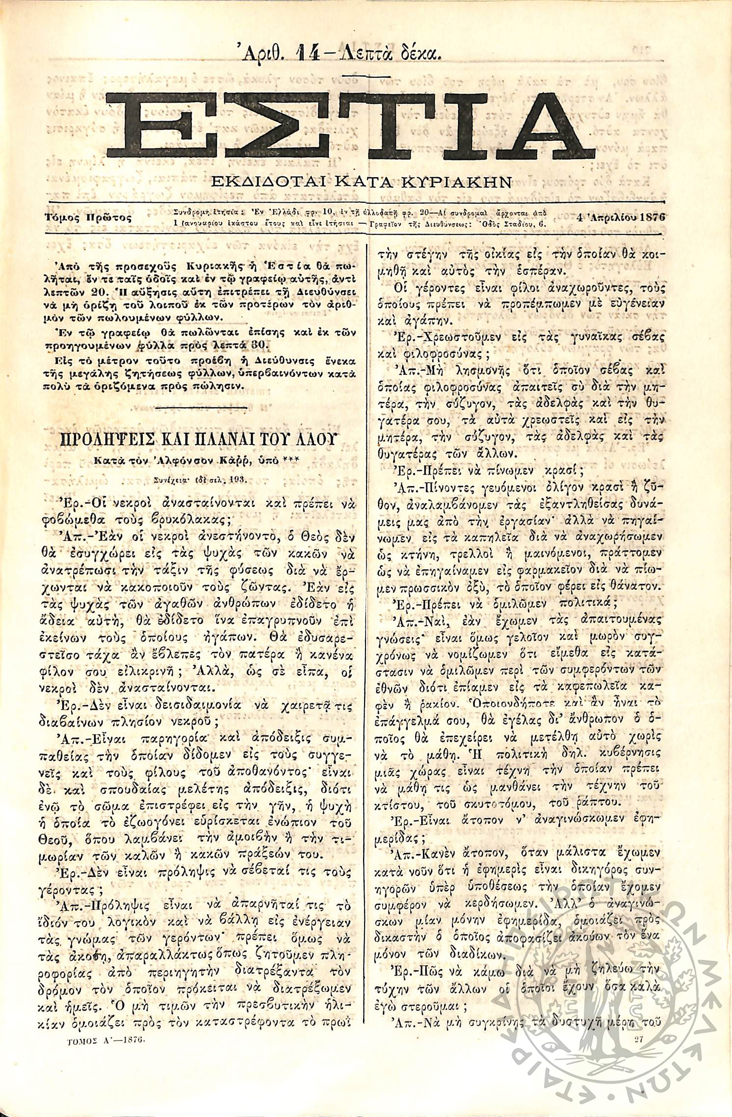 Ο Αιών: μηνιαίον περιοδικόν πολιτικής οικονομικής και κοινωνικής έρευνης (τεύχ. 14)Έτος Β', τεύχ. 14...
