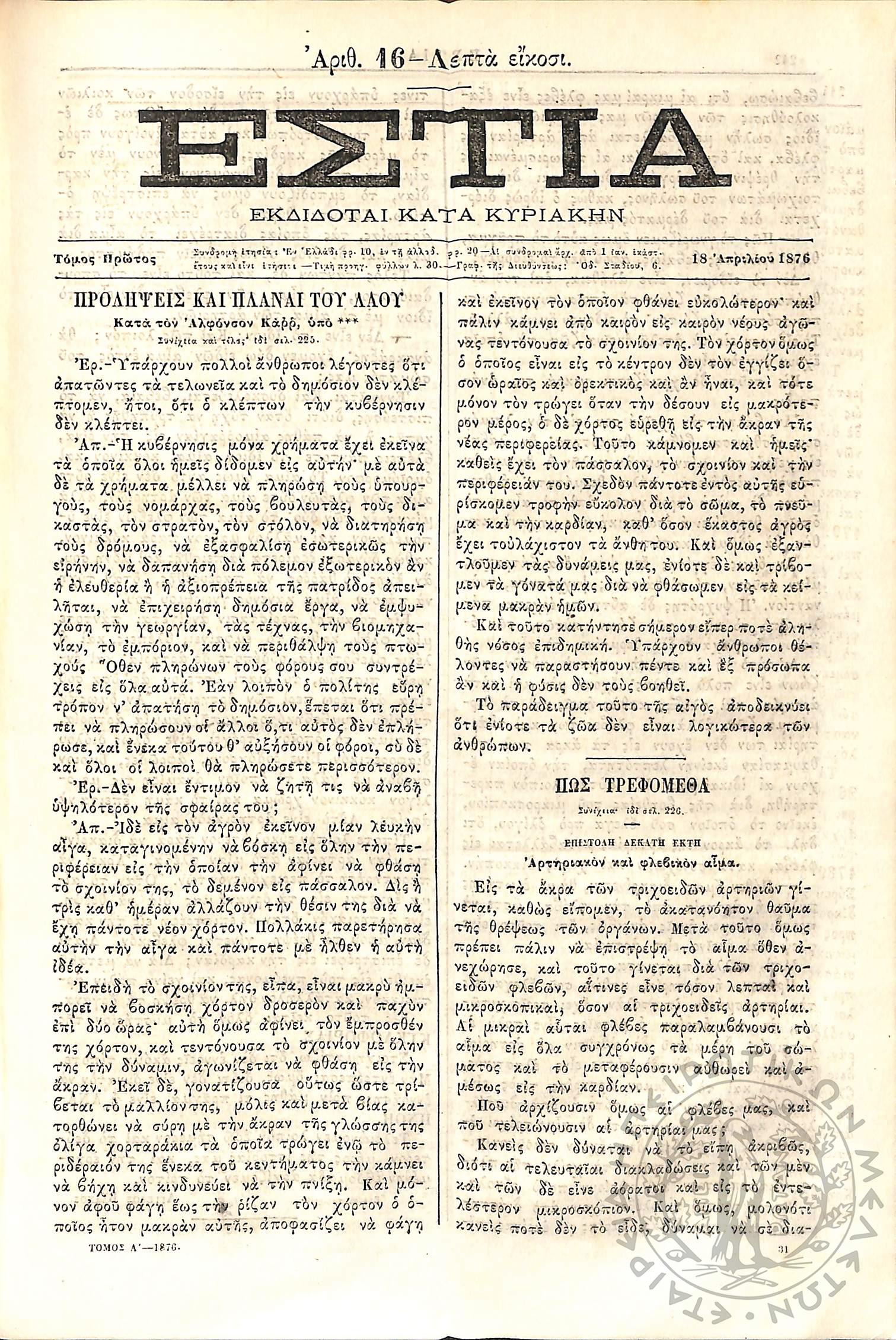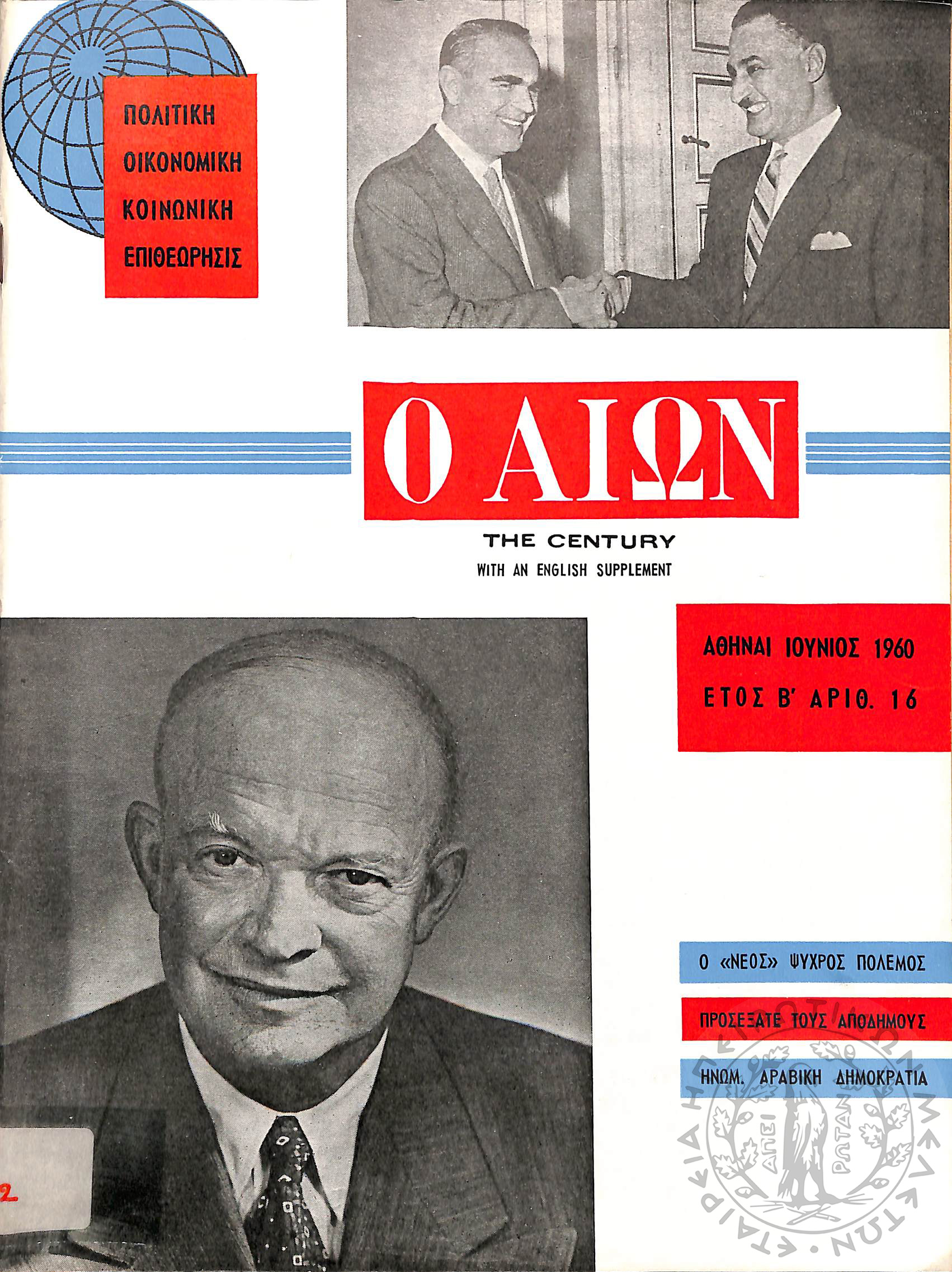 Ο Αιών: μηνιαίον περιοδικόν πολιτικής οικονομικής και κοινωνικής έρευνης (τεύχ. 16) / The Century: with an English supplement (vol. 16)Έτος Β', τεύχ. 16...