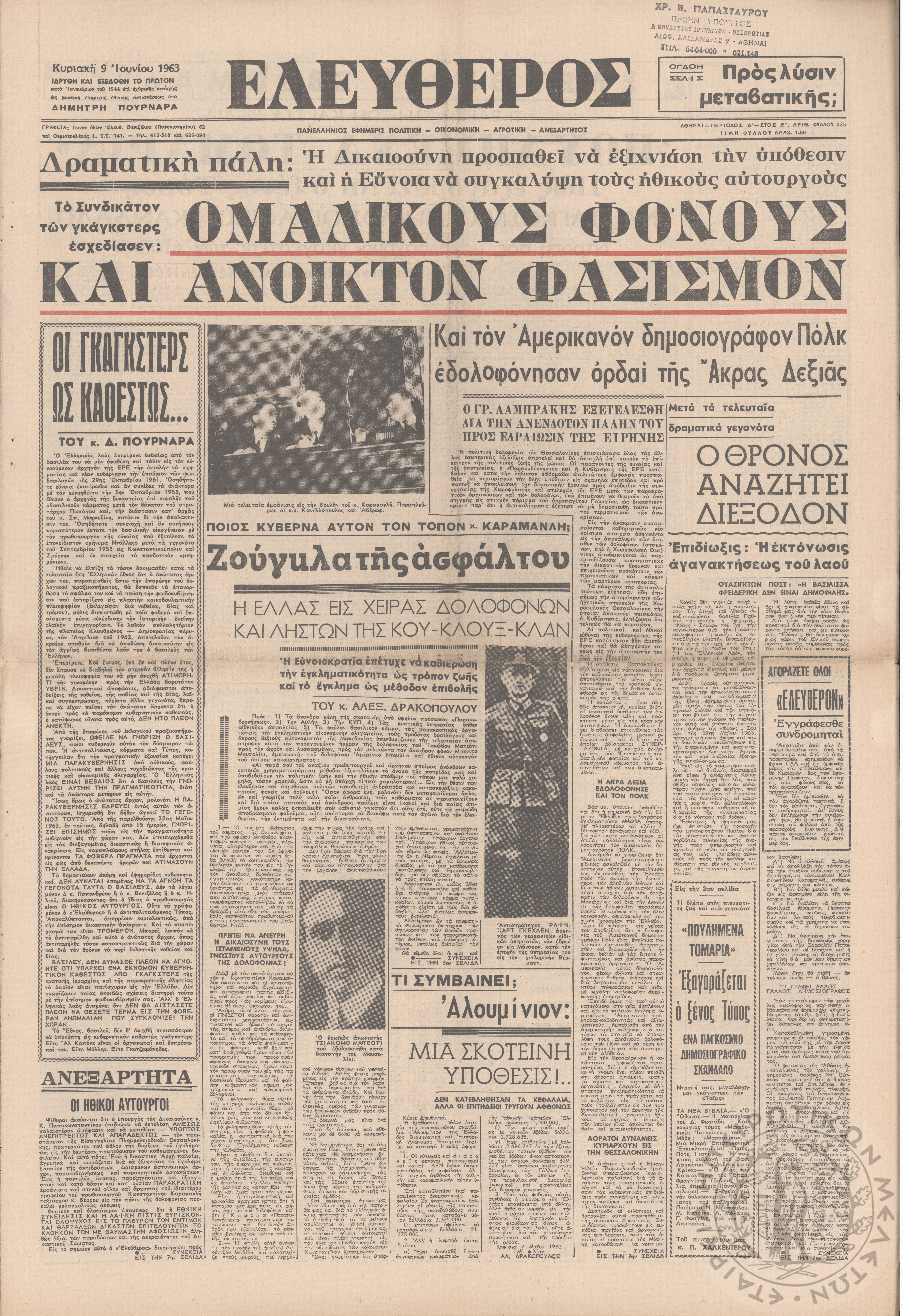 Ελεύθερος: πανελλήνιος εφημερίς - πολιτική - οικονομική - αγροτική - ανεξάρτητος, 1963, φ. 434Έτος 5, φ. 434...
