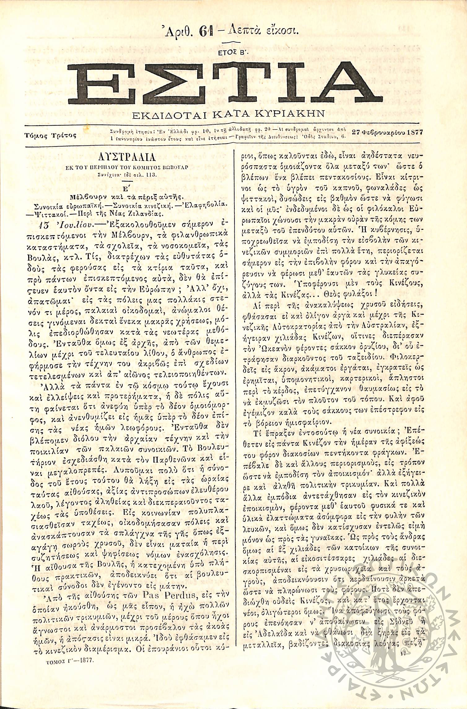 Ο θησαυρός των παιδιών: δεκαπενθήμερον περιοδικόν δια τα παιδιά όλων των σχολείων (τεύχ. 29)Τεύχ. 29: Ο νέος Ροβινσών ...