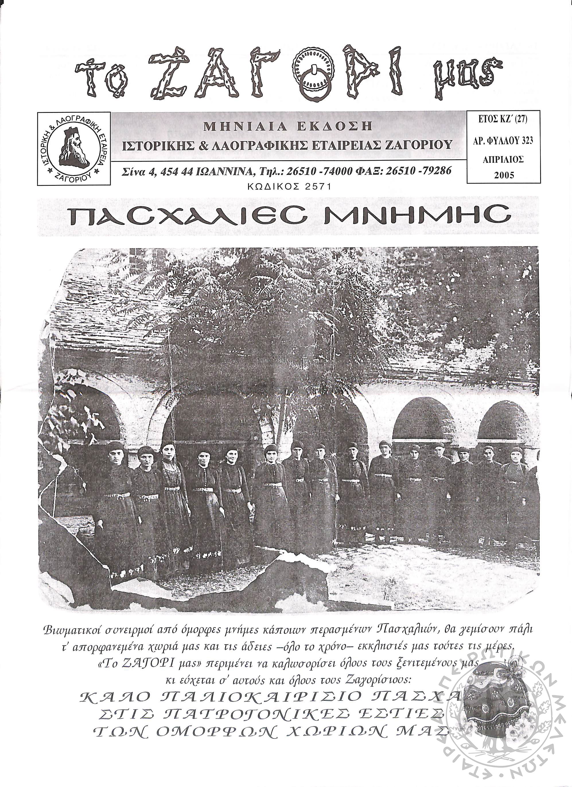 Το Ζαγόρι μας: μηνιαία έκδοση Ιστορικής και Λαογραφικής Εταιρείας Ζαγορίου (φ. 323)Έτος ΚΖ΄, φ. 323...