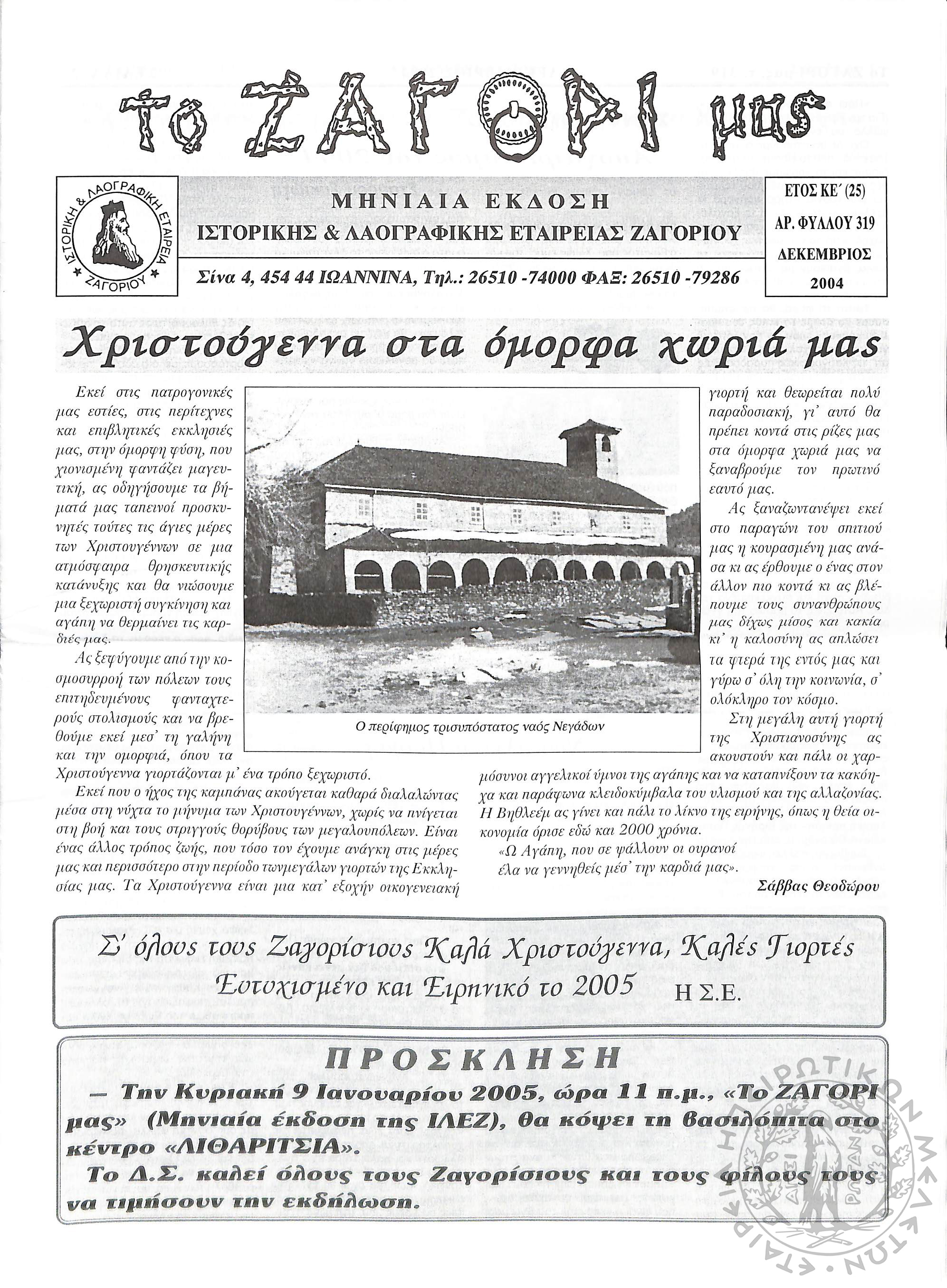 Το Ζαγόρι μας: μηνιαία έκδοση Ιστορικής και Λαογραφικής Εταιρείας Ζαγορίου (φ. 319)Έτος ΚΕ΄, φ. 319...