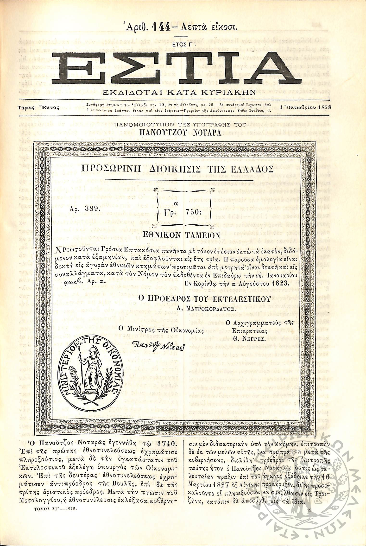 Εστία : Εκδίδοται κατά Κυριακήν - Τόμ. 6 / τχ. 144