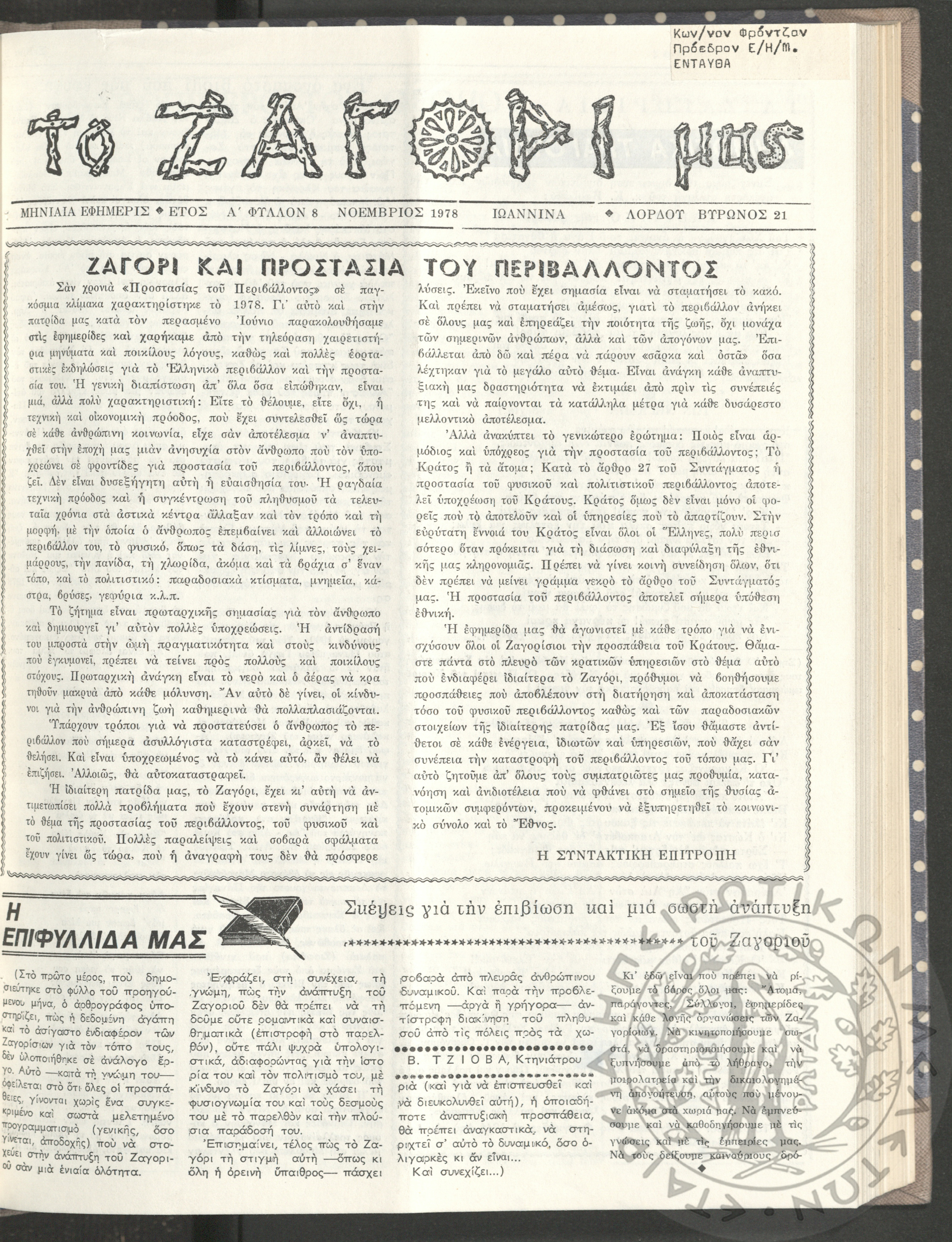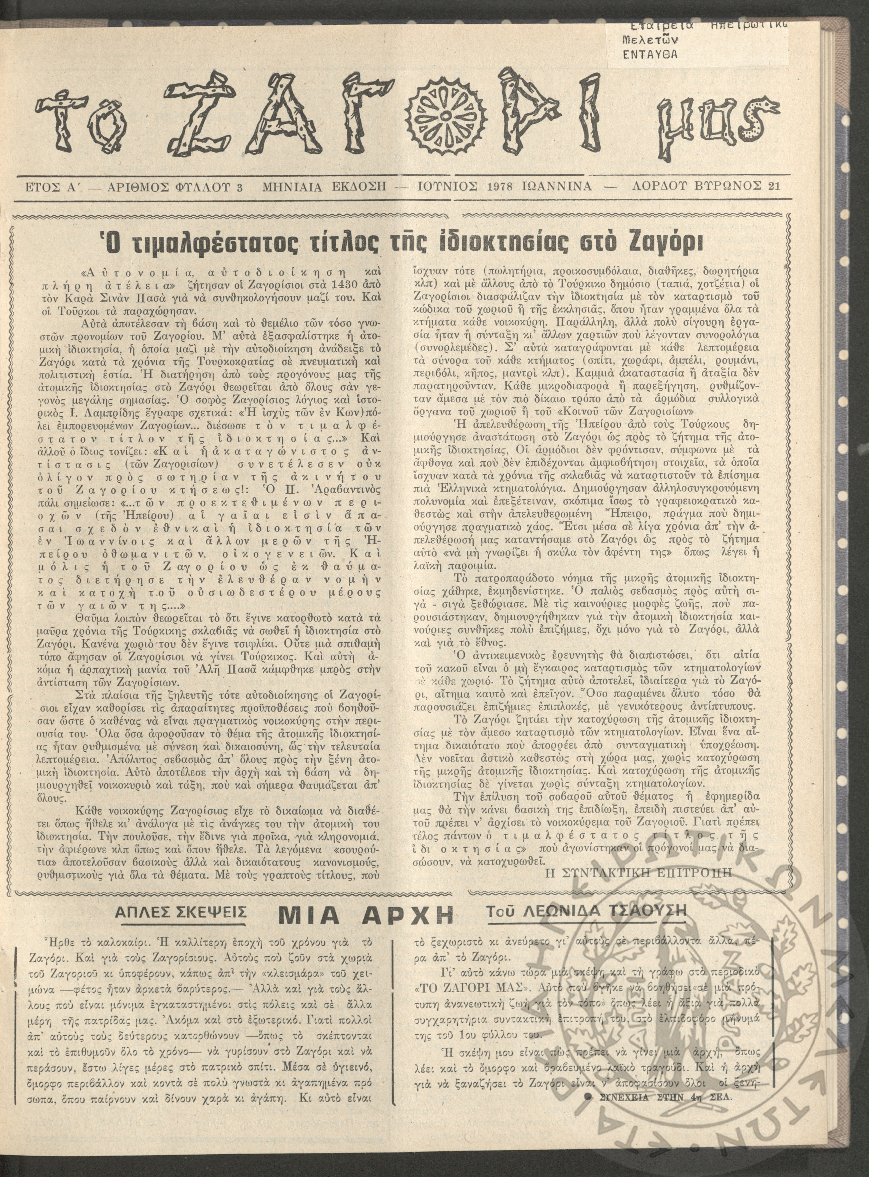 Το Ζαγόρι μας: μηνιαία έκδοση, 1978, φ. 3