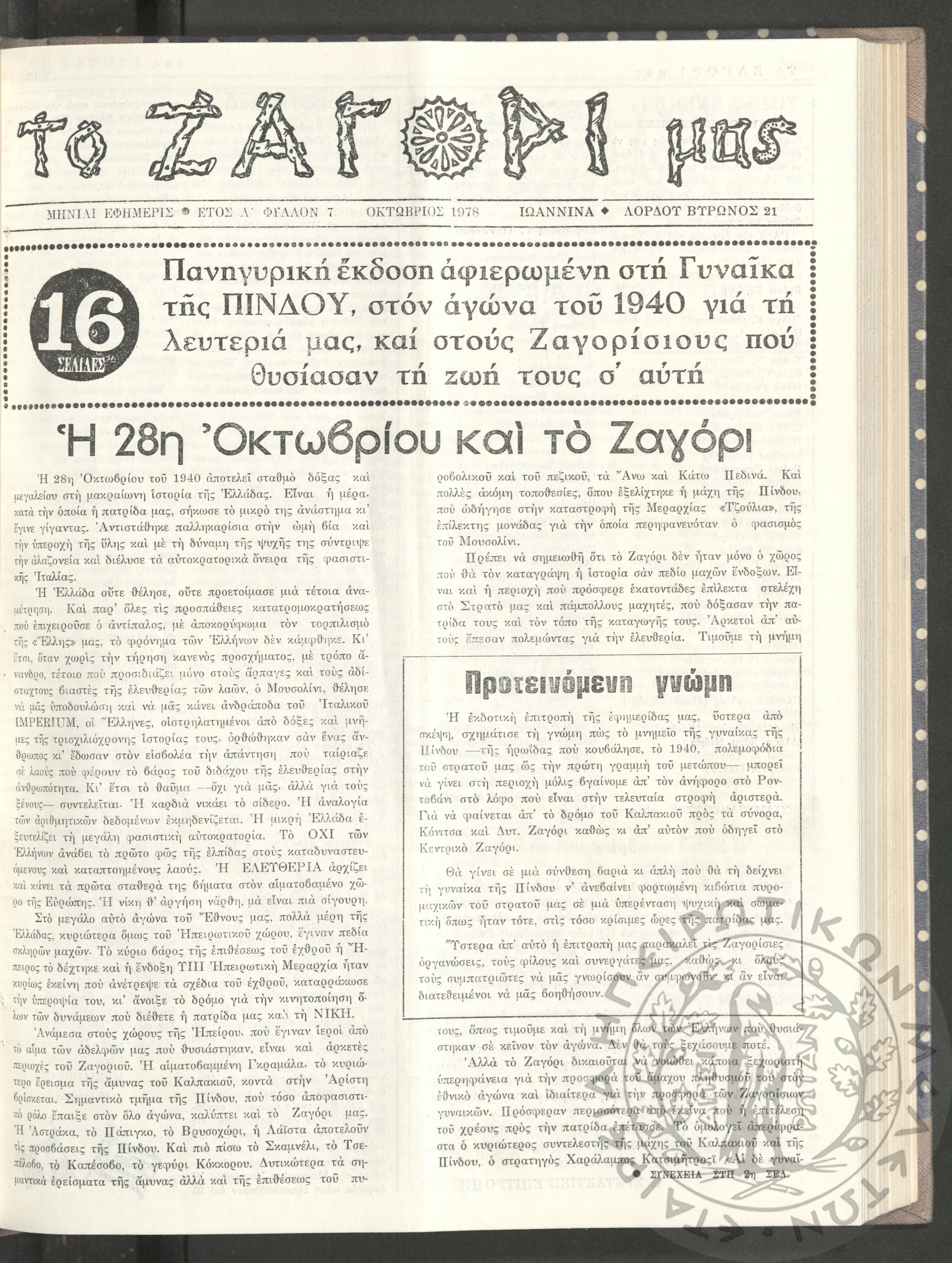 Το Ζαγόρι μας: μηνιαία εφημερίς, 1978, φ. 7