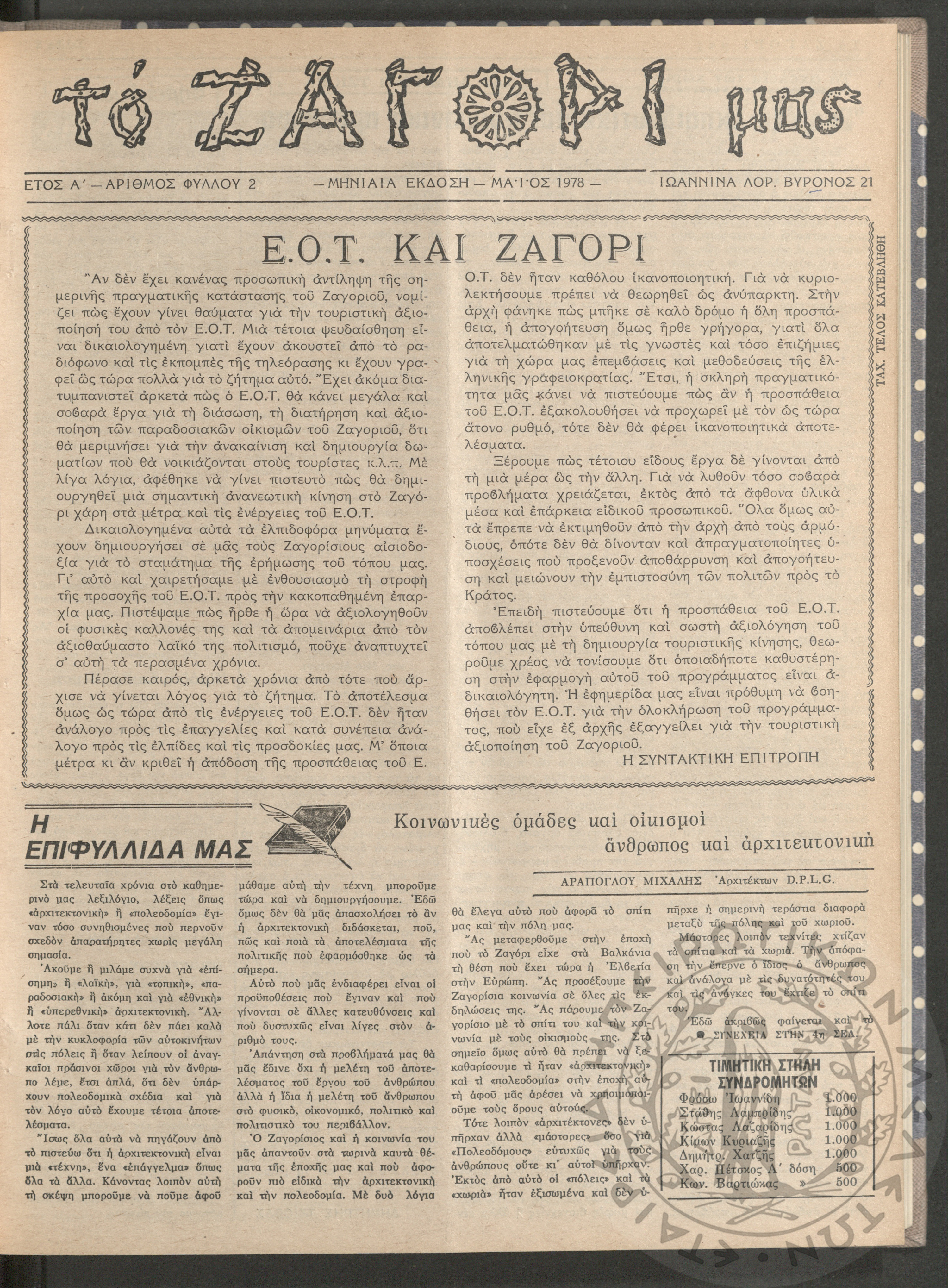 Το Ζαγόρι μας: μηνιαία έκδοση, 1978, φ. 2