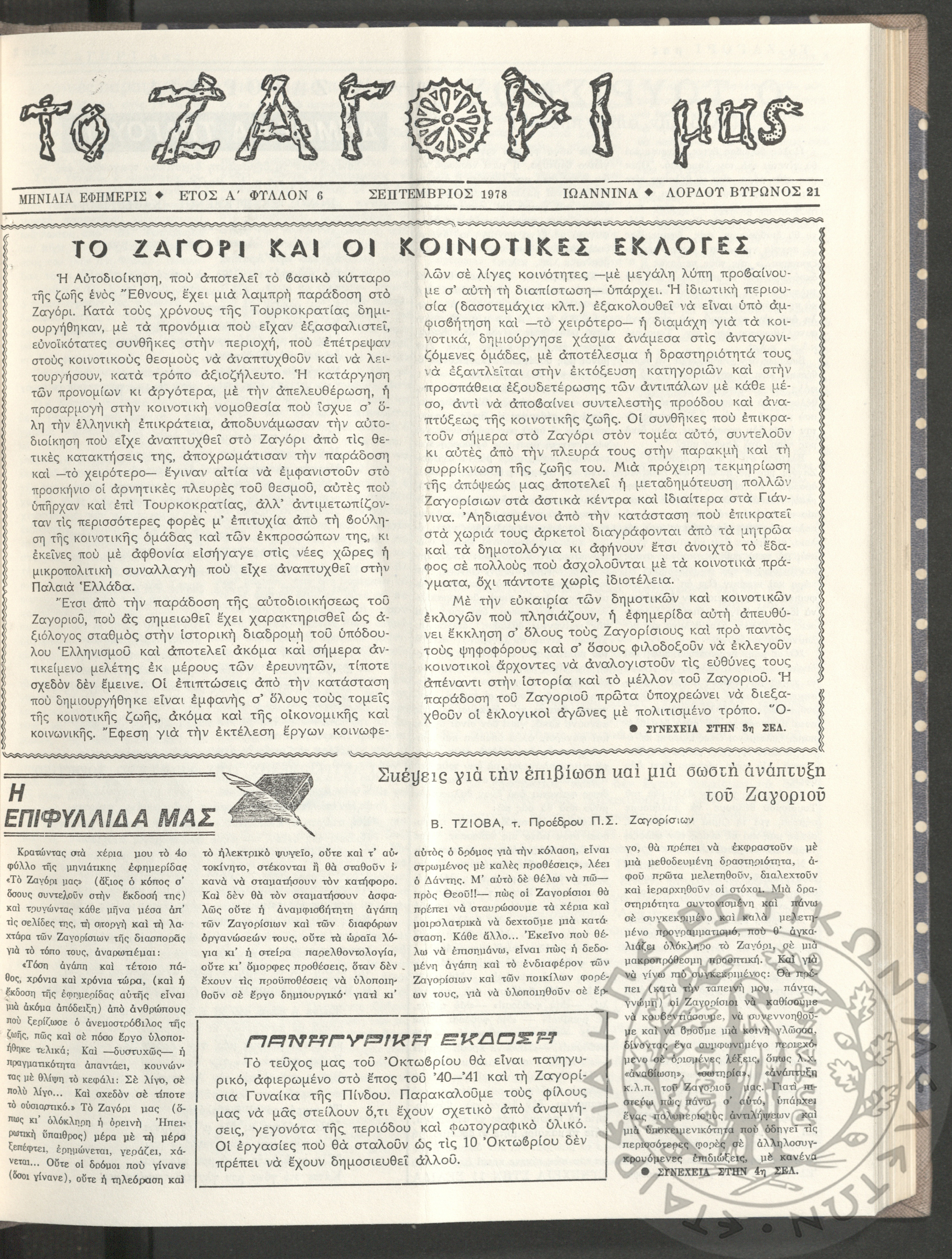 Το Ζαγόρι μας: μηνιαία εφημερίς, 1978, φ. 6