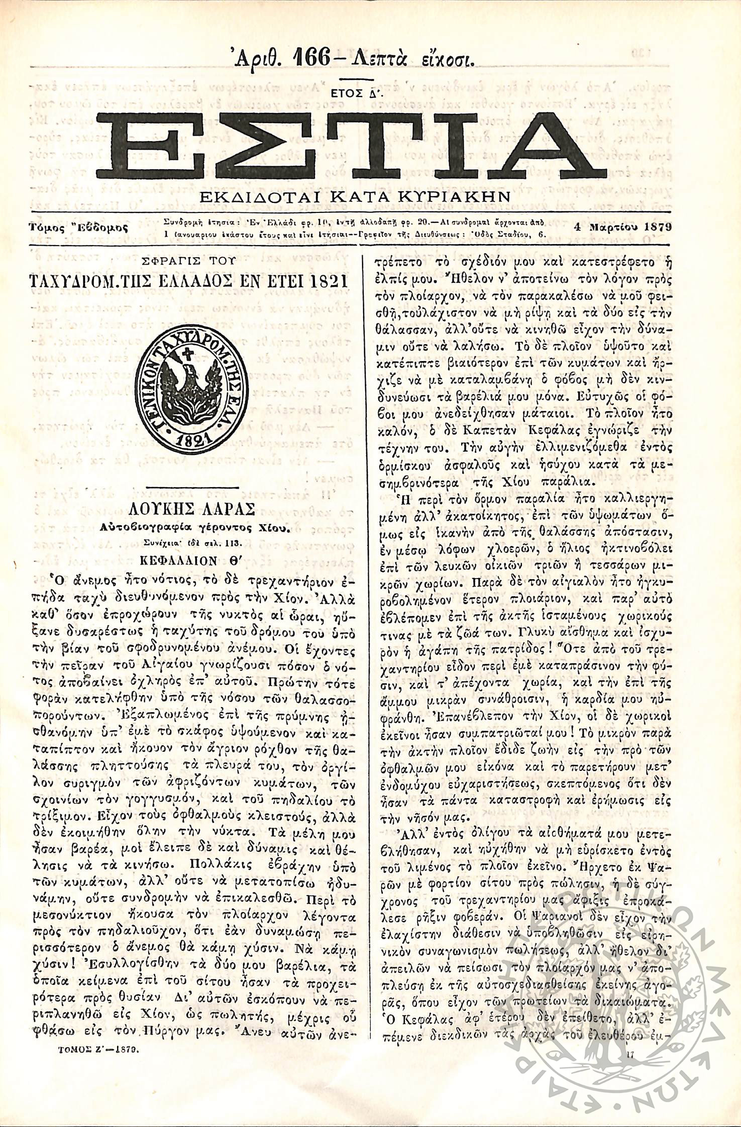 Εστία : Εκδίδοται κατά Κυριακήν - Τόμ. 7 / τχ. 166