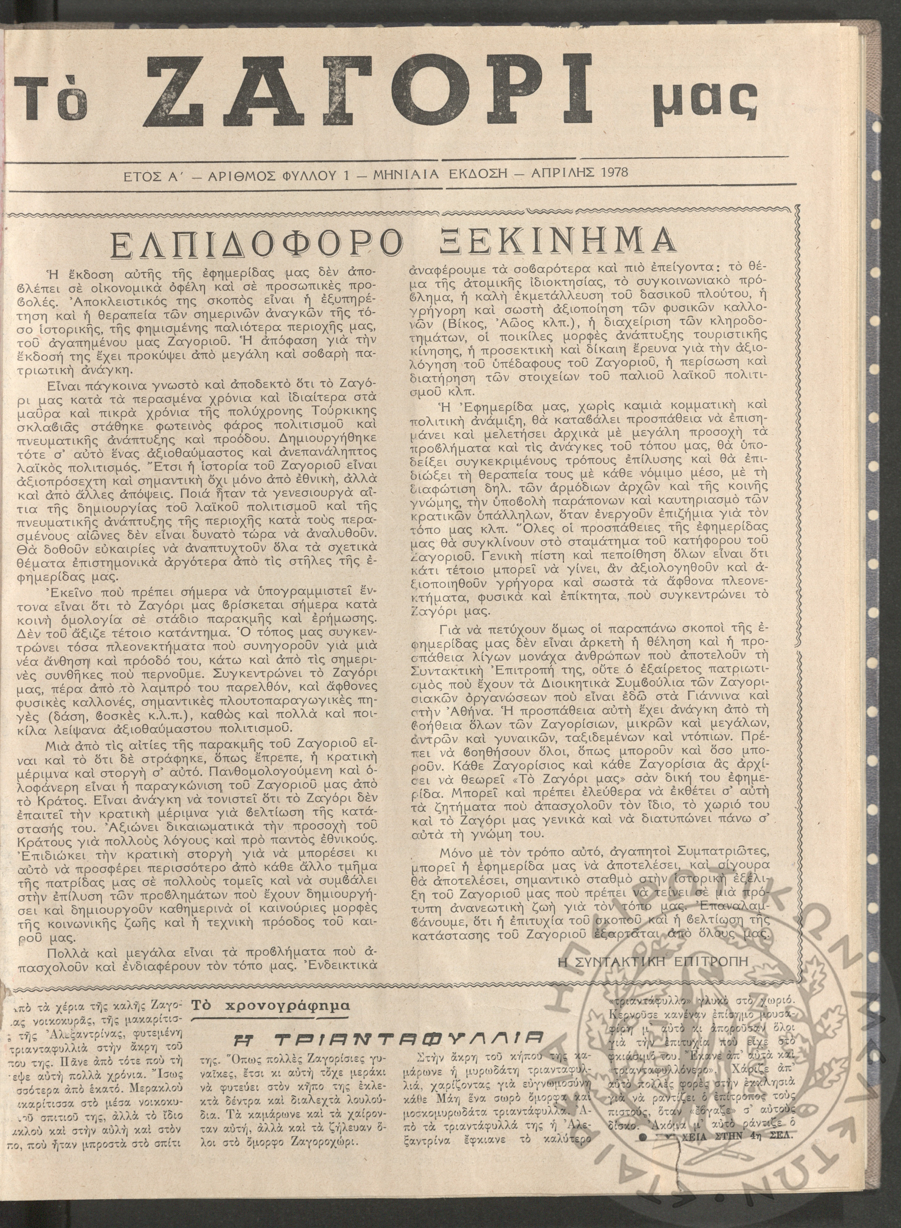 Το Ζαγόρι μας, 1978, φ. 1