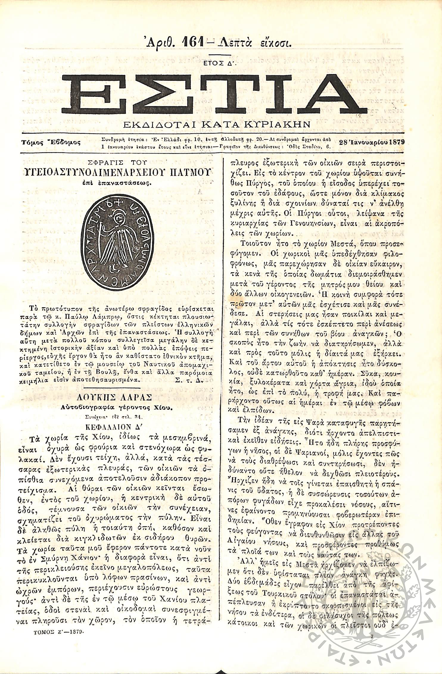 Εστία : Εκδίδοται κατά Κυριακήν - Τόμ. 7 / τχ. 161