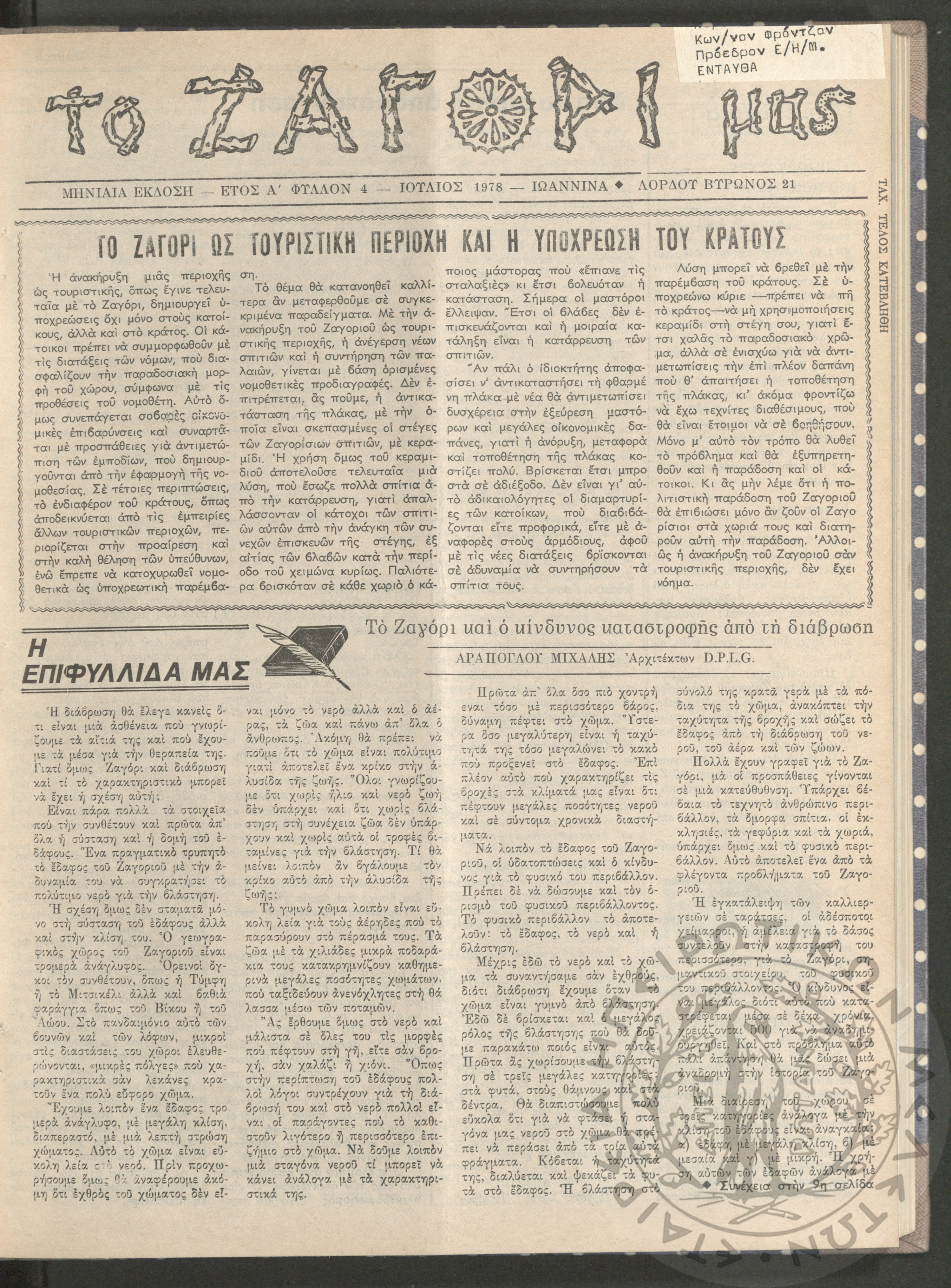 Το Ζαγόρι μας: μηνιαία έκδοση, 1978, φ. 4
