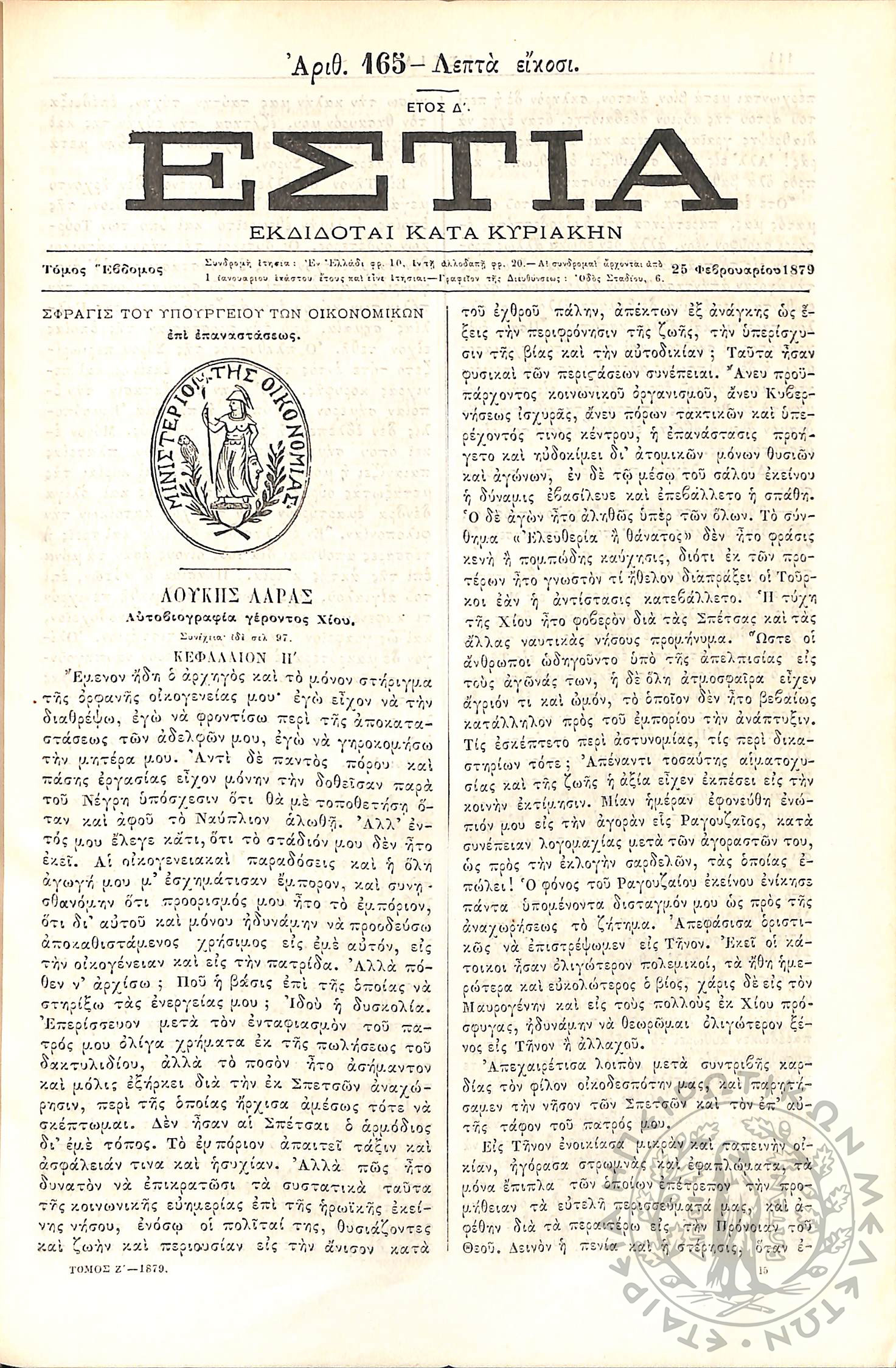 Εστία : Εκδίδοται κατά Κυριακήν - Τόμ. 7 / τχ. 165