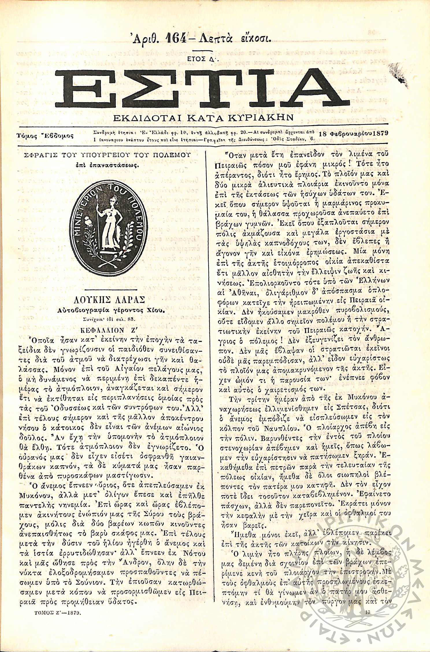 Εστία : Εκδίδοται κατά Κυριακήν - Τόμ. 7 / τχ. 164