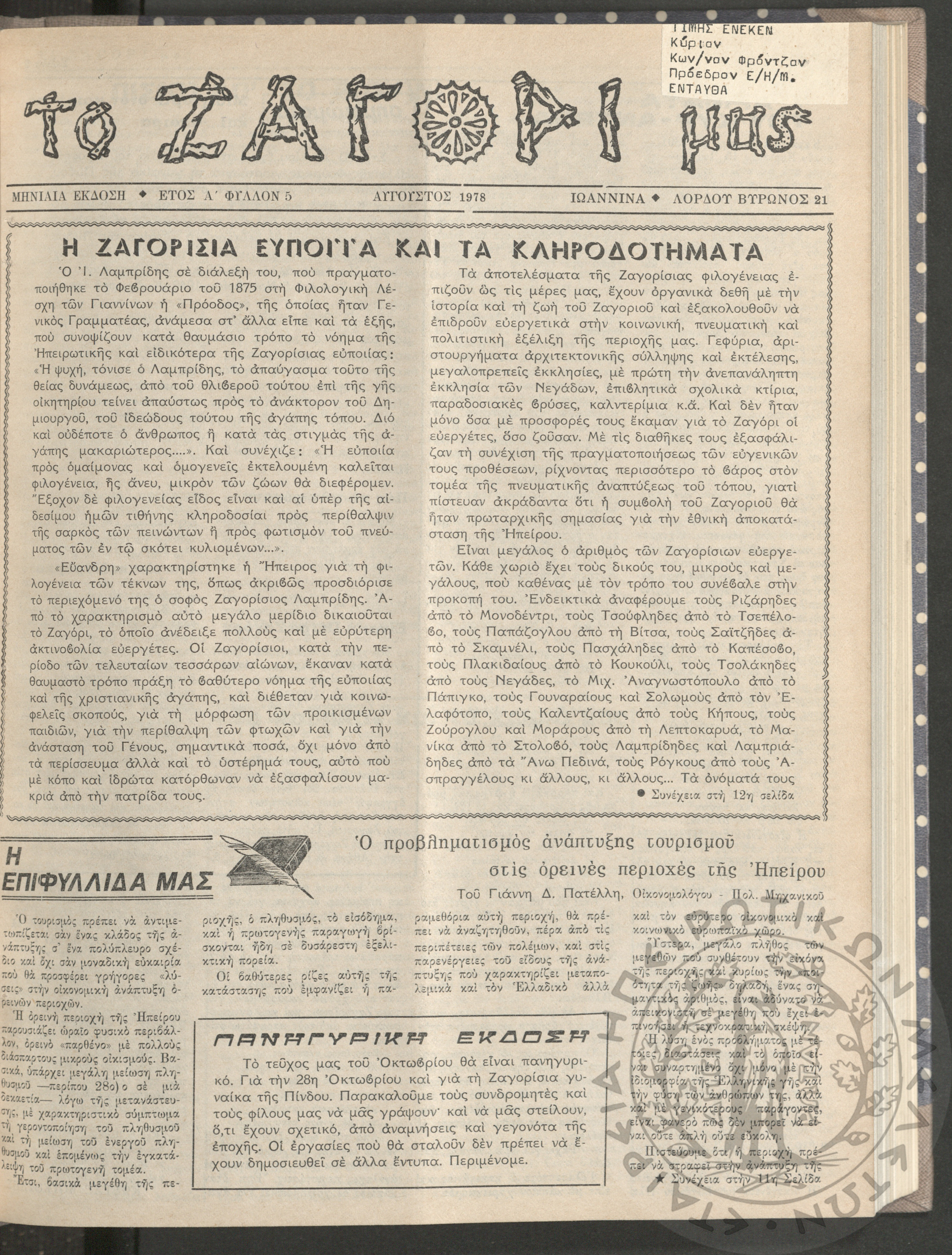 Το Ζαγόρι μας: μηνιαία έκδοση, 1978, φ. 5