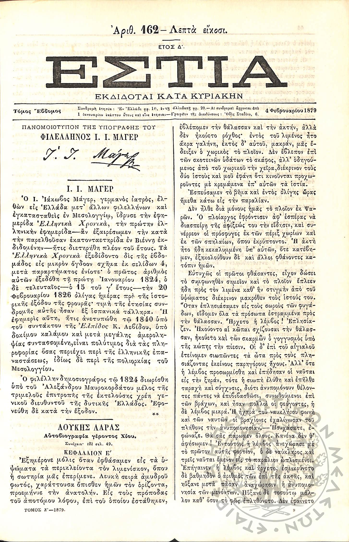 Εστία : Εκδίδοται κατά Κυριακήν - Τόμ. 7 / τχ. 162