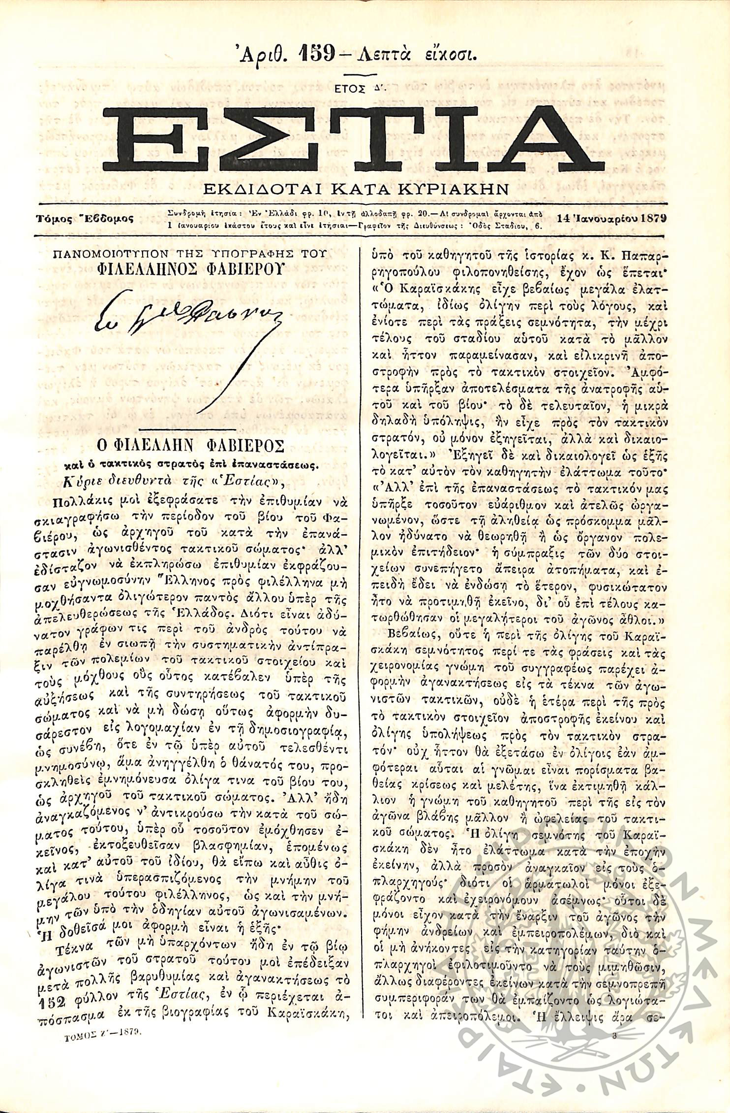 Εστία : Εκδίδοται κατά Κυριακήν - Τόμ. 7 / τχ. 159