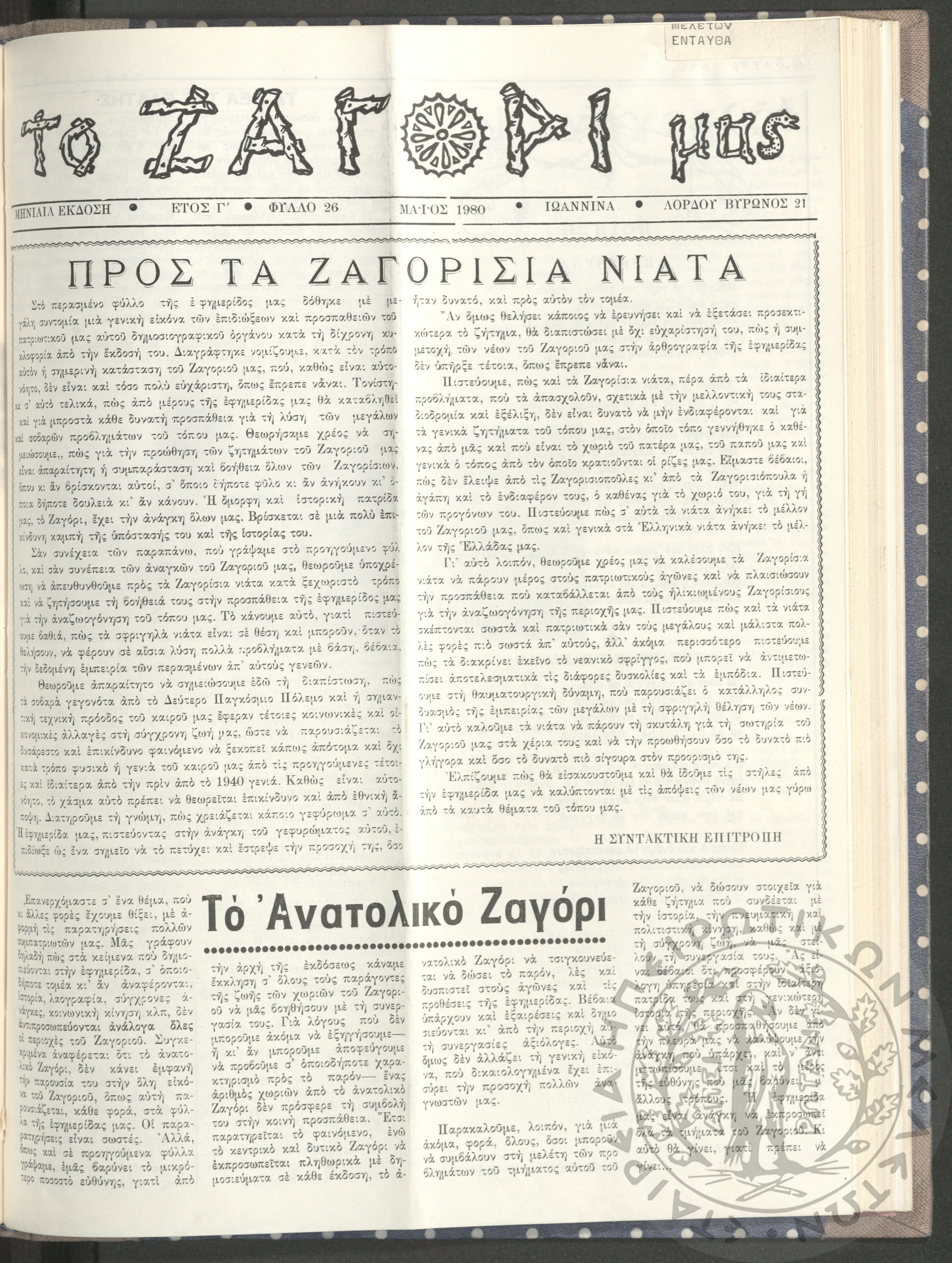 Το Ζαγόρι μας: μηνιαία έκδοση, 1980, φ. 26