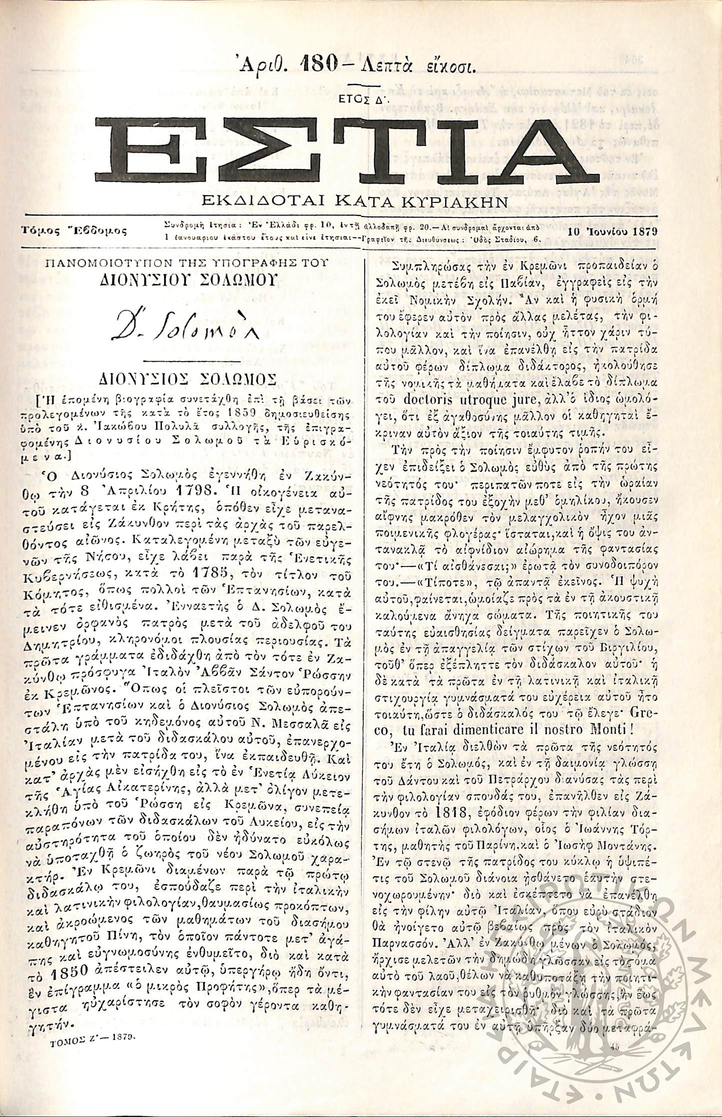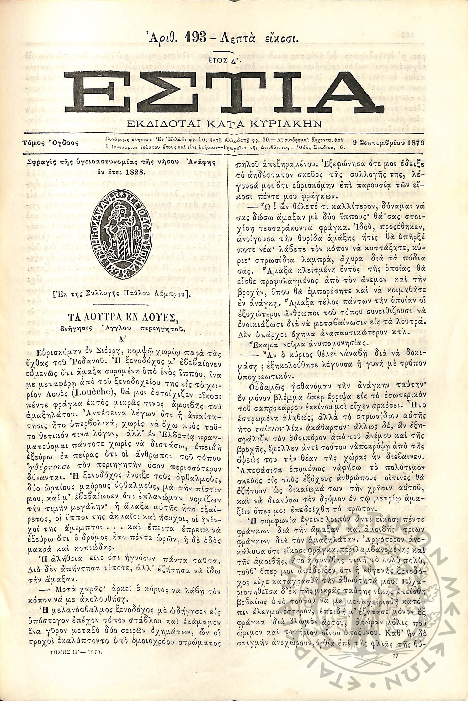 Εστία : Εκδίδοται κατά Κυριακήν - Τόμ. 8 / τχ. 193