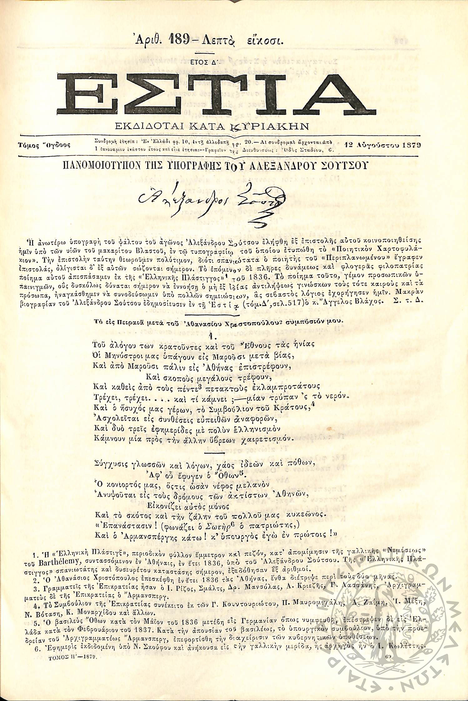 Εστία : Εκδίδοται κατά Κυριακήν - Τόμ. 8 / τχ. 189