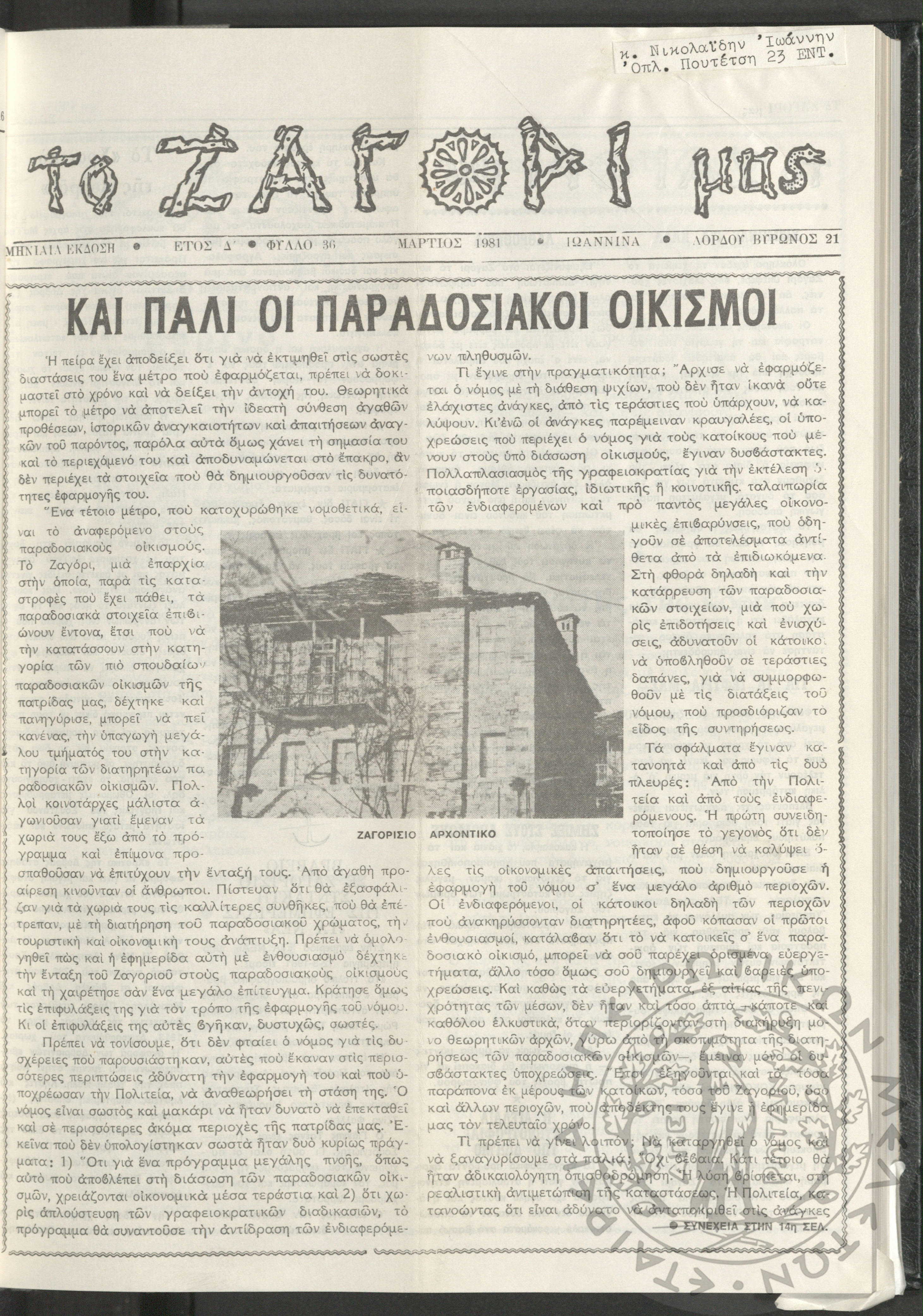 Το Ζαγόρι μας: μηνιαία έκδοση, 1981, φ. 36