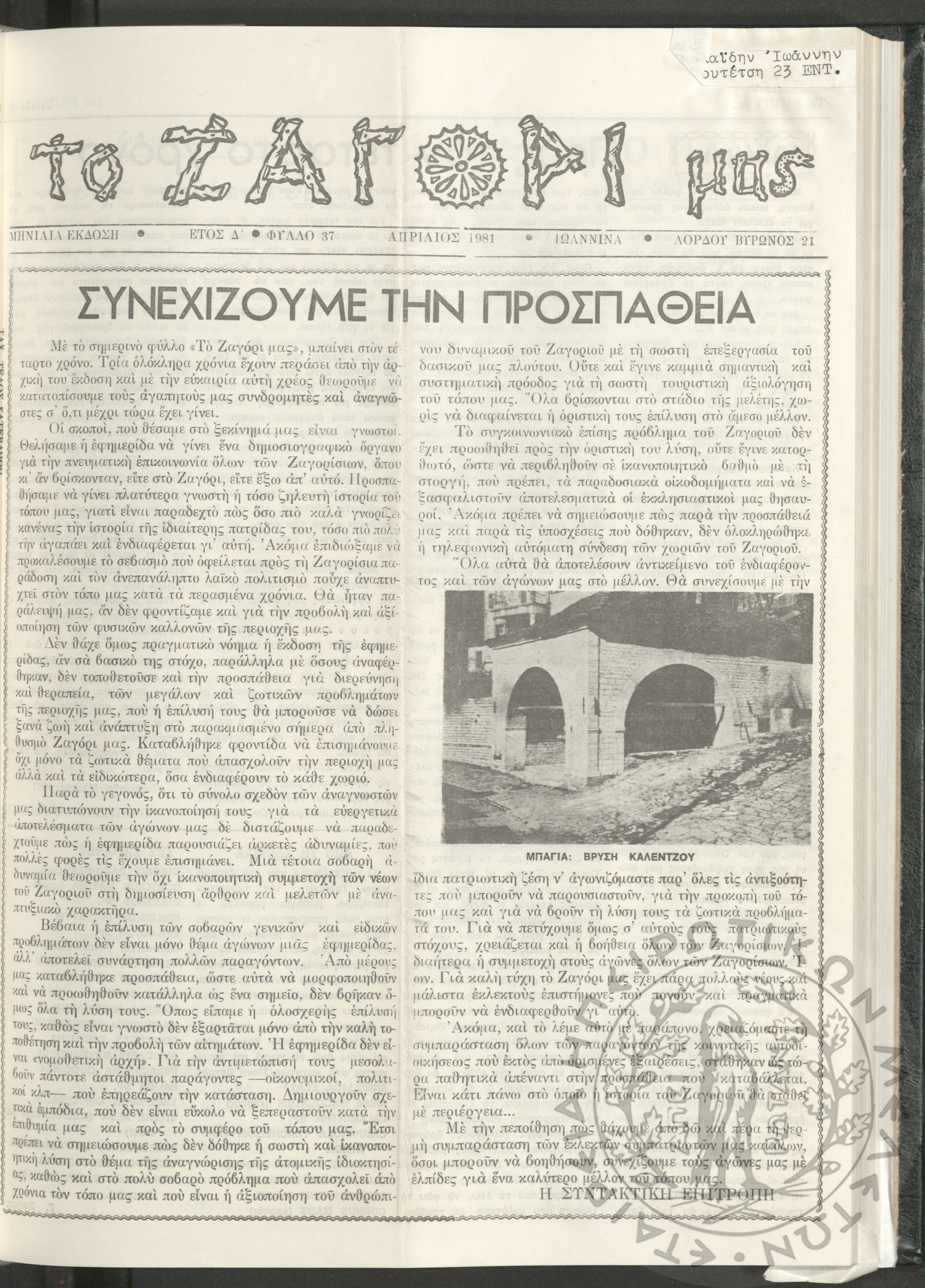 Το Ζαγόρι μας: μηνιαία έκδοση, 1981, φ. 37