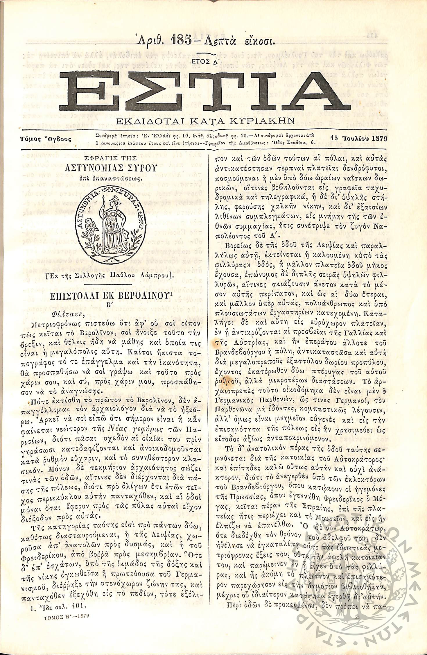 Εστία : Εκδίδοται κατά Κυριακήν - Τόμ. 8 / τχ. 185