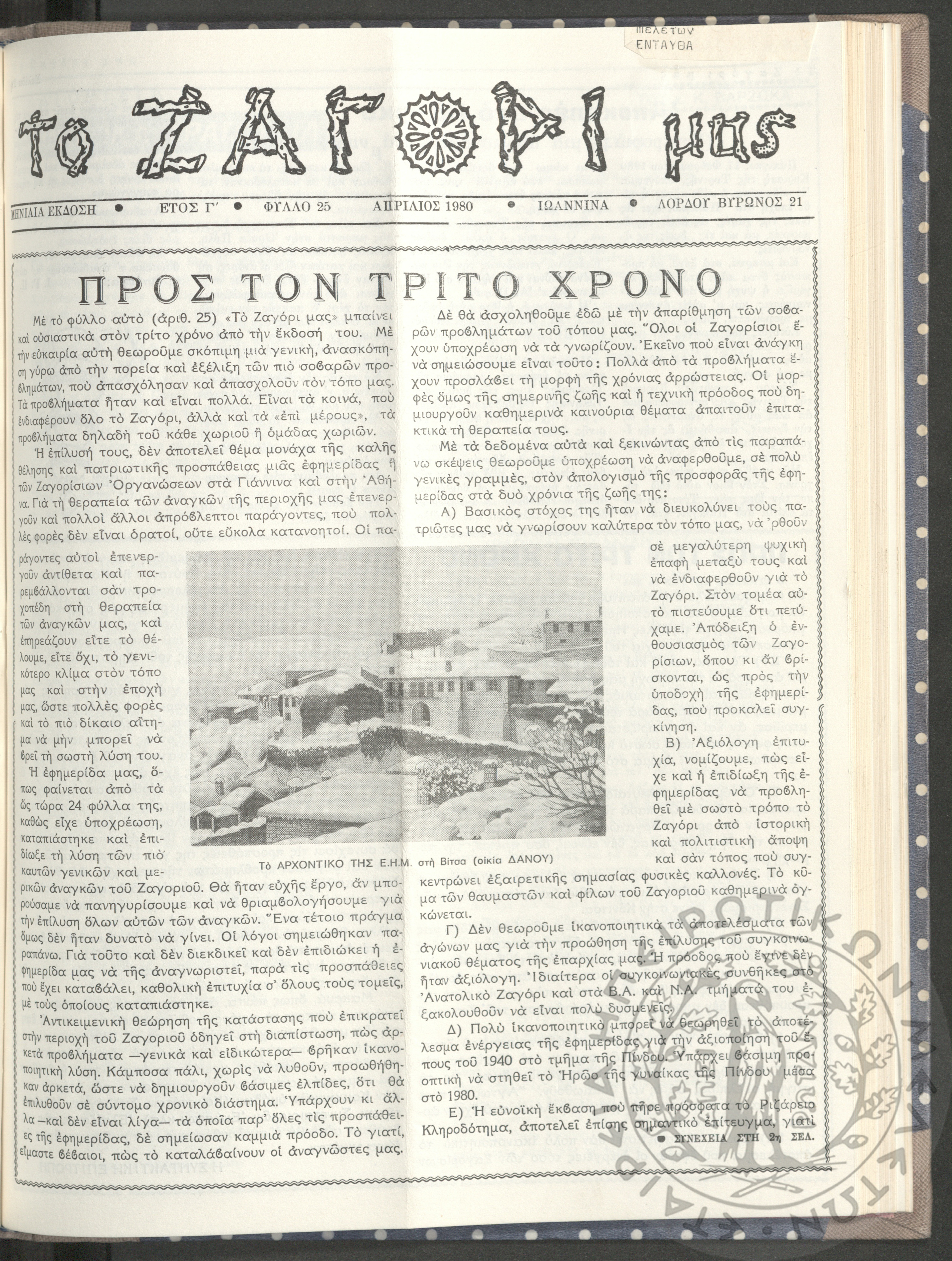 Το Ζαγόρι μας: μηνιαία έκδοση, 1980, φ. 25