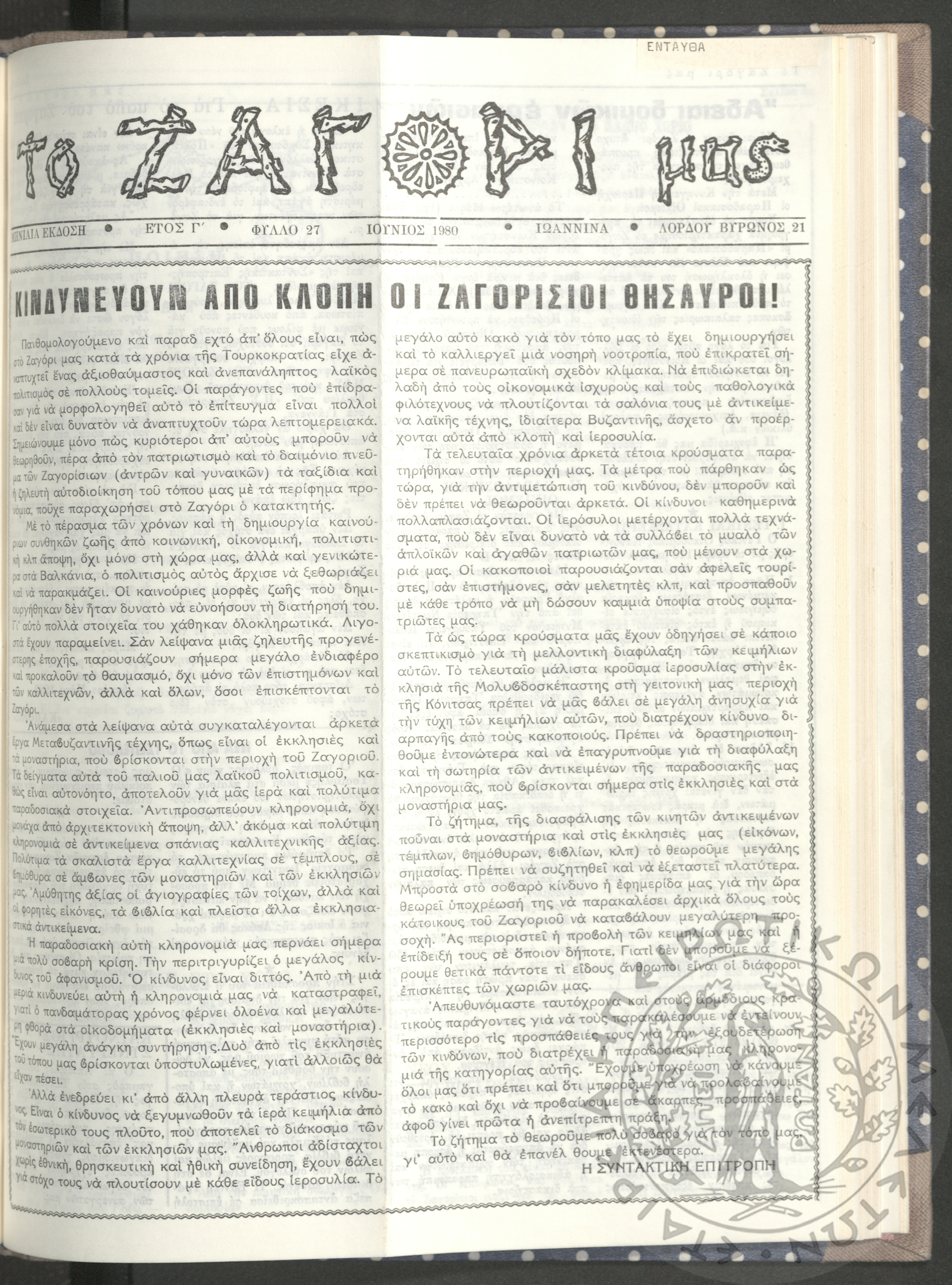 Το Ζαγόρι μας: μηνιαία έκδοση, 1980, φ. 27