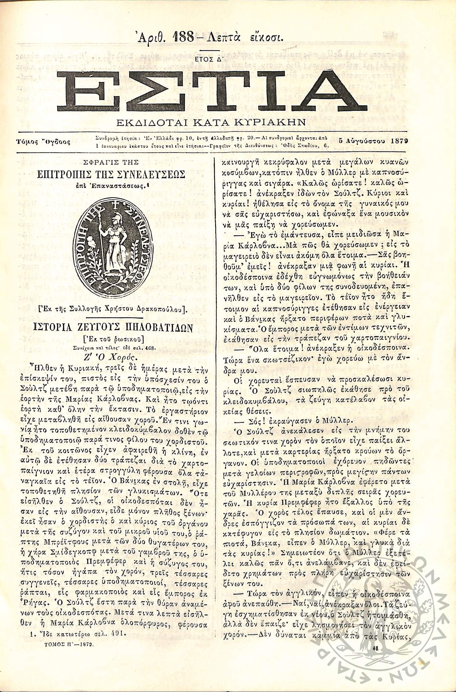 Εστία : Εκδίδοται κατά Κυριακήν - Τόμ. 8 / τχ. 188