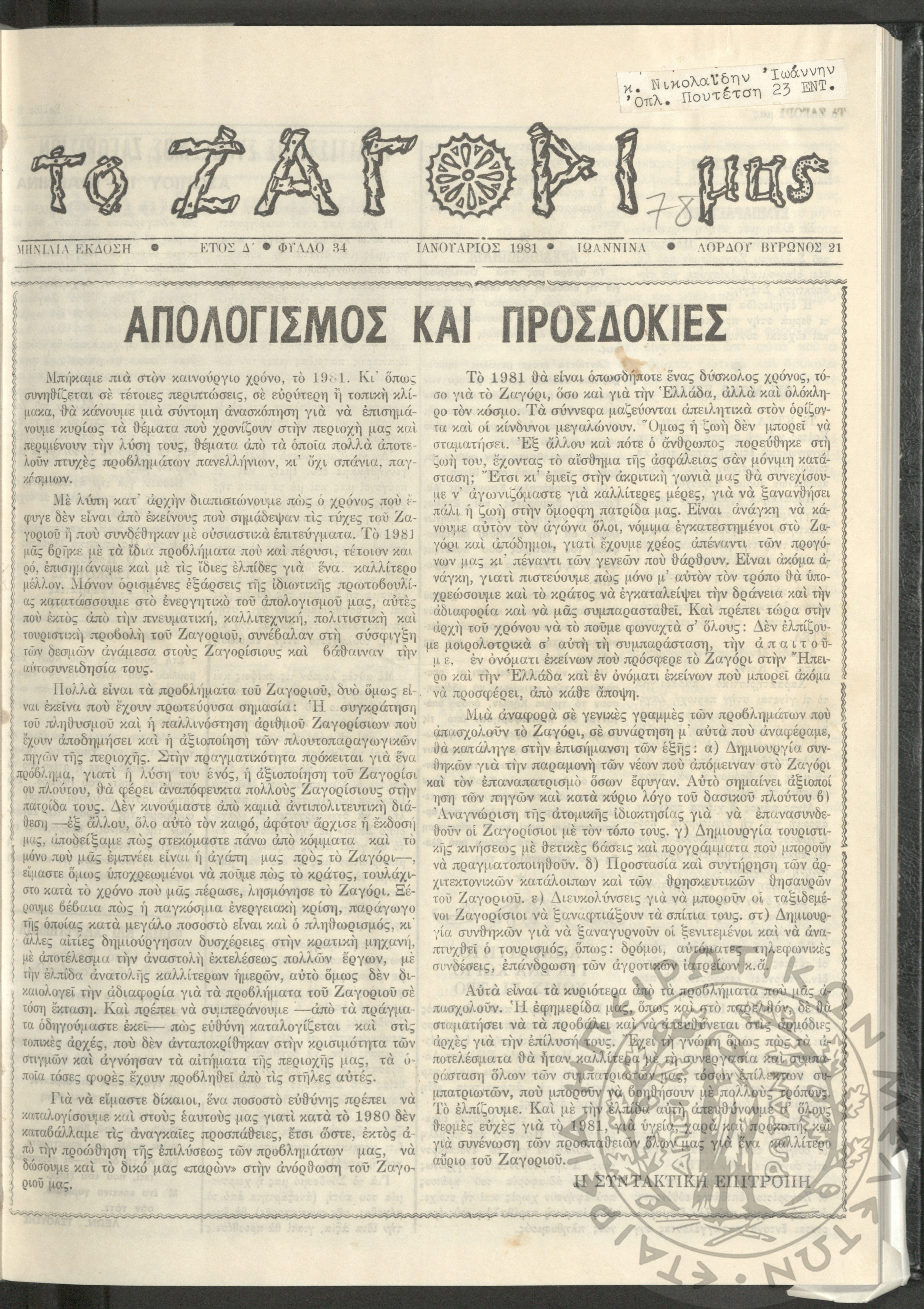 Το Ζαγόρι μας: μηνιαία έκδοση, 1981, φ. 34