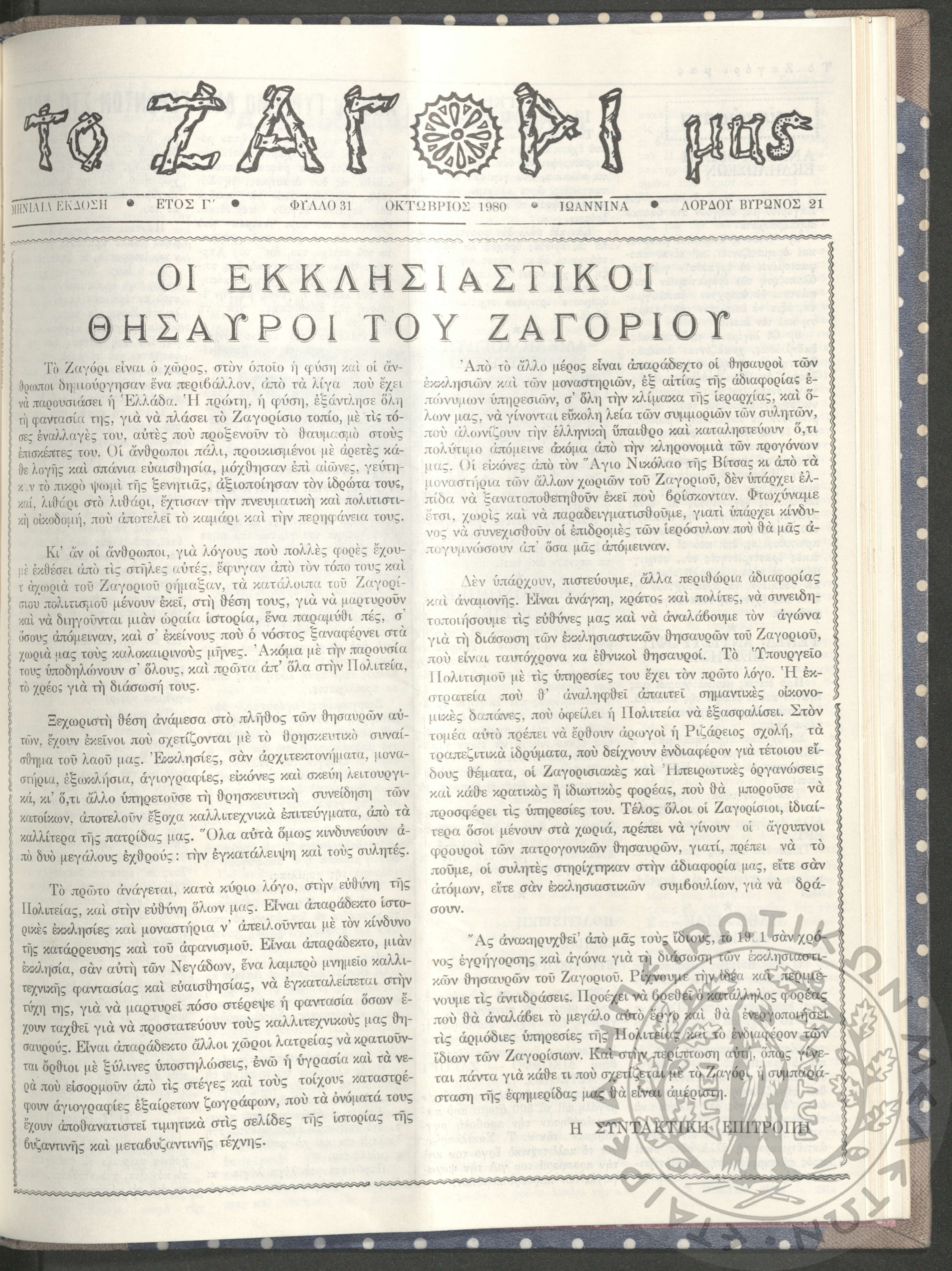 Το Ζαγόρι μας: μηνιαία έκδοση, 1980, φ. 31