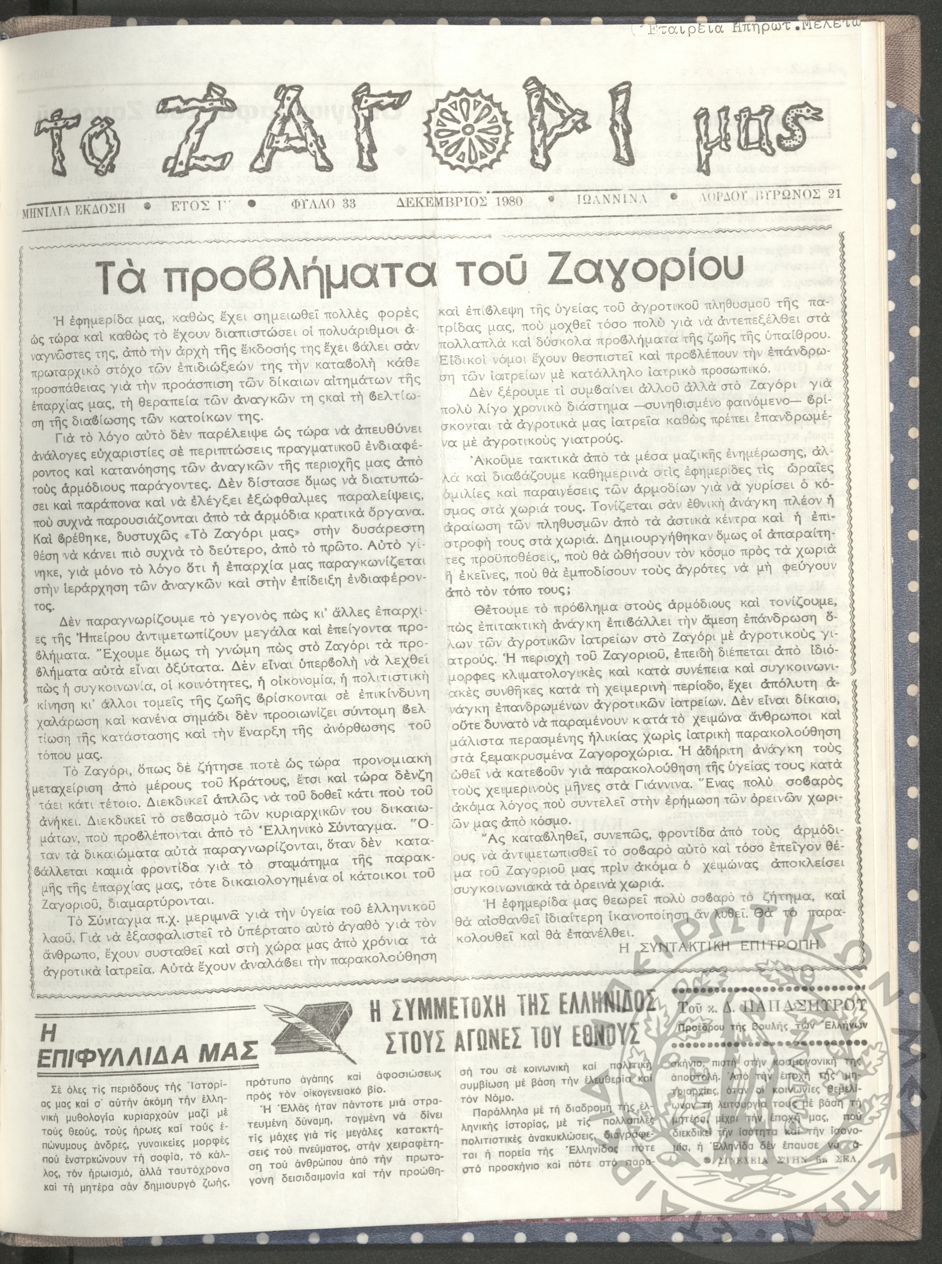 Το Ζαγόρι μας: μηνιαία έκδοση, 1980, φ. 33