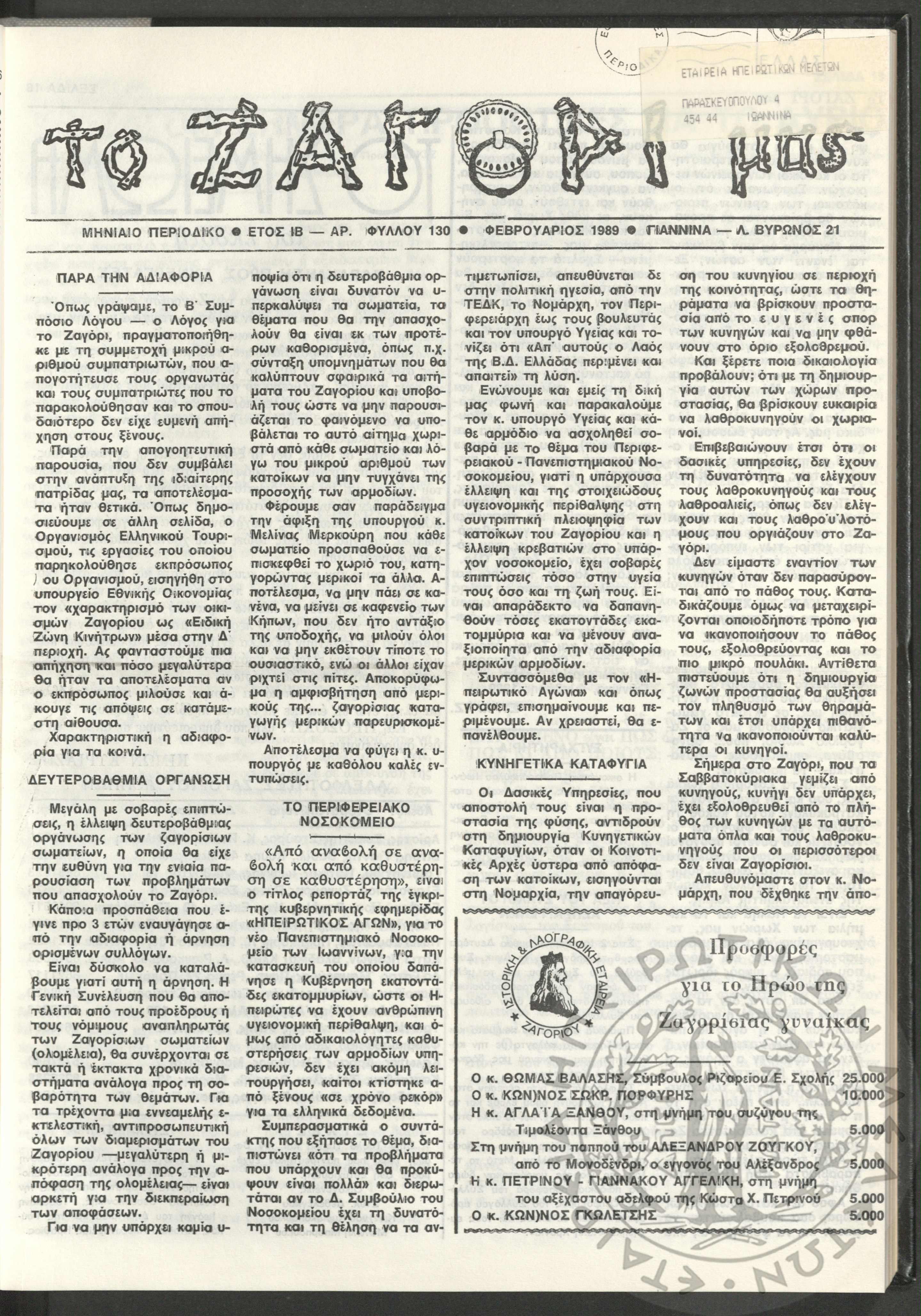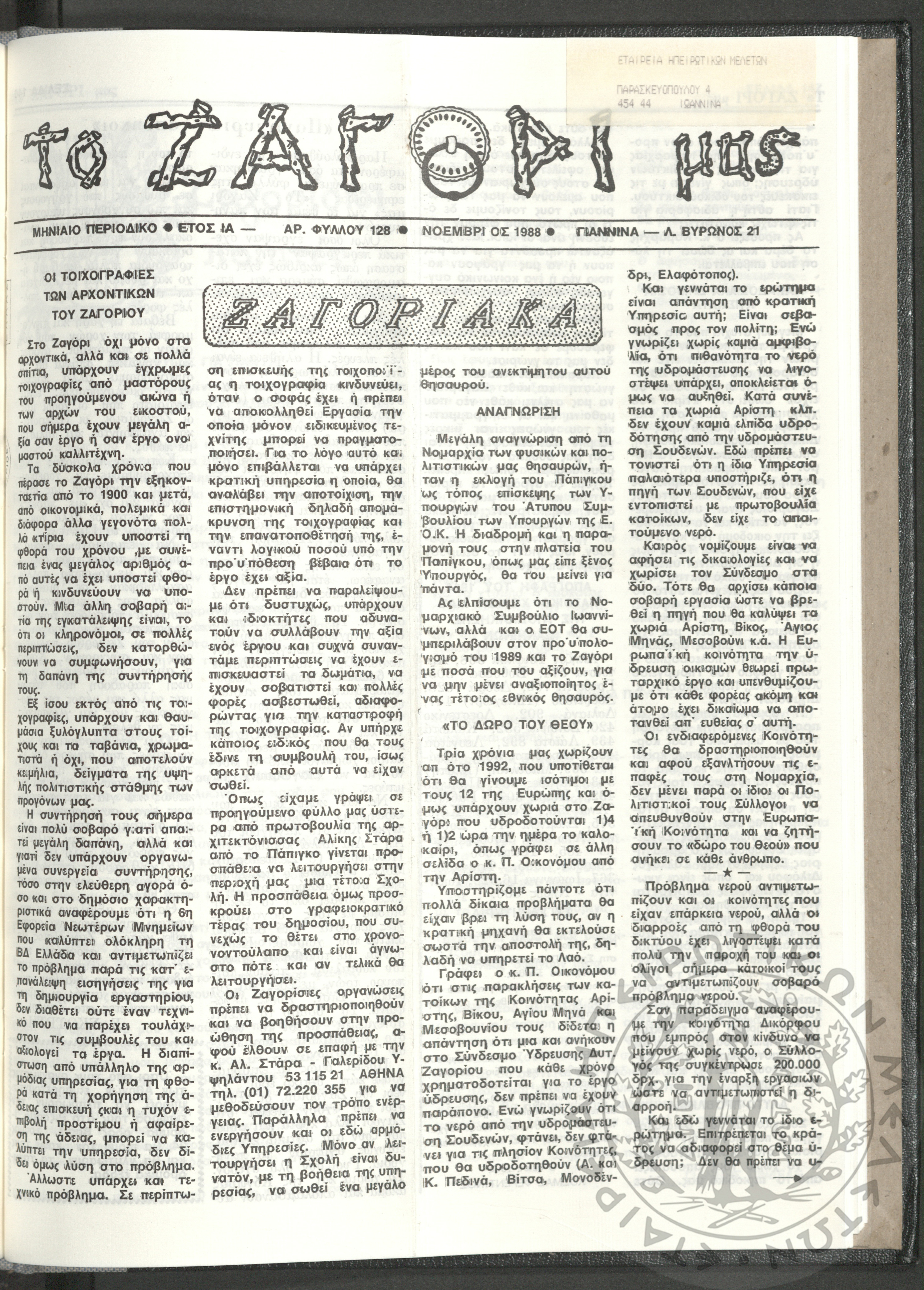 - Ψηφιακό Αποθετήριο Ανάδειξης και προβολής των ιστορικών τεκμηρίων της Εταιρείας Ηπειρωτικών Μελετών