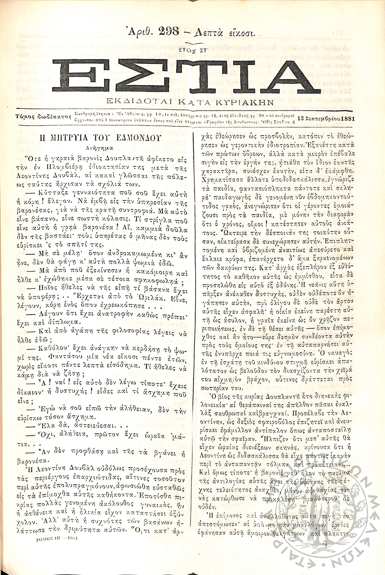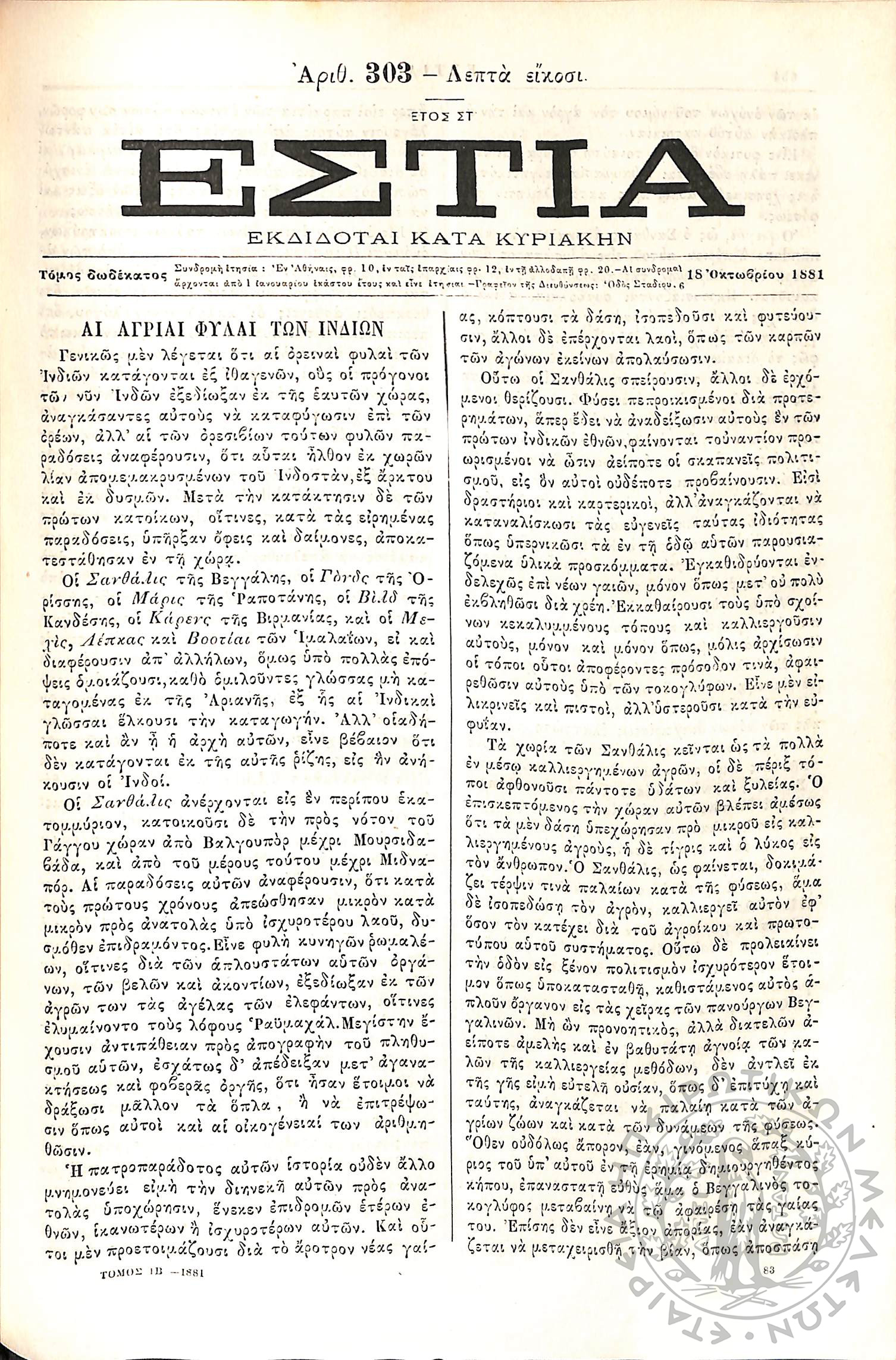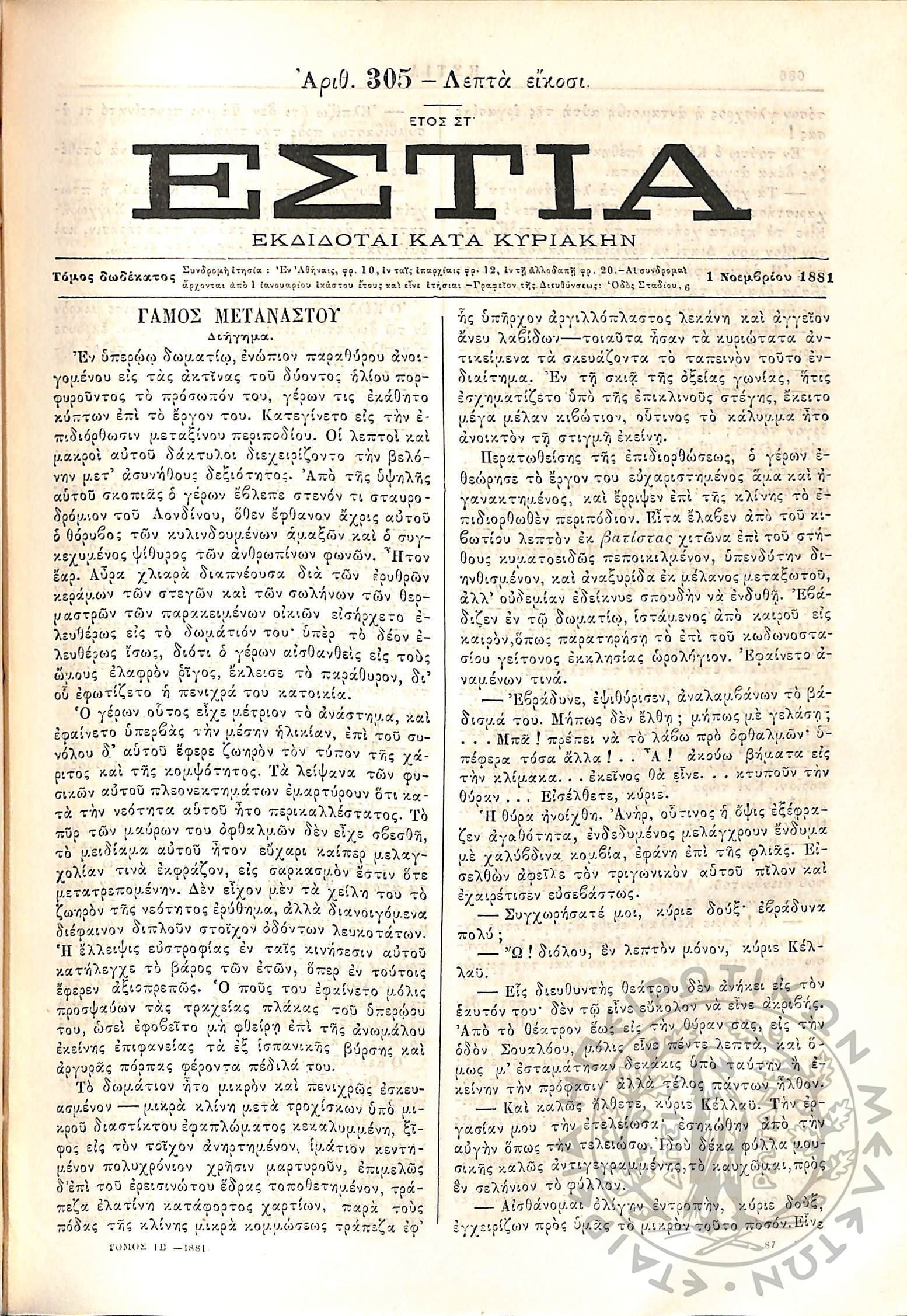 Έτος 18, τόμ. 3, τεύχ. 12... Έτος 18ον, τόμ. 3, τεύχ. 13-14... Έτος 18, τόμ. 3, τεύχ. 15... Έτος 18, τόμ. 3, τεύχ. 16... Έτος 18, τόμ. 3, τεύχ. 17... Έτος 18, τόμ. 3, τεύχ. 18... Έτος 18, τόμ. 3, τεύχ. 19... Έτος 18, τόμ. 3, τεύχ. 20... Έτος 18, τόμ. 3, τεύχ. 21... Έτος 18, τόμ. 3, τεύχ. 22... Έτος 18, τόμ. 3, τεύχ. 23... Έτος 18, τόμ. 3, τεύχ. 24... Έτος 18, τόμ. 3, τεύχ. 25... Έτος 18, τόμ. 3, τεύχ. 26... Έτος 18, τόμ. 3, τεύχ. 27...