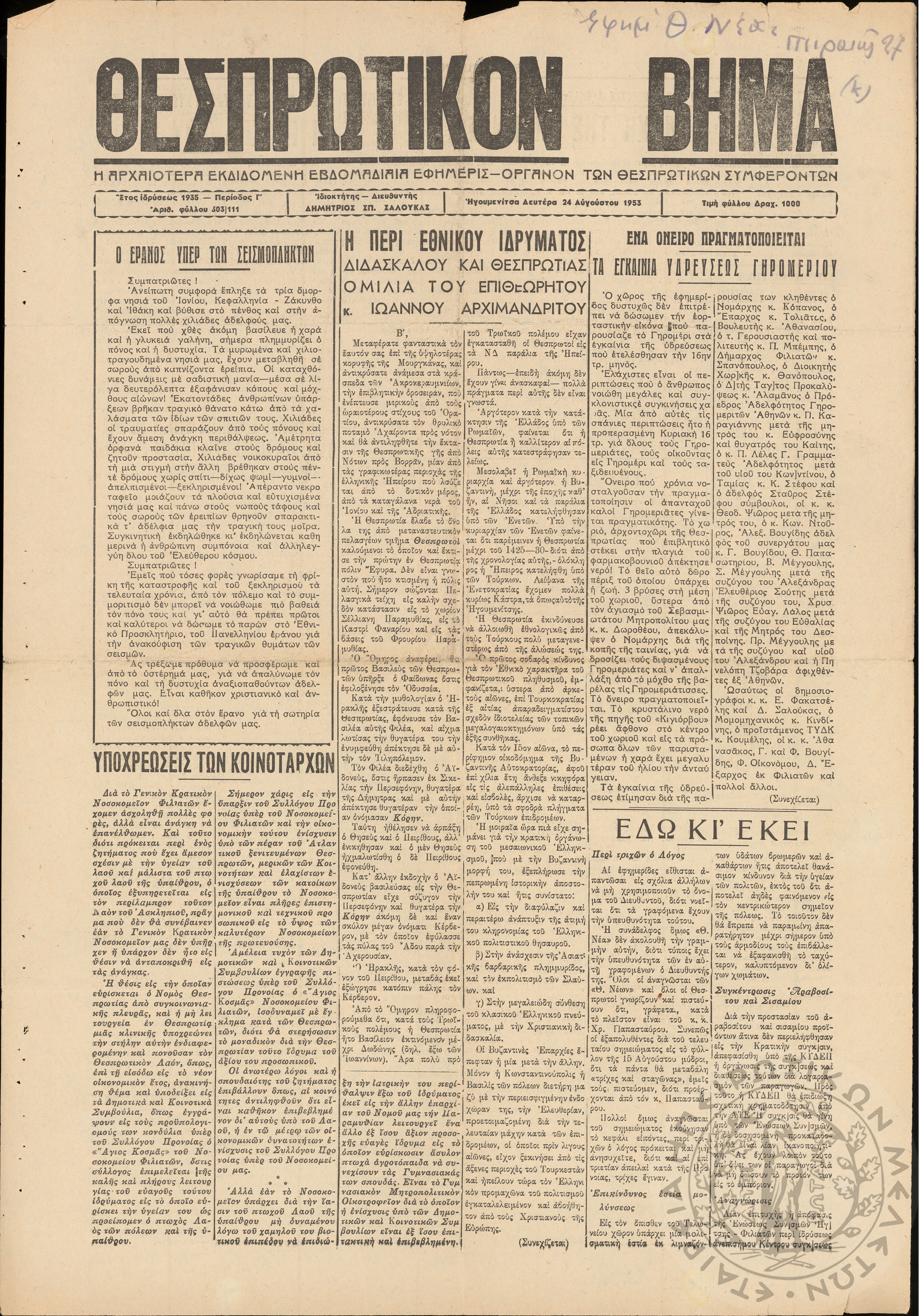 - Ψηφιακό Αποθετήριο Ανάδειξης και προβολής των ιστορικών τεκμηρίων της Εταιρείας Ηπειρωτικών Μελετών