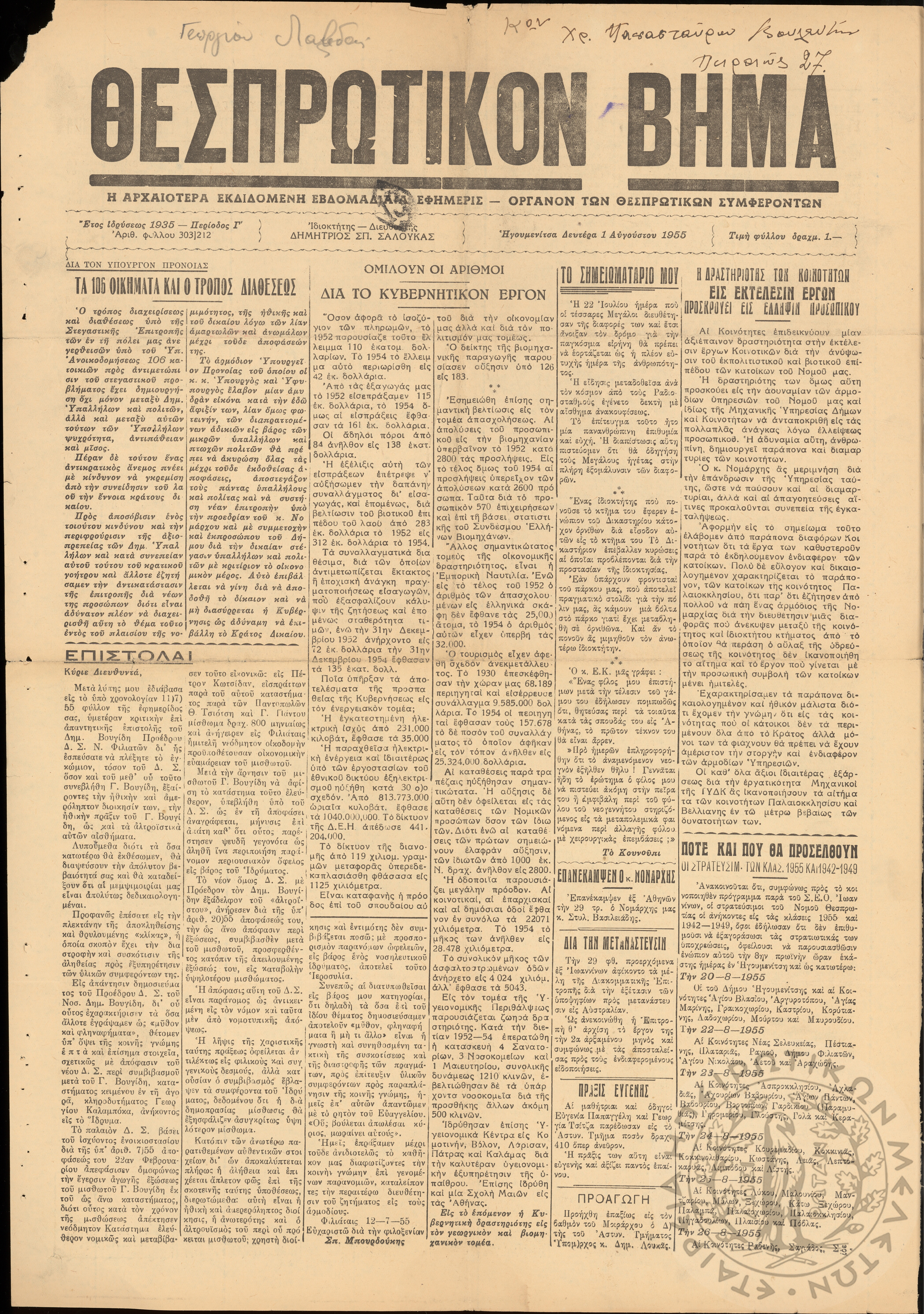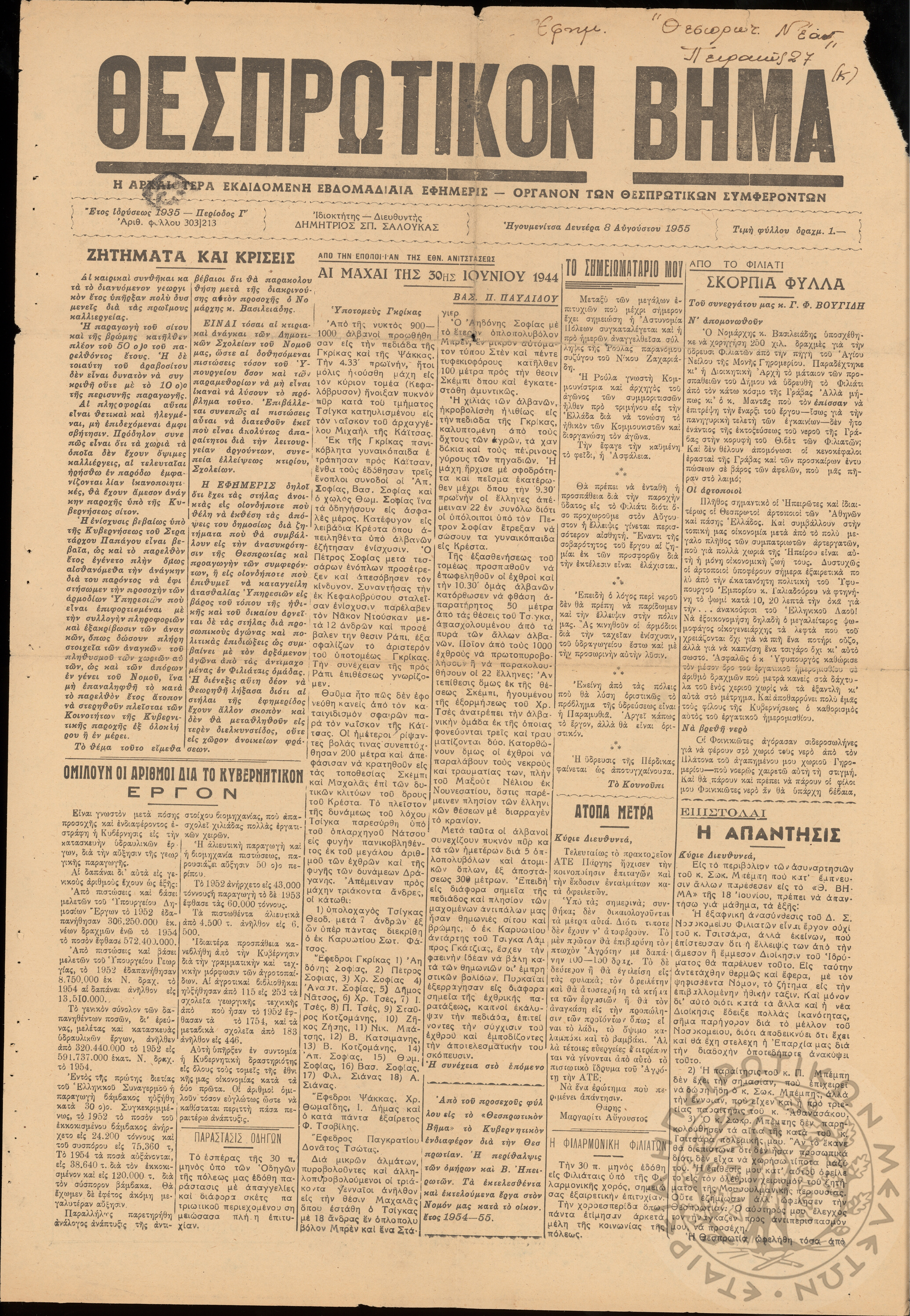 - Ψηφιακό Αποθετήριο Ανάδειξης και προβολής των ιστορικών τεκμηρίων της Εταιρείας Ηπειρωτικών Μελετών