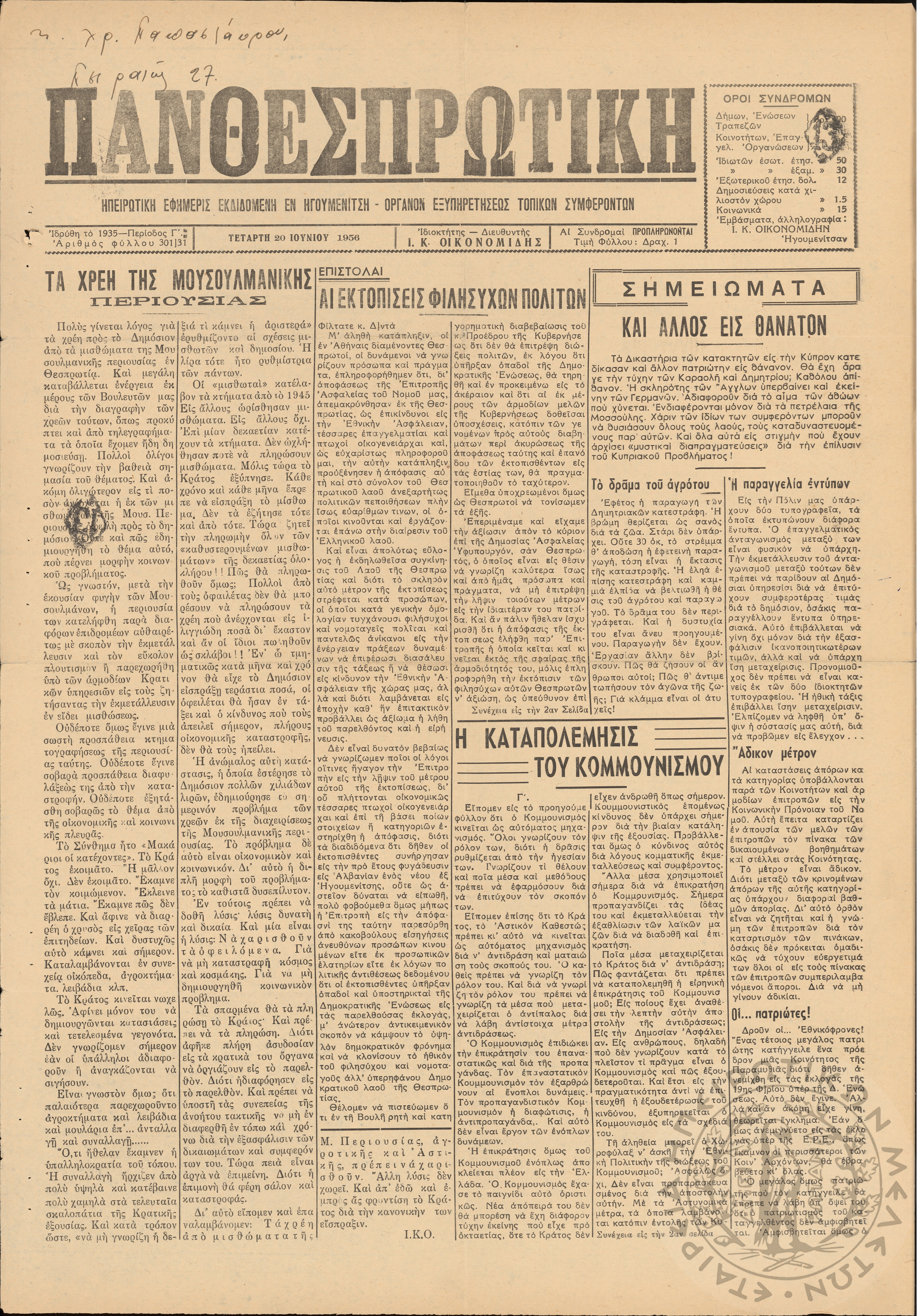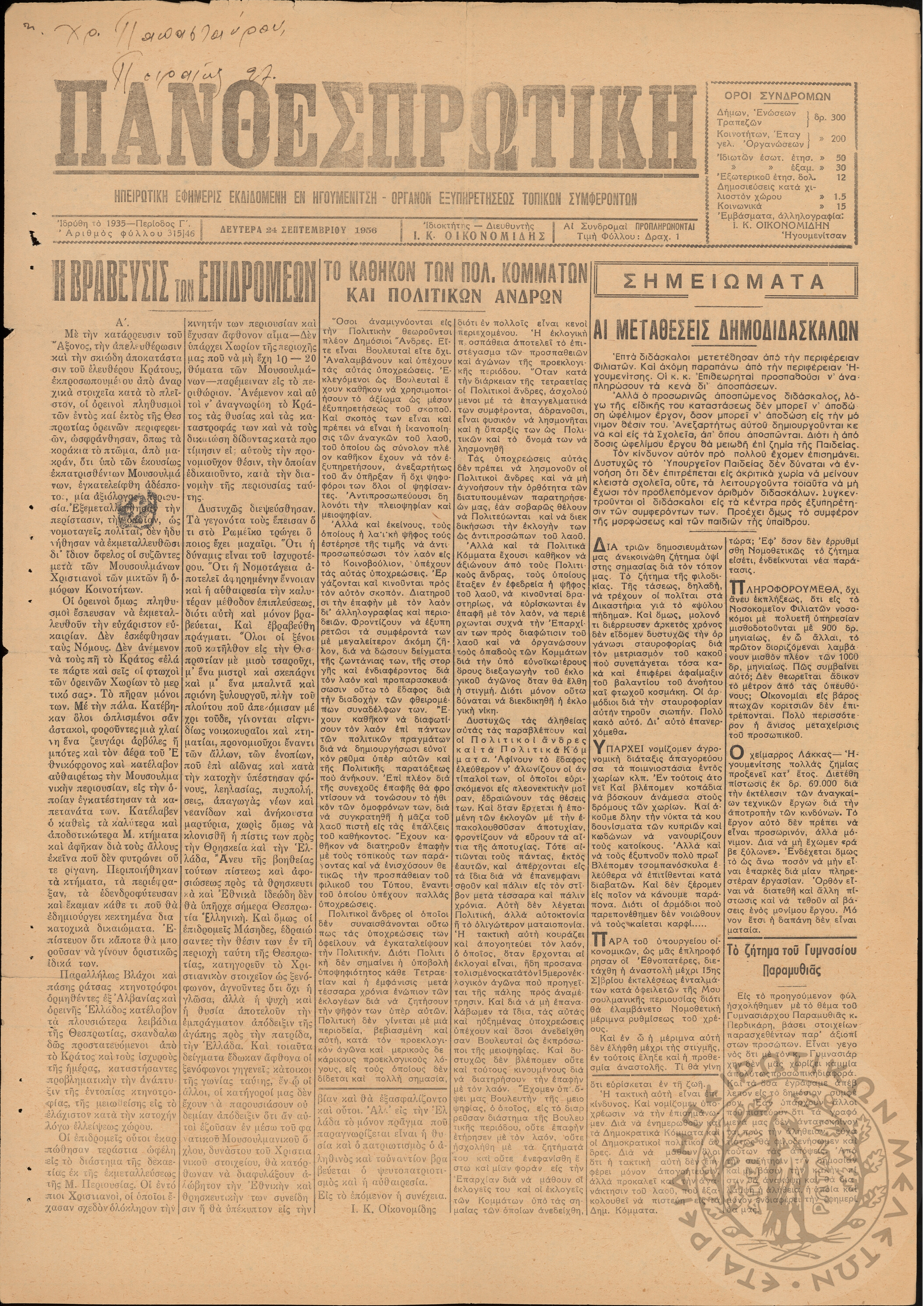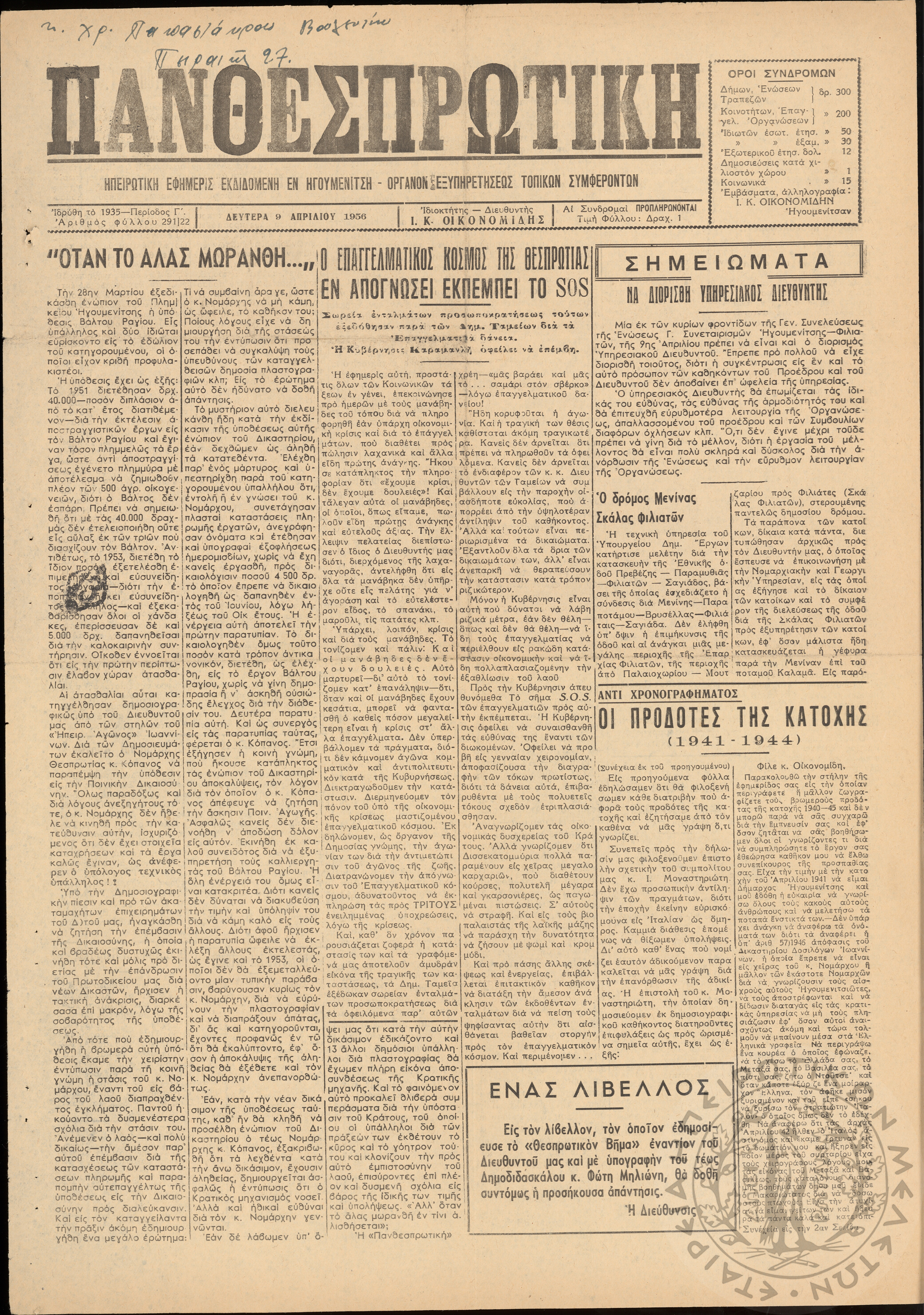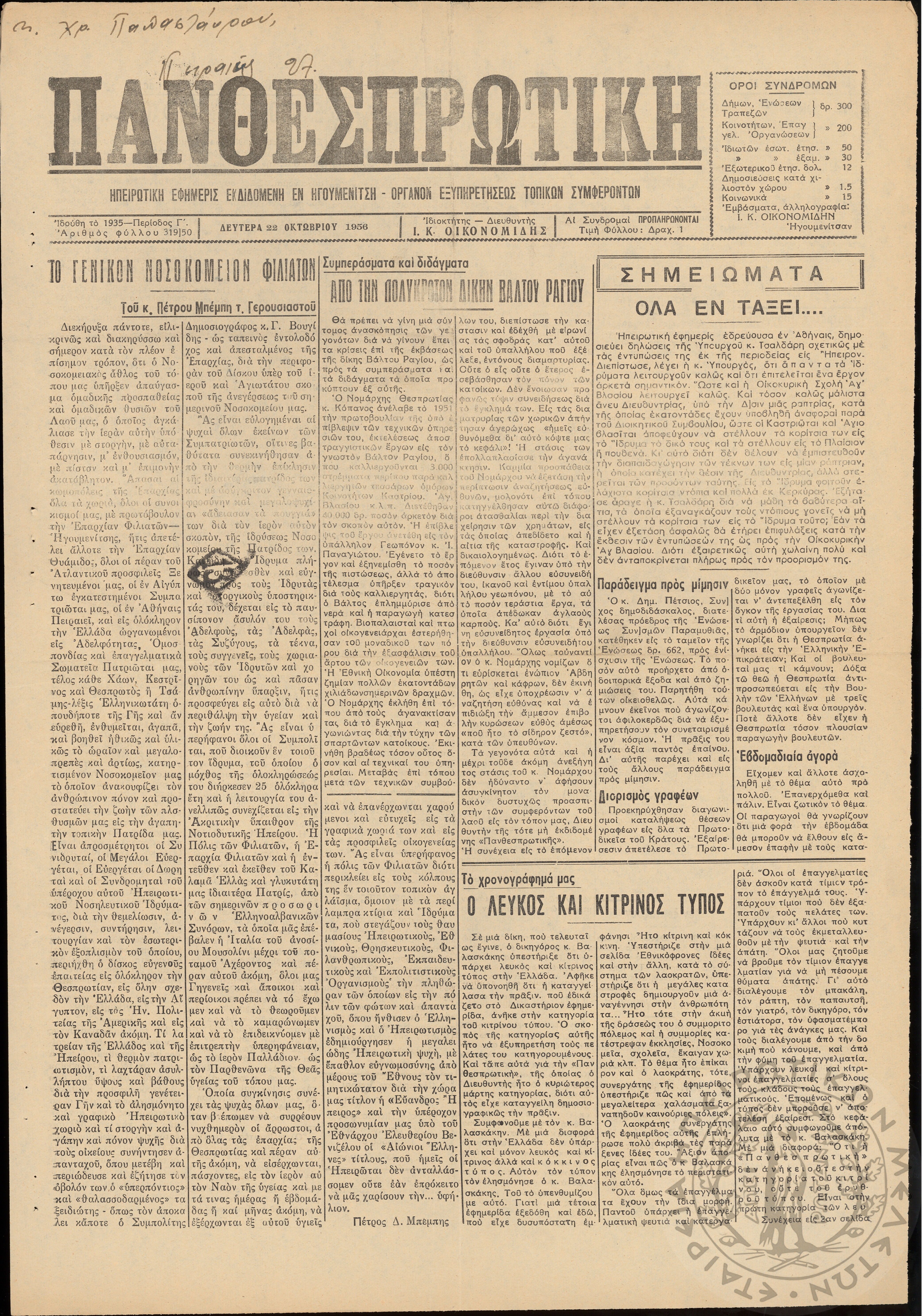 ... Έτος 24, τόμ. 9, τεύχ. 37... Έτος 24, τόμ. 9, τεύχ. 38... Περίοδος Γ΄, φ. 291/22