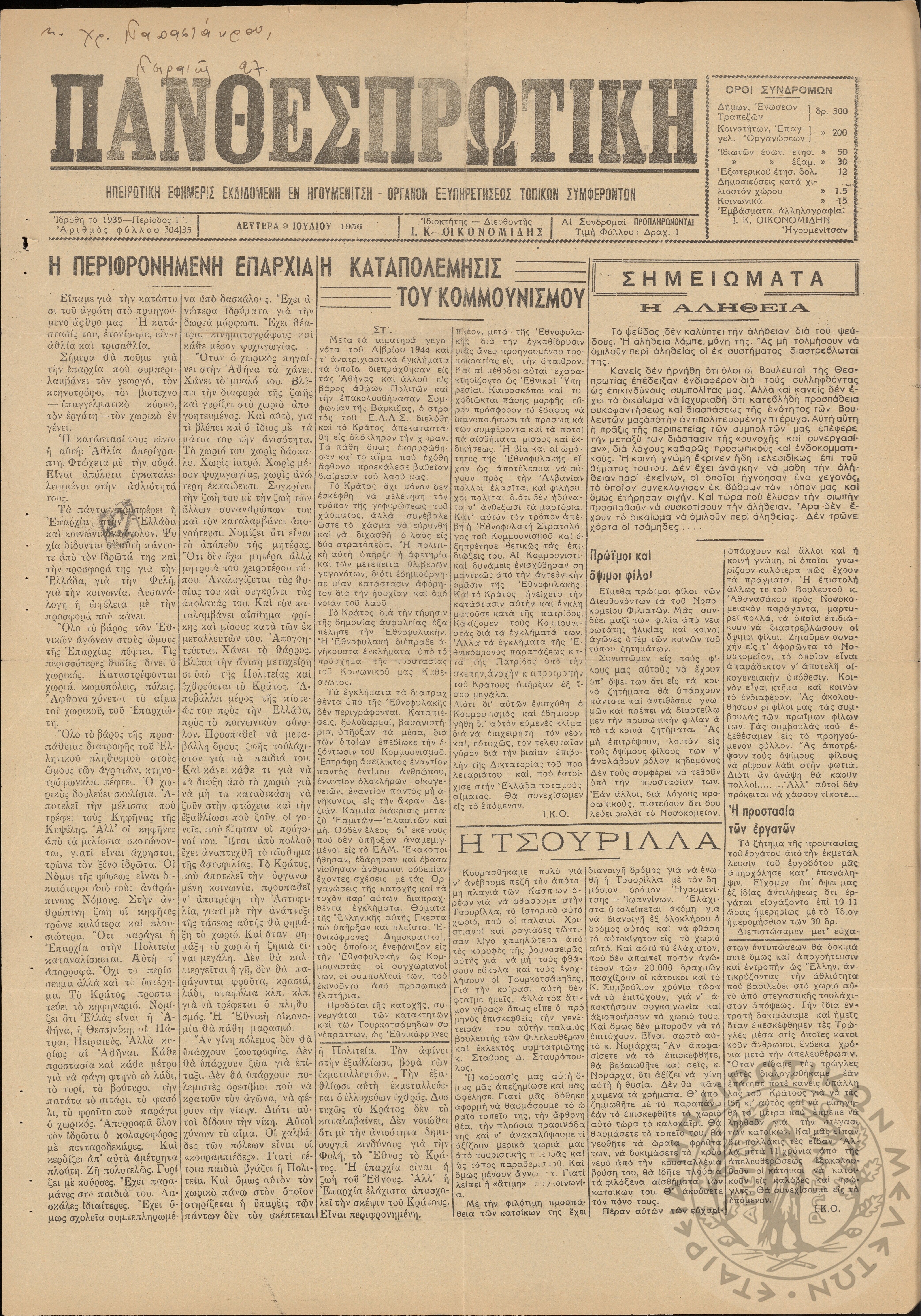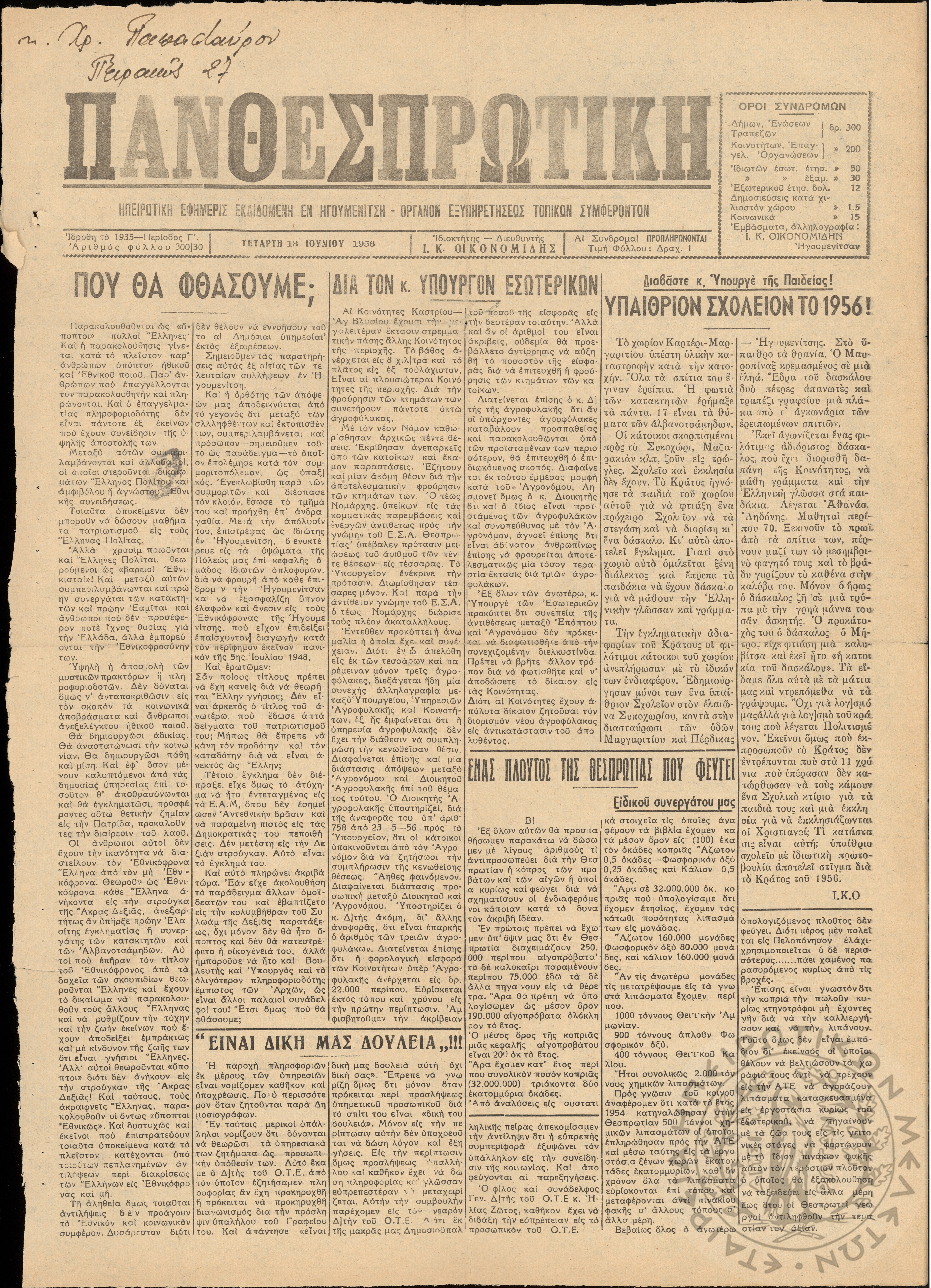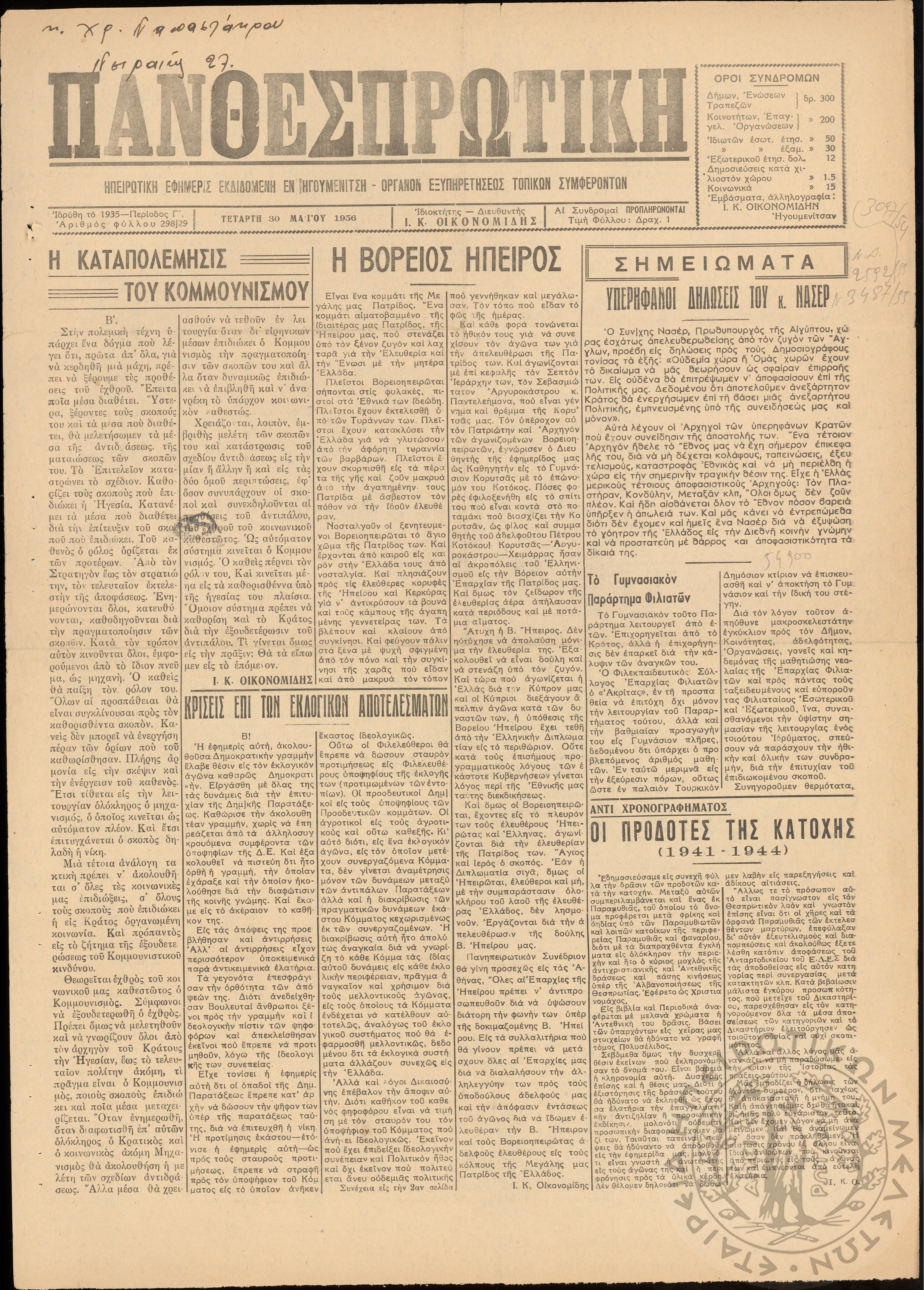 ... Έτος 24, τόμ. 9, τεύχ. 40... Περίοδος Γ΄, φ. 300/30